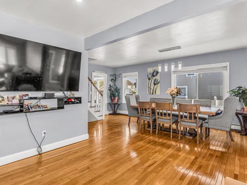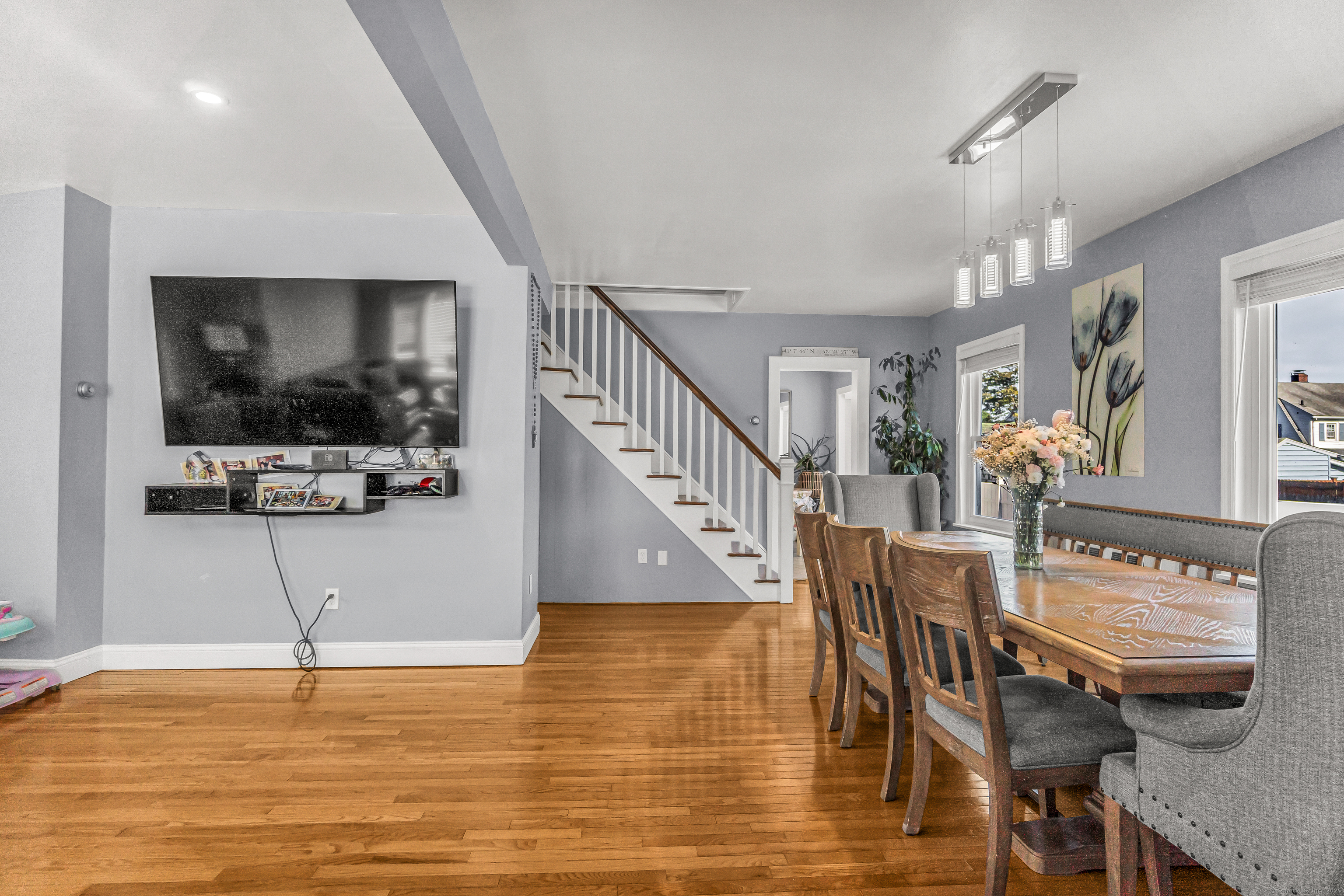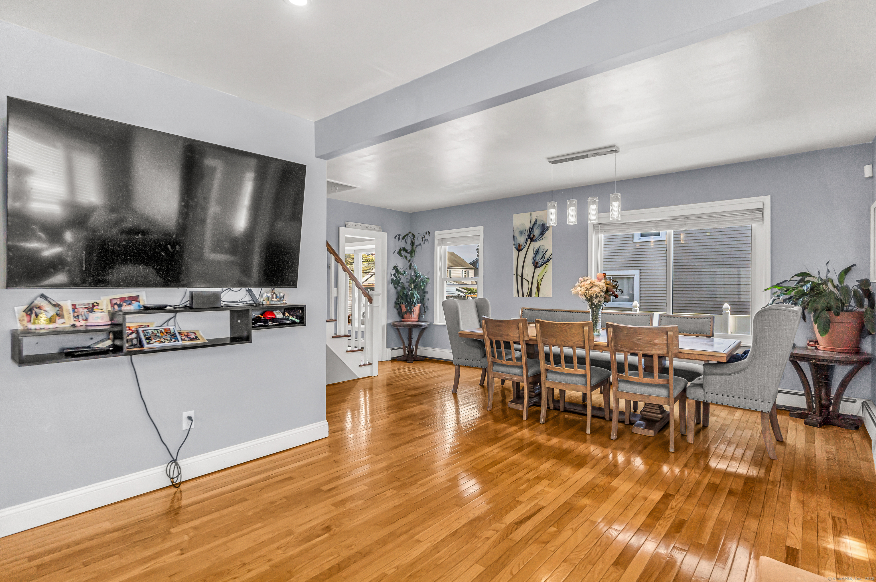 A house-it's a place where life feels easy and full of warmth. Sunlight pours through wide windows and across hardwood floors, filling each room with a natural glow. Every room also elegantly flows from one to another which is ideal for loved ones congregating and also having your own personal space. The kitchen is the heart of the home with granite counters, stainless appliances, and a cozy breakfast nook where mornings begin with bringing the family close over coffee and conversation. The family room, anchored with a wood burning stove, is made for quiet evenings, perfect for the long winter months ahead. The sliders open to a spacious deck and backyard designed for summer gatherings and simple everyday joy. Inside and out this home is ideal for the homebody who doesn't want to be too far from NYC action. Upstairs, the primary suite offers a peaceful retreat with its whirlpool tub, while two additional bedrooms provide space for family, guests, or a home office. Outside, a detached garage, private driveway, and fenced yard add both charm and convenience. The neighborhood invites evening walks and a true sense of community, with a playground nearby and SoNo's restaurants, shops, and waterfront just minutes away. 22 Fair Street is a timeless backdrop for creating memories that last a lifetime.