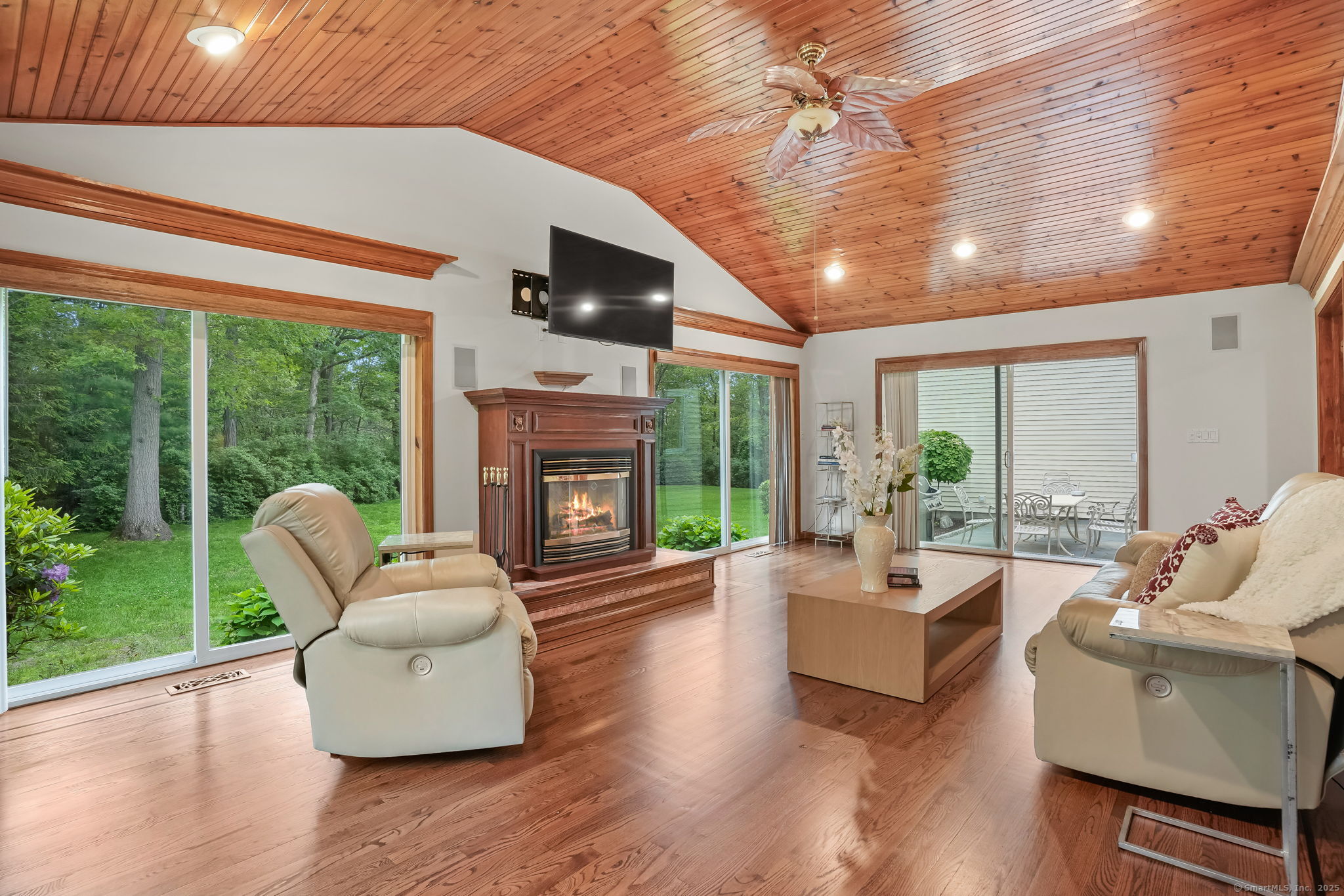 THIS is the home you've been waiting for! Beautiful, stately home set on gorgeous level property located in a quiet, private enclave of 17 homes. Enjoy your morning walks in this little slice of heaven in North Wilton. This home abuts the Woodcock Nature Preserve - a wonderful offering right in your backyard! NEW gorgeous quartz state of the art kitchen is the heart of the home - wide open to a fabulous family room with wood burning fireplace. The 1st floor offers a spacious layout with the light filled sunroom/den & gas fireplace & slider doors opening to the outdoor bluestone patio and beautiful level yard. Private Home Office and Formal dining room round out the first floor. The 2nd floor showcases 5 bedrooms, including the lovely Primary bedroom, and the very large Bonus Room for play/media OR it can serve as a terrific in-law/ guest suite complete with the full kitchenette, full bath/laundry and separate entrance with private back staircase. Sparkling hardwood floors throughout this home, spacious closet space, 2nd floor laundry & newer mechanicals, ... this home has been well cared for! Enormous unfinished basement with 2 newer oil tanks and brand-new state of the art $20,000 full house water treatment system. Fox Run Road has been newly paved showcasing a lovely entry approach to the home. Of course.... Award Winning Wilton schools, quaint Wilton Village Center and beautiful downtown Ridgefield are just minutes away. FABULOUS home!