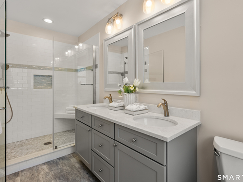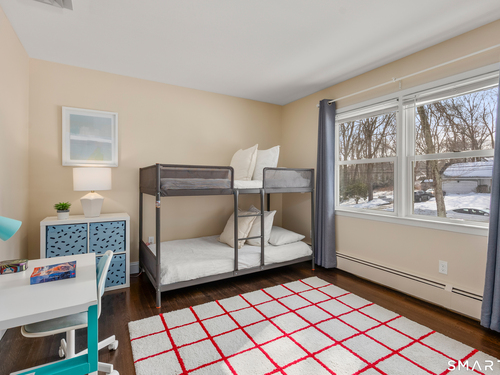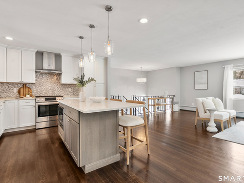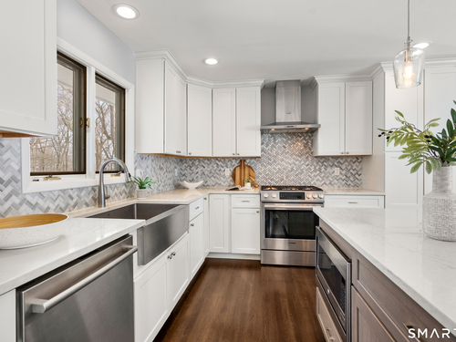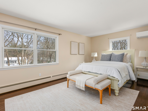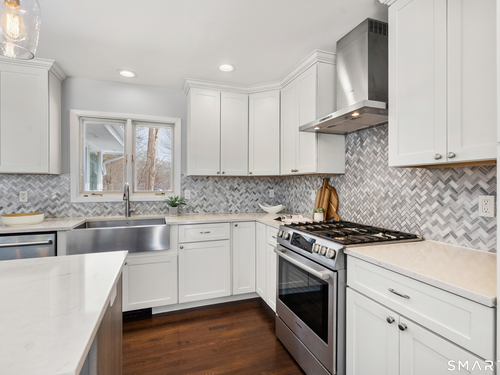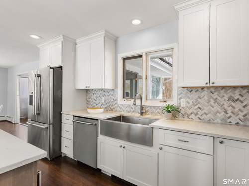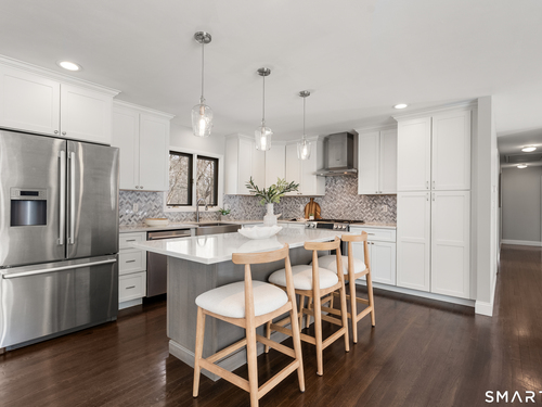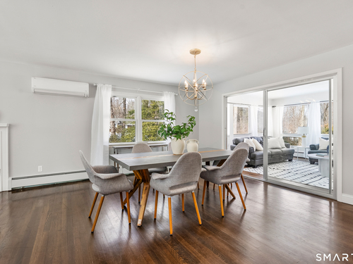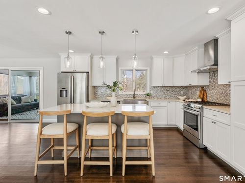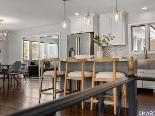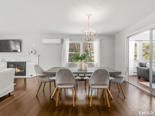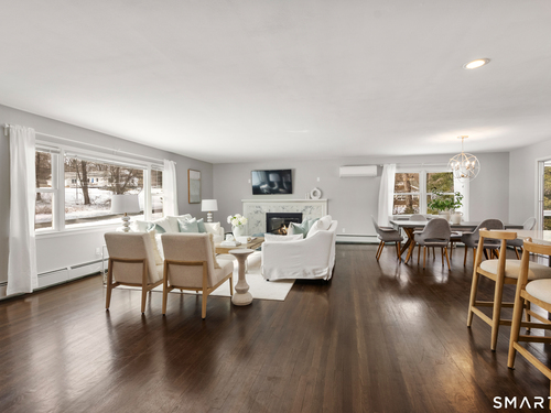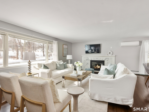 Welcome to 22 Newman Street, a stunningly updated 3 bedroom, 2.5 bath residence perfectly situated on a quiet neighborhood street in the highly coveted lower Easton area. This move in ready home boasts a seamless open concept layout defined by gleaming hardwood floors and an abundance of natural light, anchored by a modern chef's kitchen featuring quartz countertops, a center island with seating, and premium Bosch appliances. The heart of the home flows into a spacious living area highlighted by a large bay window and a marble gas fireplace, while sliding doors lead to a bright, window surrounded sunroom with engineered flooring and sliders to a Trek deck overlooking a flat, private backyard. The primary suite offers a contemporary updated bath with a stall shower, while two additional bedrooms share a large, renovated hall bath with double sinks. Adding incredible value, the finished lower level provides a versatile second living space complete with a wood burning fireplace, wet bar, laundry room, storage closets, updated half bath and convenient walk out access. With high efficiency upgrades including fully owned solar panels, Thermopane windows, a 2017 roof, and a new boiler, this home offers modern peace of mind. Just minutes from the Merritt Parkway and 15 min from the Fairfield train, this is a unique opportunity to enjoy the space, warmth, and neighborhood living that are so hard to find in Easton.