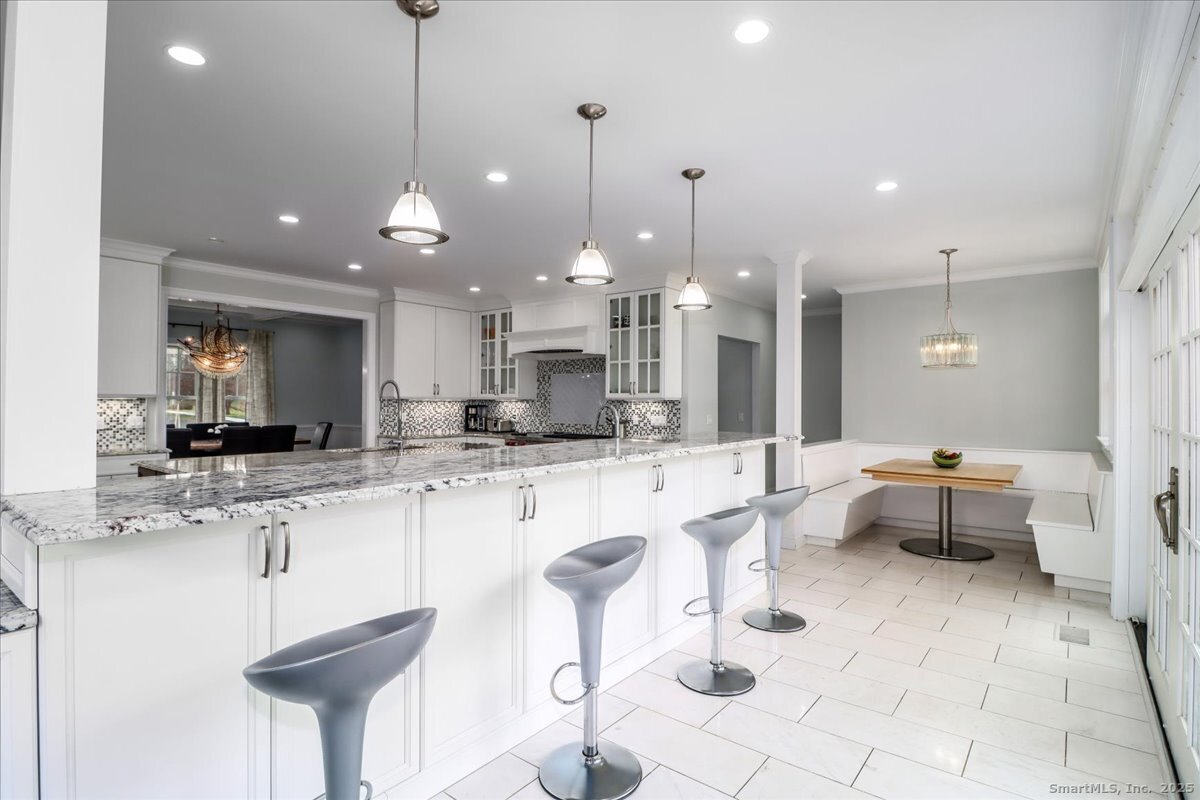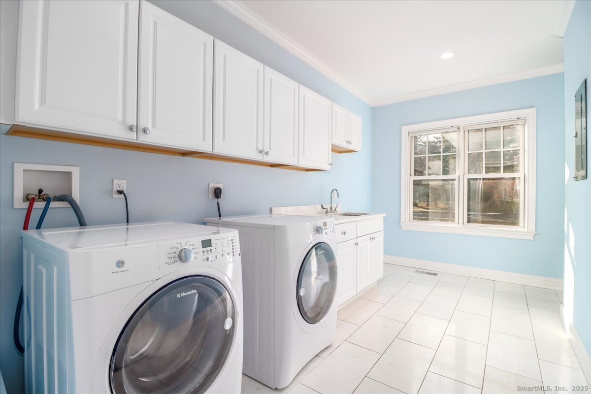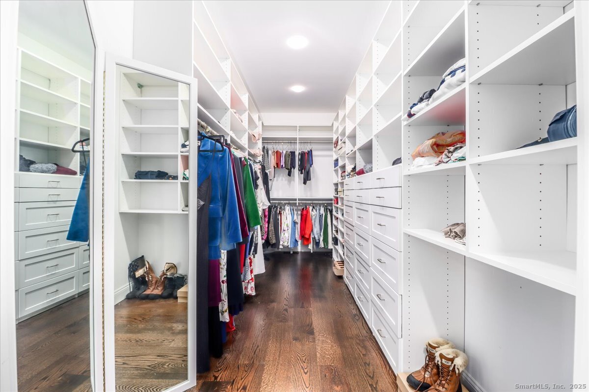 Welcome to the South-of-the-YMCA neighborhood! Beautifully rebuilt in 2014, this custom Colonial sits on just over an acre of flat, park-like property in one of New Canaan's most coveted locations. Set near the end of a quiet cul-de-sac, it delivers luxury, privacy, and unbeatable convenience to top-rated schools, the YMCA, Waveny Park trails, paddle courts, the dog park, and every activity the park has to offer. Step inside and prepare to be wowed. The luxurious primary suite offers a spa-worthy bathroom and an enviable walk-in closet. Each additional bedroom includes its own en-suite bath and walk-in closet, and the legal 5th bedroom with bath and kitchenette on the lower level is perfect for guests, in-laws, or an au pair. High ceilings, 7-inch-wide oak floors, Porcelanosa tile, Grohe fixtures, and premium stonework make it feel exceptional. The chef's kitchen is a showstopper with its high-end appliances, a Wolf range with 6 burners, griddle, and double ovens, and custom Birchcraft cabinetry by Euphoria Kitchens. You'll enjoy more cabinet space than you ever thought possible. The fenced backyard feels like a private resort, complete with a heated in-ground pool, stone walls, mature landscaping, and an irrigation system. A 1,000-gallon underground propane tank powers heat, hot water, cooking, the full-house generator, and the pool heater - ensuring comfort year-round. The oversized 3-car garage offers 841 sq. ft. of clean, versatile space for cars, hobbies, or storage