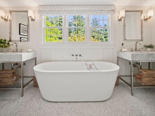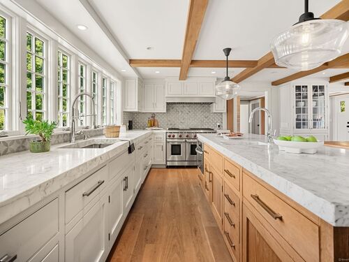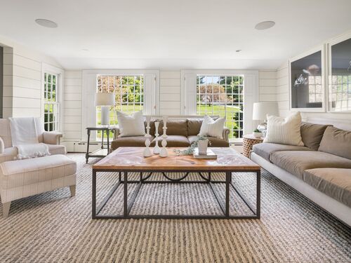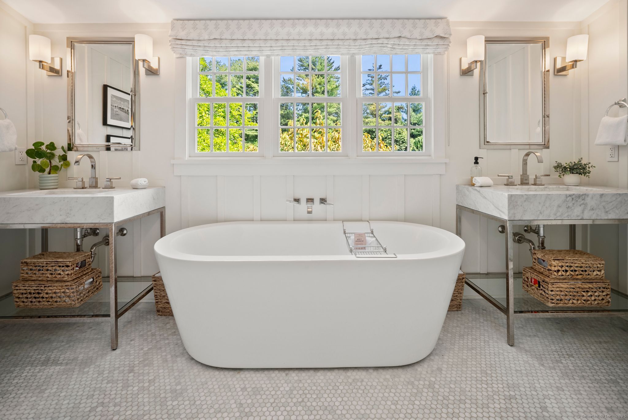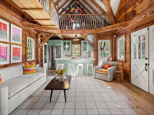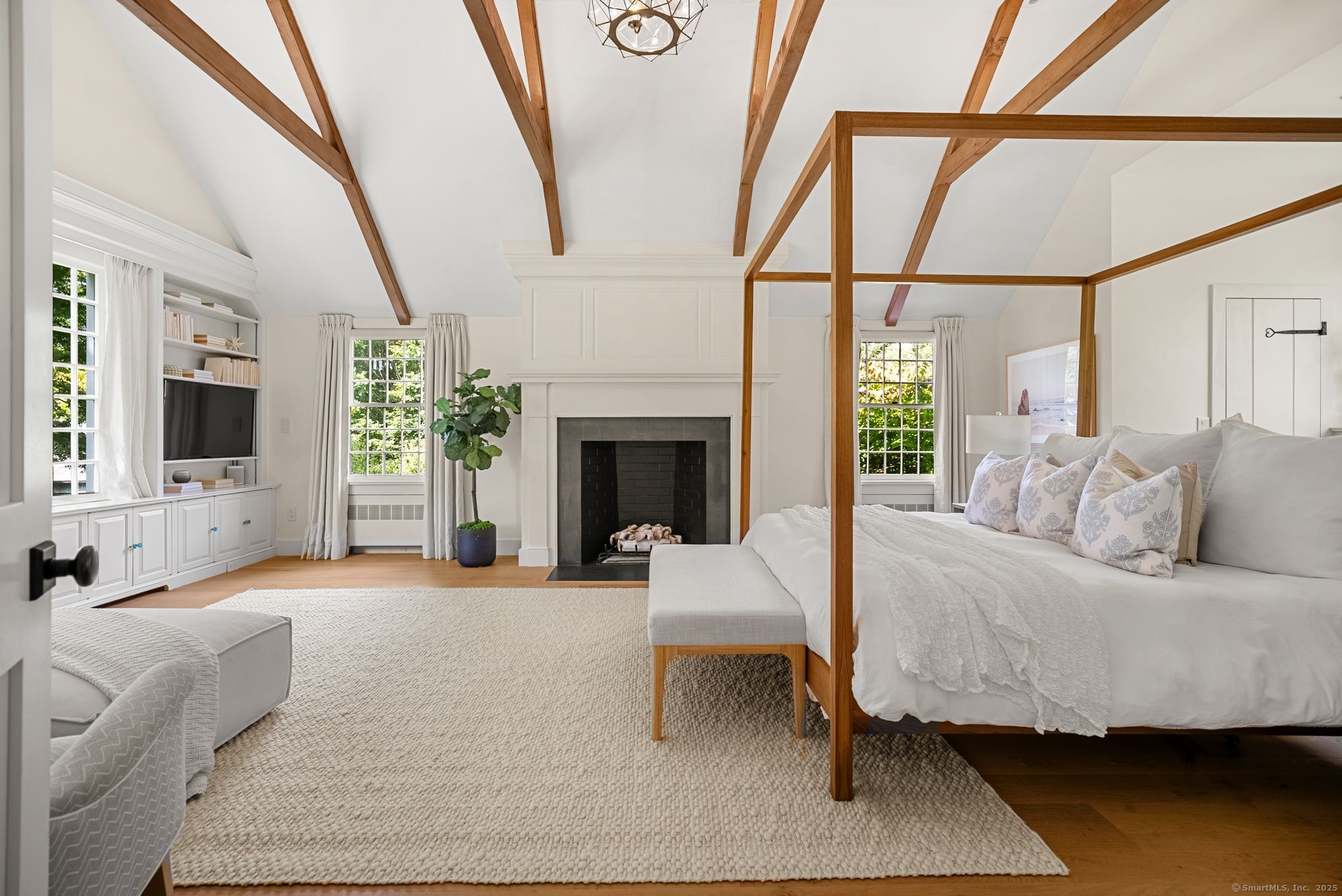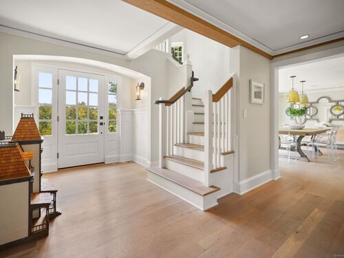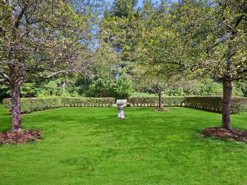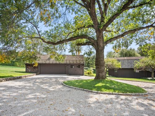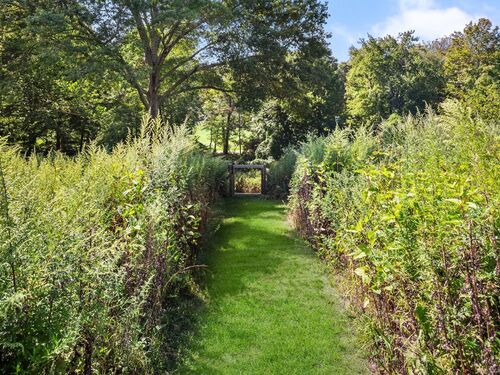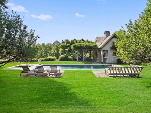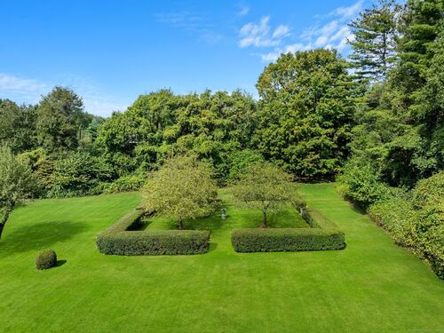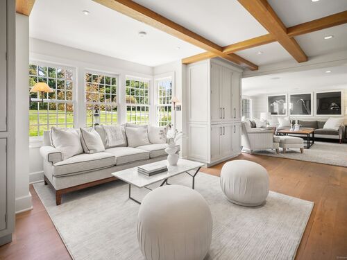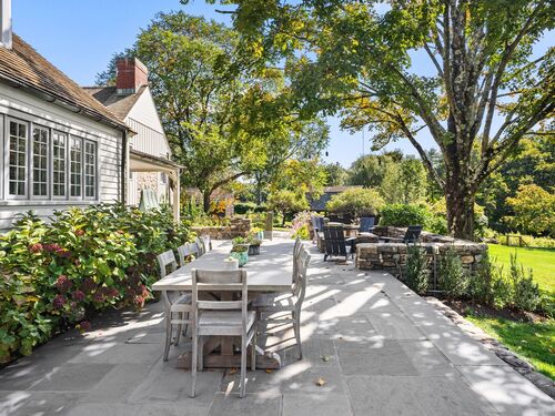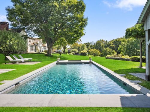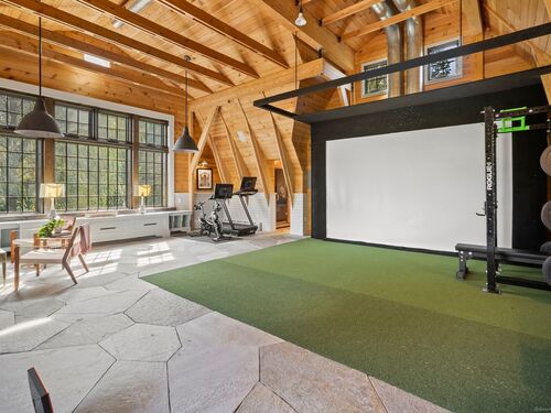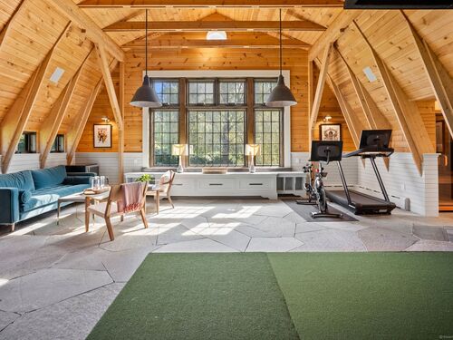 Feels like Litchfield. Lives like Fairfield. Tucked behind a private gate in Greenfield Hill, this estate offers what few properties can: sweeping space, true privacy, and serene beauty-just 60 miles from Manhattan. A long stone drive leads to the 1941 main residence, reimagined with timeless craftsmanship. Sunlight floods rooms finished with reclaimed wood beams and wide-plank floors. The chef's kitchen opens to elegant dining and living areas, with French doors to a bluestone terrace designed for candlelit dinners under the stars. A first-floor guest suite with a full bath provides flexibility and privacy, while upstairs, four additional bedrooms-including a serene primary suite-offer refined comfort and room to breathe. Beyond the home, the grounds unfold like a private resort. A two-story pool house features a full kitchen, bath, and playful loft. A climate-controlled barn houses a Trackman 4 golf simulator, sauna, and space for training or unwinding. Outdoors, discover a saltwater pool and spa, sport court, vegetable gardens, wildflower meadow with carved walking trails, orchard of apple, cherry, and peach trees, and a cider press-all with a private path leading to the Patterson Club. Whether for weekends or a lifetime, this estate elevates every season and every gathering-minutes from town, yet a world apart.