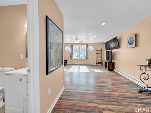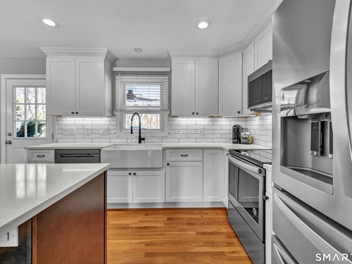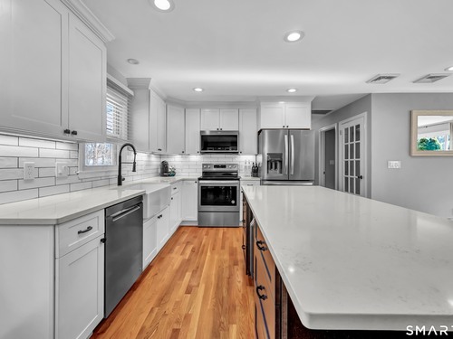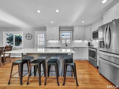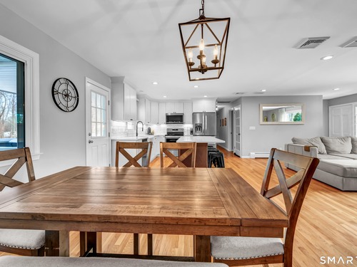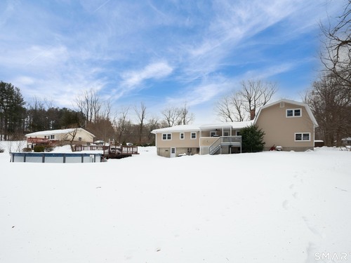 Don't miss this opportunity to own a well-built, meticulously maintained ranch in the Huntington area of Shelton. This spacious 4-bedroom, 2.5-bath home offers a flexible layout with two primary bedrooms-one on the main level and a private primary ensuite located above the garage. The updated kitchen features a new island, quartz countertops, tile backsplash, updated appliances, wood flooring, and opens seamlessly to the dining and living areas-ideal for today's open-concept lifestyle. Hardwood floors run throughout the main level. The main bathroom has been fully renovated, and the half bath within the primary suite has been updated. Additional highlights include central air, an oversized two-car garage, and a covered porch off the kitchen. Step outside to a rear porch overlooking a large backyard with an above-ground pool, perfect for entertaining and outdoor enjoyment. The pool deck has been freshly painted, and all pool equipment has been replaced. All 4 bedrooms are generously sized with ample closets and storage space. The partially heated basement has direct/walk out access to the backyard. Major improvements within the past six years include a new septic system, siding, roof, gutters, and refreshed back porch stairs and railings. Pride of ownership is evident throughout. Conveniently located near shopping, dining, and entertainment, with Elementary School just one block away. This home offers comfort, location & execptional value