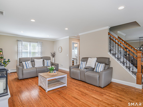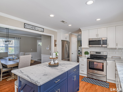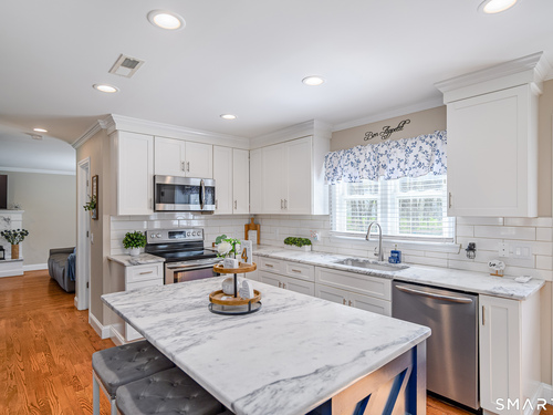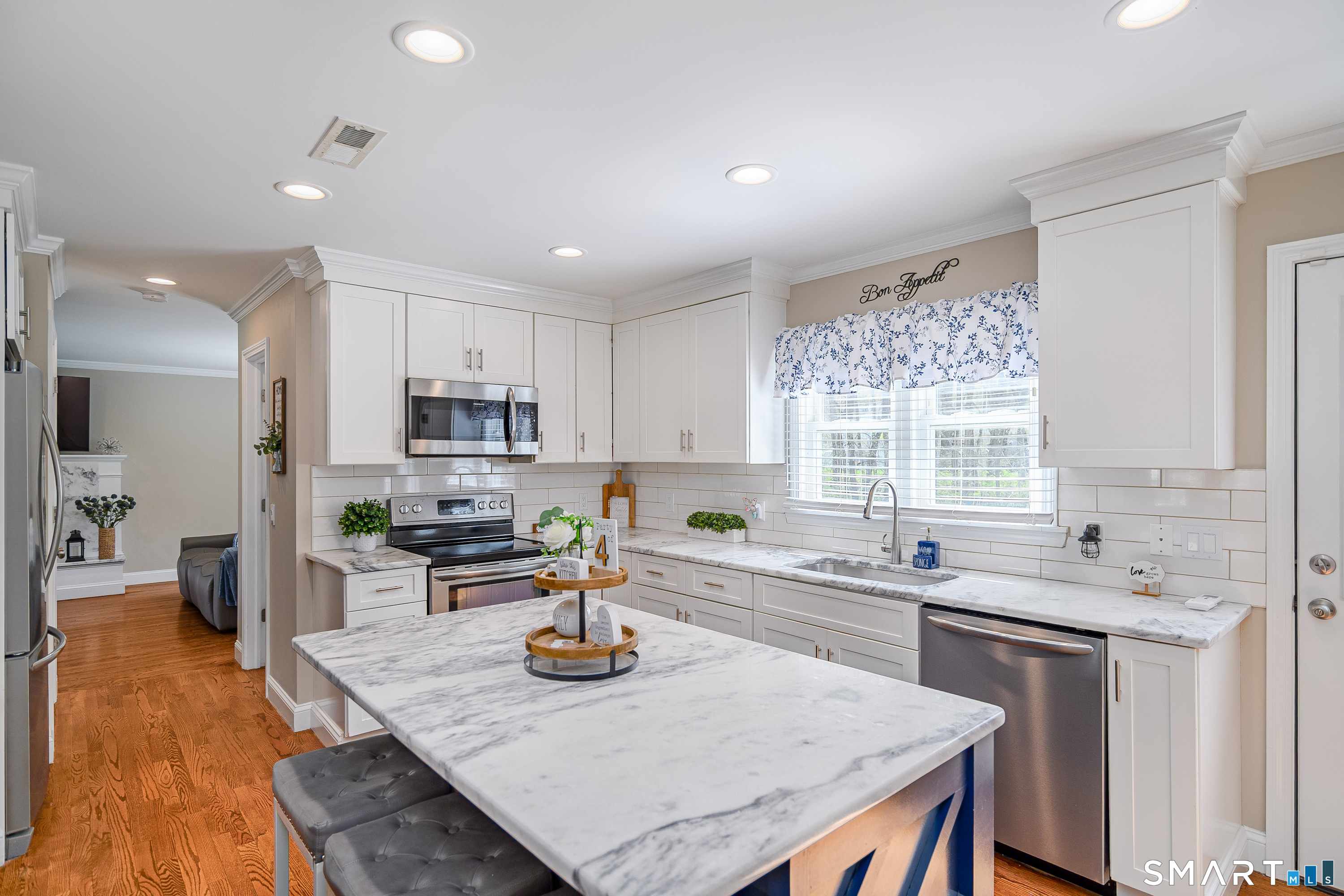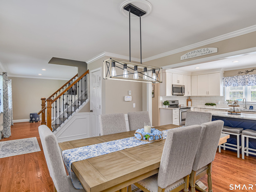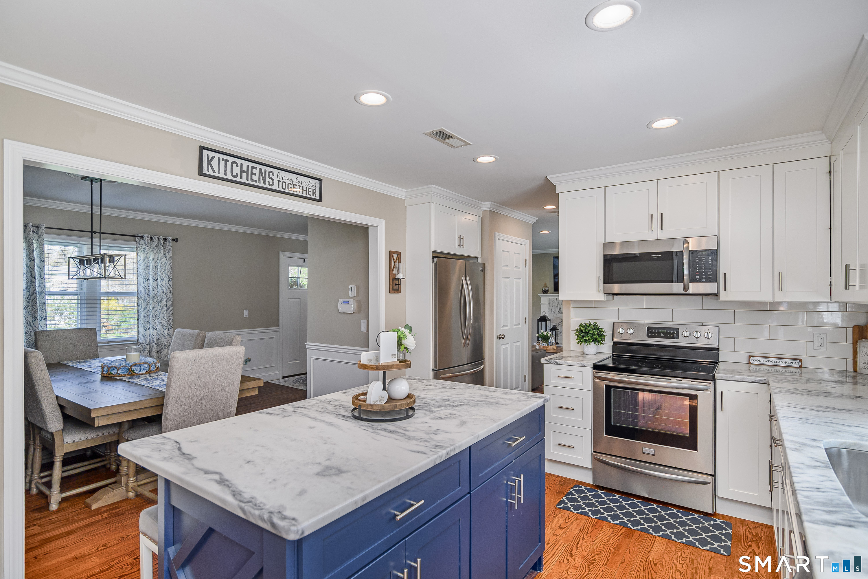 Welcome to this beautifully reimagined, meticulously maintained Colonial set back from the street on a peaceful corner lot. Thoughtfully designed with a bright, open-concept layout, this home is filled with natural light and features a clean, functional flow ideal for today's lifestyle. The main level showcases hardwood floors throughout, a spacious living room with a fireplace, dining area, 1/2 bathroom and a fully renovated kitchen with convenient access to the deck and attached garage-perfect for everyday living and entertaining. Upstairs, you'll find hardwood floors throughout the three generously sized bedrooms, including a comfortable primary suite, along with 2 full bathrooms. The finished walkout lower level provides additional versatile living space, complete with a large family room, bathroom, and laundry area. Set on an 0.50 acre of level property there is a fenced-in backyard-enough room to fully enjoy the outdoor space while remaining easy to maintain. Ideally located just minutes from the town center, schools, parks, and Candlewood Lake, this home also offers convenient commuting options with nearby Metro-North service and access to I-84 and I-684. Shopping, dining, and everyday amenities are all within easy reach. A truly move-in ready home in a desirable location-this is one you won't want to miss.