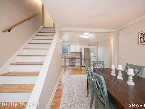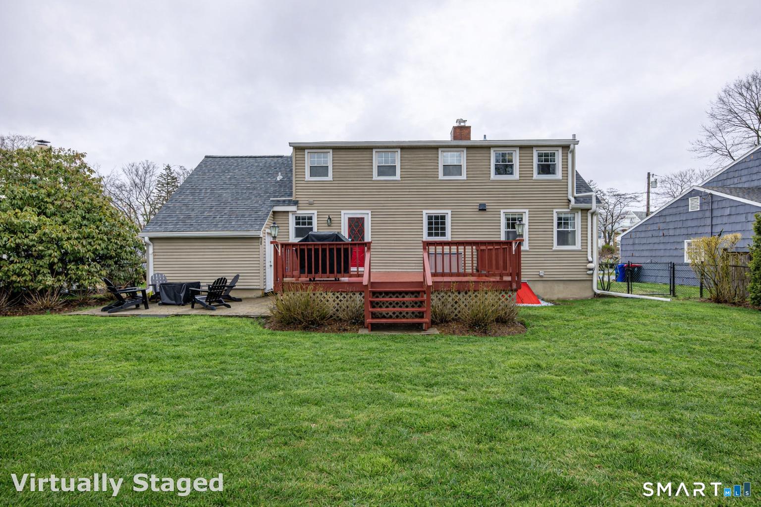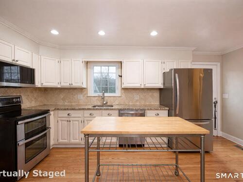 Welcome to 23 Sachem Street, a beautifully maintained 3-bedroom, 2-bath Cape that blends classic charm with thoughtful updates in a convenient Norwalk location. The main level features a remodeled kitchen with granite countertops and stainless steel appliances, opening to warm and inviting living spaces highlighted by gleaming hardwood floors and a raised-hearth wood-burning fireplace and a main level bedroom. Upstairs you'll find two generously sized bedrooms and a second full bath. The finished lower level adds valuable extra space for a family room, playroom, home office, gym, or media area, along with laundry and additional storage. Outside, an expansive deck overlooks a private, park-like backyard with mature plantings, creating the perfect setting for relaxing or entertaining. With central air, gas heat, and a one-car attached garage, this move-in-ready home delivers comfort, character, and everyday practicality.
