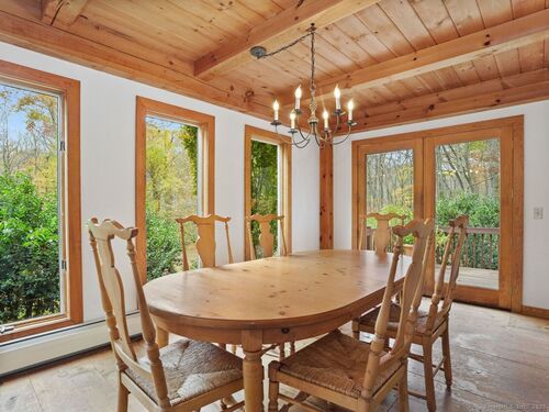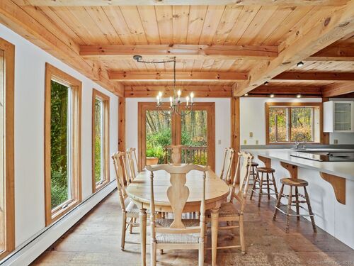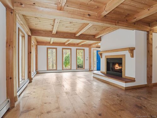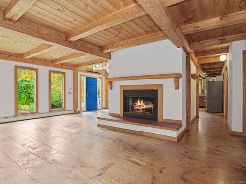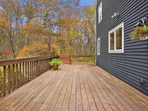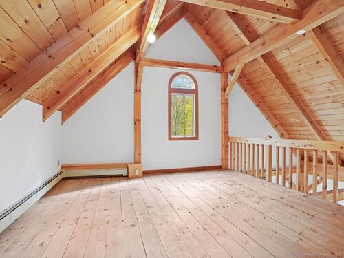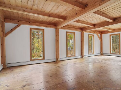 Nestled on 2.99 private park-like acres in desirable Weston, this Timberpeg 1988 Post & Beam home is framed by exquisite mature specimen plantings. Timberpeg located in Claremont, New Hampshire, is considered the Artisan of Post and Beam design. This home blends rustic elegance w modern comfort. Solid beautiful wide plank floors w "ships" nails made specifically for this home. Great open floor plan, this home features exposed beams throughout and beautiful windows w fabulous natural light streaming into the home. Lge kitchen w exceptional counter space & breakfast bar, is adjacent to the open dining area. French Doors lead to the large wood deck, wonderful for grilling/dining/or relaxation. Primary suite on second level has walk-in closet, spa bath and storage. 2 more spacious bedrooms on the second level also have great closets. 1 bedroom has a ladder to a loft area on the 3rd floor which could easily be converted to a 4th bedroom, or great "hideout". Another loft space above primary suite on 3rd floor is ideal for a private office/study or creative studio. This home has been beautifully maintained showcasing true pride of ownership. Move right in! More features:The flat usable backyard is a rare find in Weston inviting plenty of room for entertaining or playtime. Full House generator! Whether you're seeking a serene weekend escape or a full-time country retreat, this exceptional home offers the perfect balance of privacy, warmth and timeless New England.