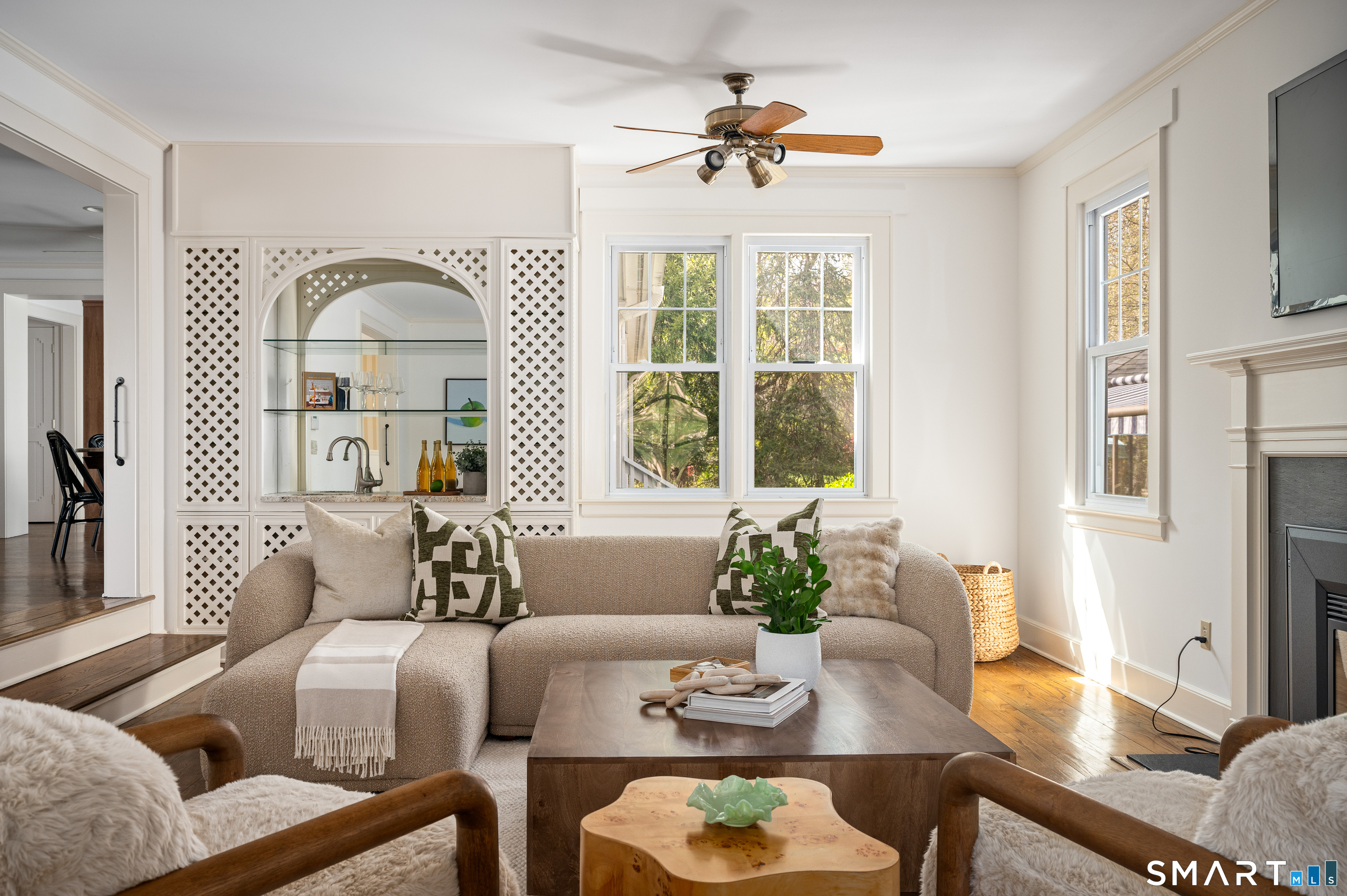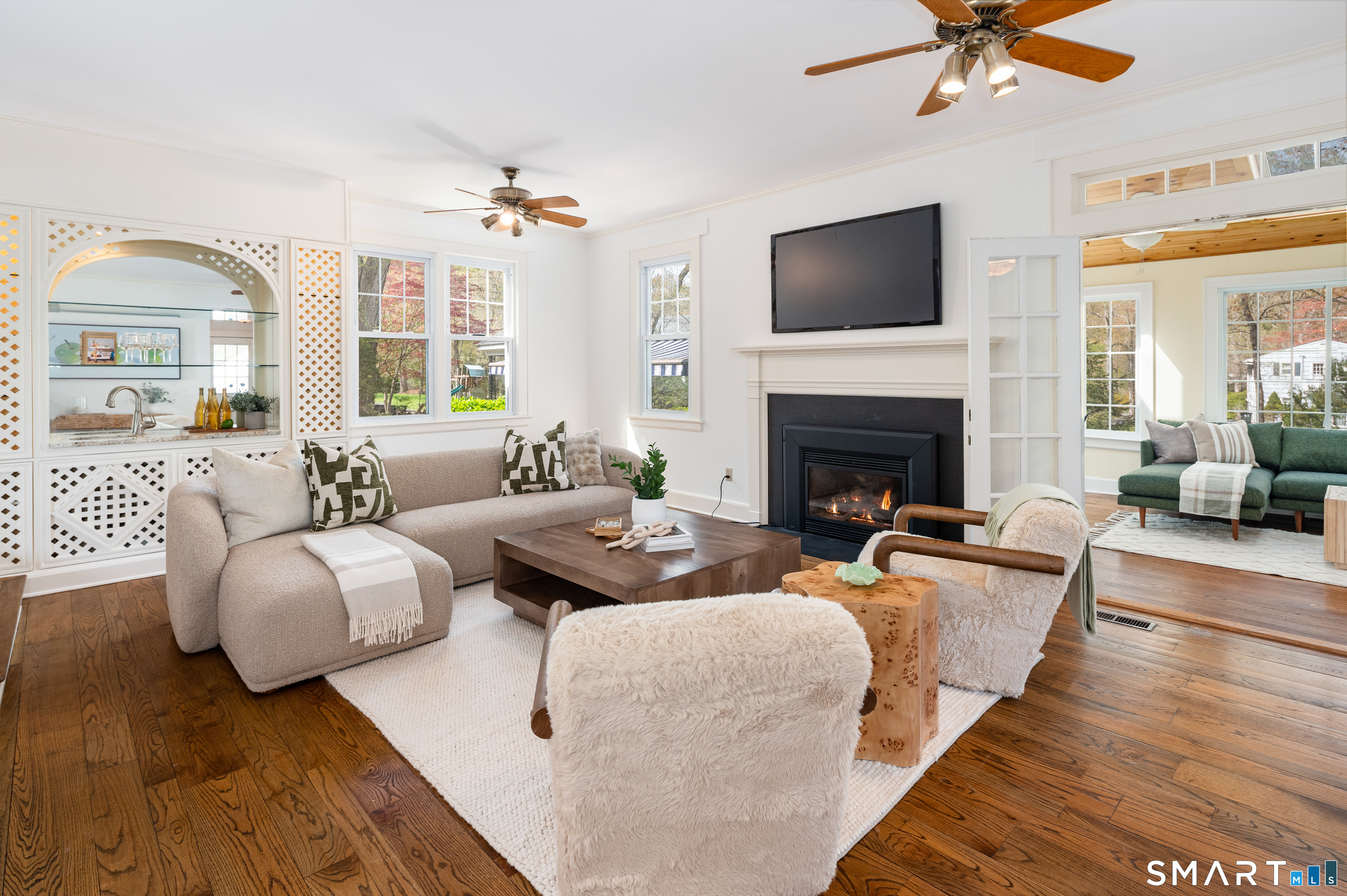 Family Room (Main Level)Built-Ins, Wet Bar, Gas Log Fireplace, French Doors, Hardwood Floor