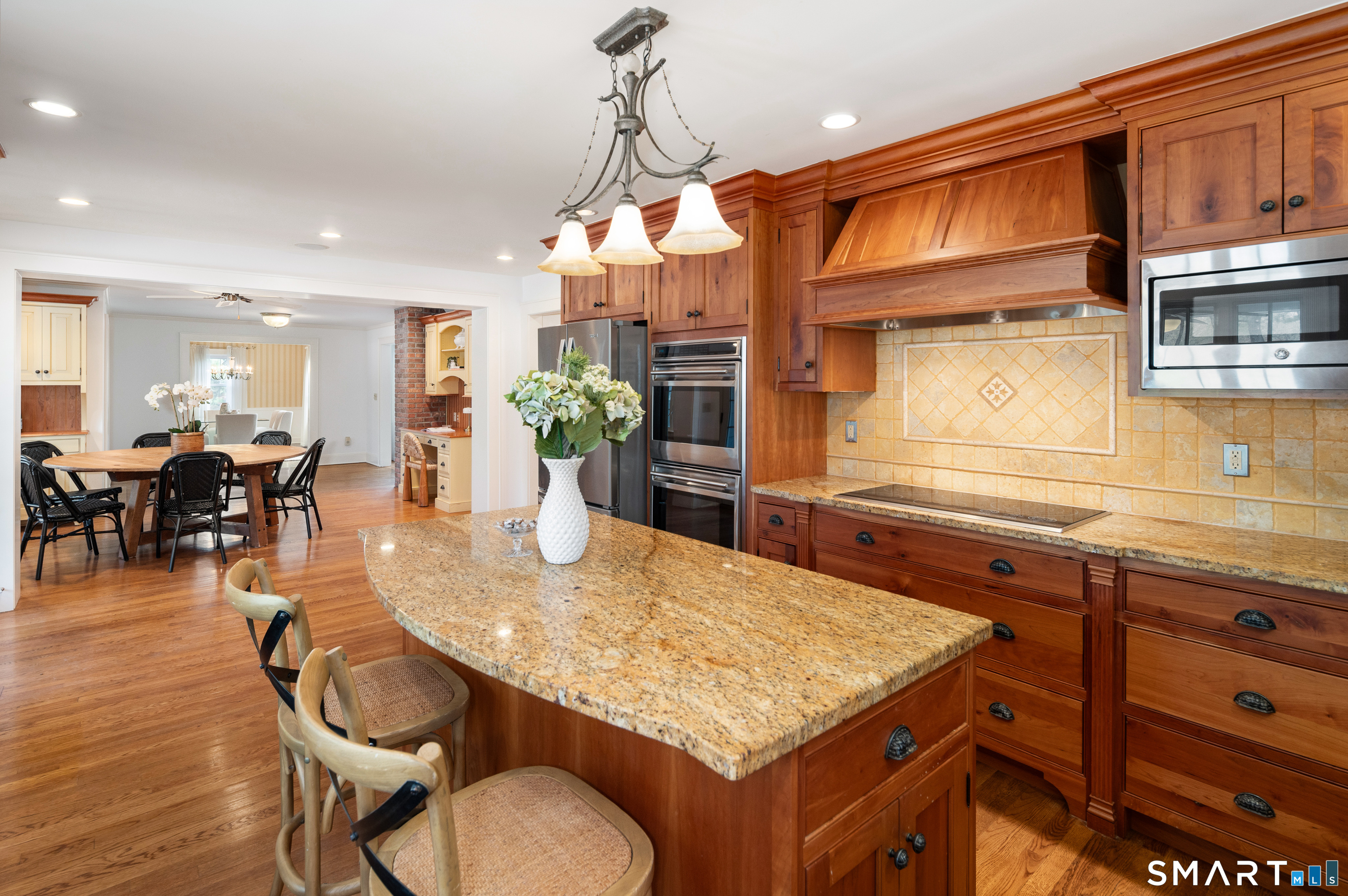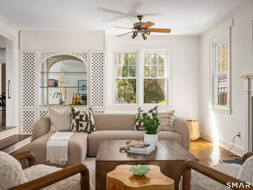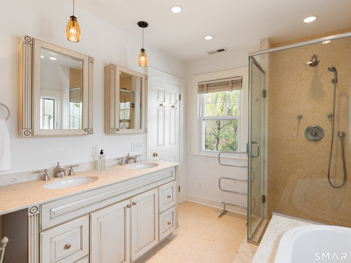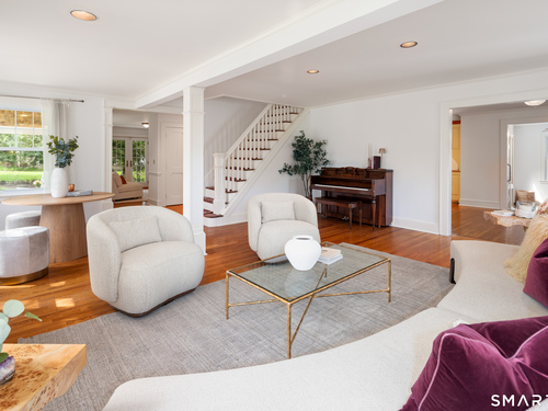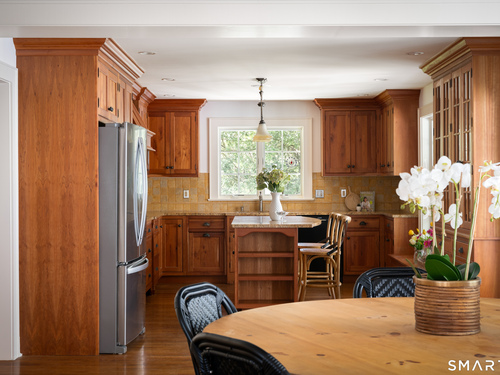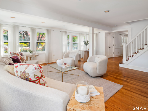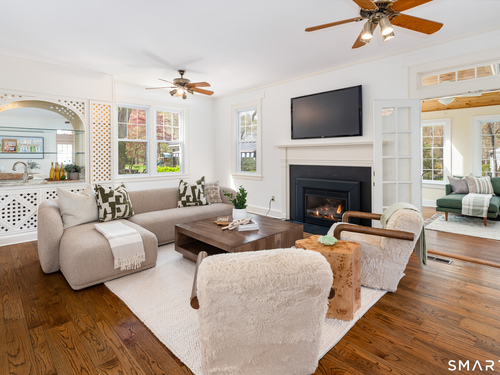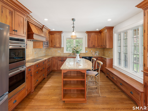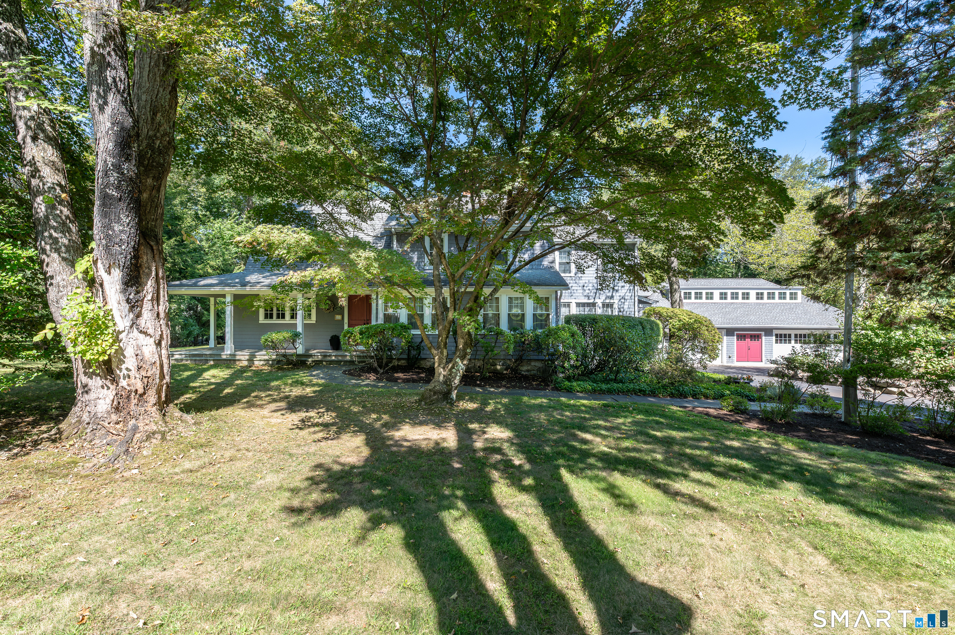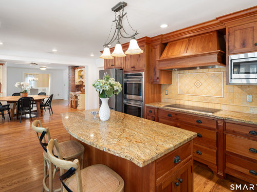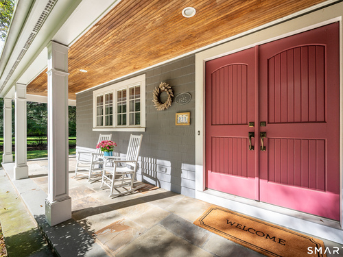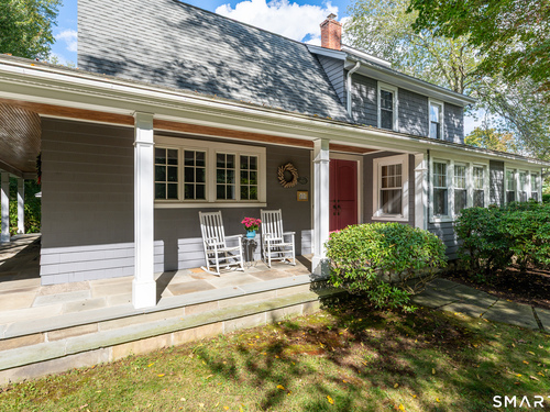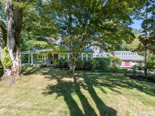 Timeless and charming, this home-originally built as a dairy farm in 1925-has been thoughtfully expanded and updated for modern living, offering over 5,000 sq ft of beautifully finished space on nearly one acre of private, park-like property.A welcoming wraparound porch invites you in, where hardwood floors throughout and fresh interior paint create a move-in ready feel. Generous room sizes and a seamless flow blend classic character with refined comfort. The warm country kitchen features rich wood cabinetry, granite countertops, center island, built-in window seat, and a spacious breakfast area, opening to a step-down family room with gas fireplace, wet bar, and French doors to a skylit sunroom. A separate staircase leads to a private guest suite with bedroom, sitting area, and full bath, while the main staircase leads to four spacious bedrooms, including a primary suite with a wood-burning fireplace and spa-like bath with jetted tub and glass-enclosed shower. From the kitchen and sunroom, step outside to a large deck and screened-in gazebo overlooking lush, private grounds with stone walls on nearly one acre. Completing the property is a four-car garage with radiant heated floors, all set in a desirable Westover location close to parks, shopping, dining, recreation, and with convenient access to the Merritt Parkway.