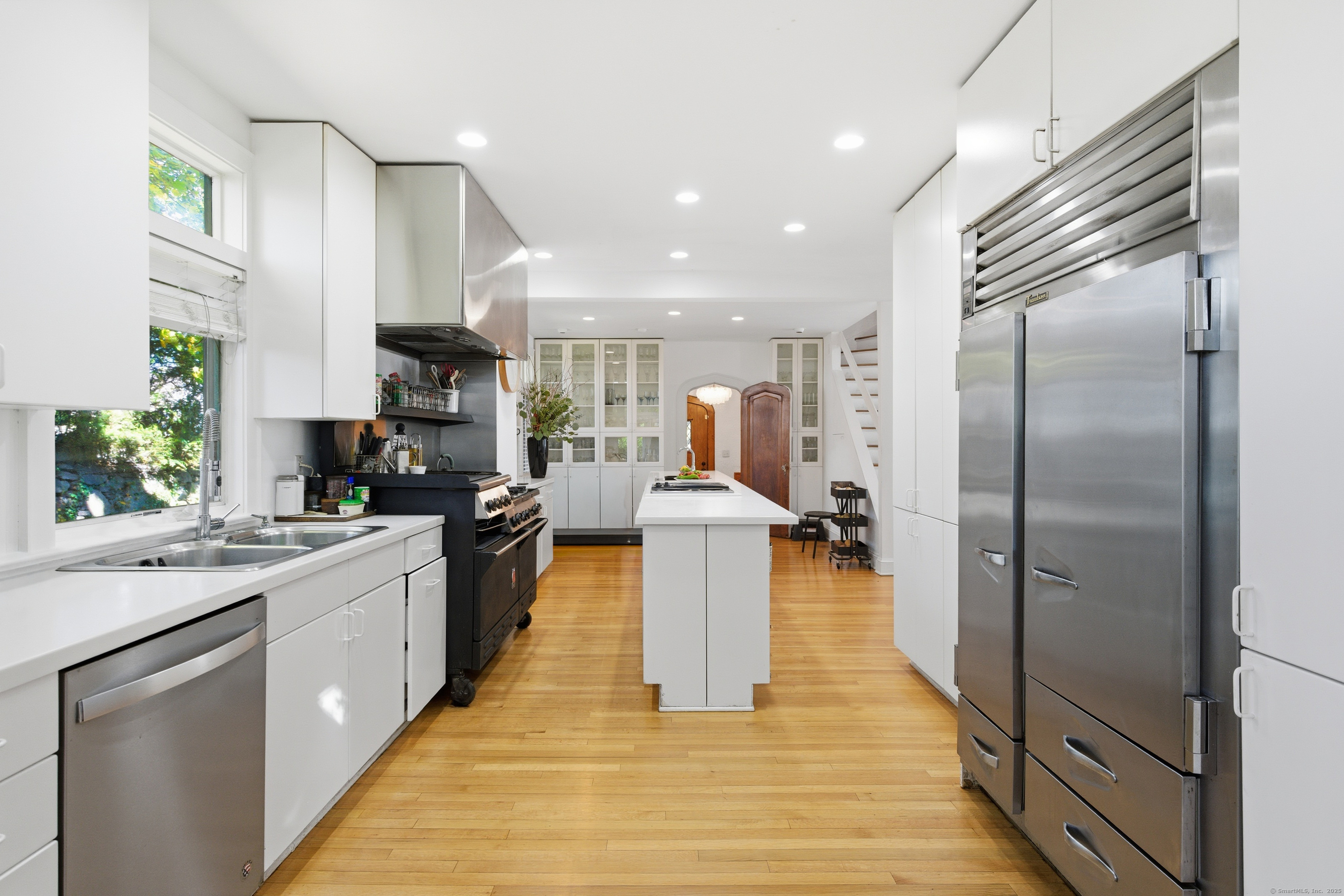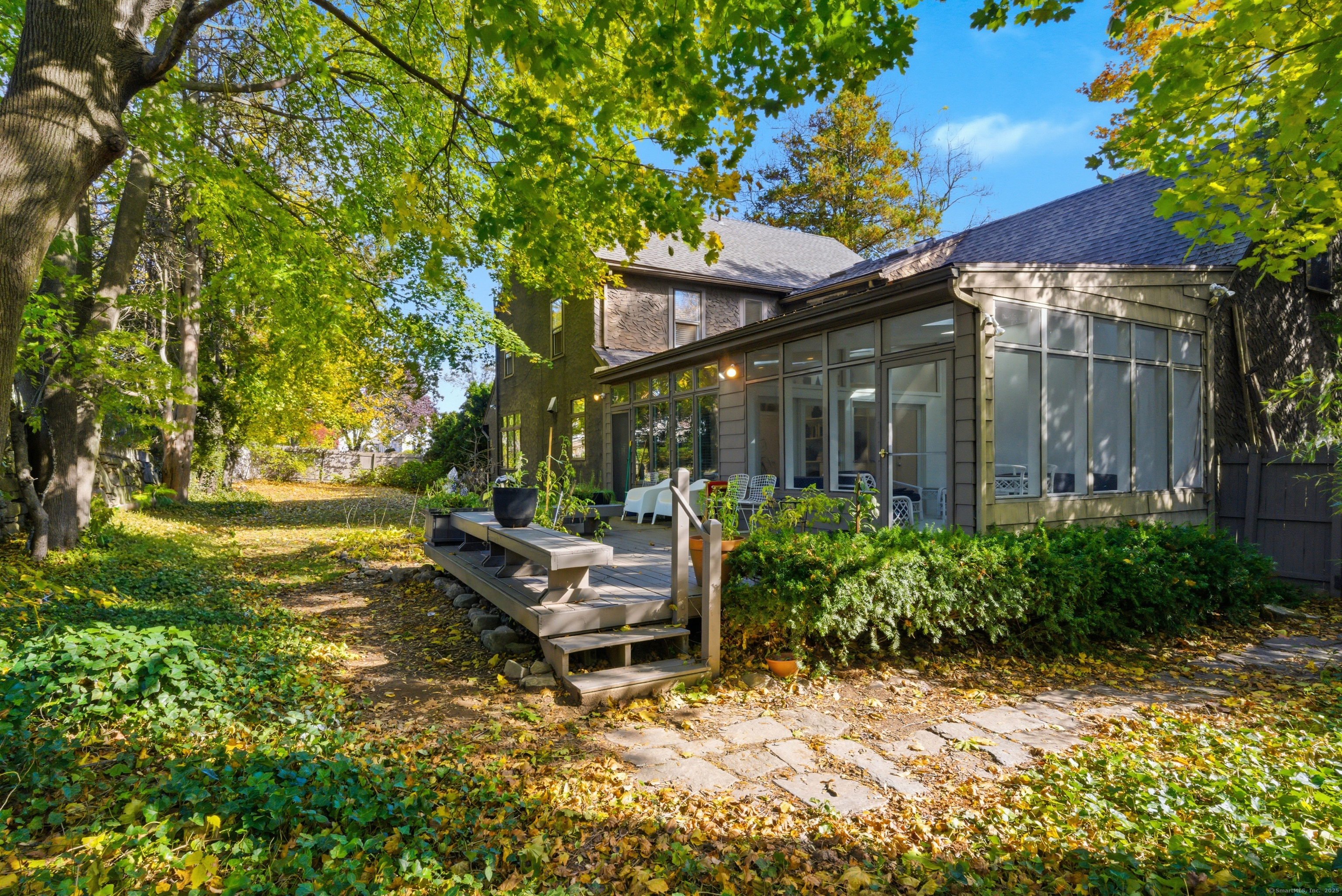 Discover timeless sophistication in this Colonial-Tudor masterpiece, once the residence of Colonel Henry Andrews Mucci-the U.S. Army Ranger who led the heroic 1945 mission rescuing 513 survivors from Cabanatuan Prison Camp. Built in 1929 and prominently set on a corner lot along one of Bridgeport's most historic streets, this 3,087 sq ft home blends architectural grandeur with modern comfort. Step inside to an impressive living room featuring soaring cathedral ceilings, a stately fireplace, and a second-floor balcony overlooking the space-ideal for both intimate gatherings and grand entertaining. The renovated chef's kitchen showcases high-end finishes and opens to a sun-filled den, leading to a screened-in porch and private fenced-in backyard. The expansive primary suite offers a true retreat with a large updated bathroom, walk-in closet, and plenty of natural light. Three additional well-appointed bedrooms and two beautifully maintained bathrooms provide comfort for family or guests. Classic details-such as a stucco exterior, rich woodwork, and original character-are complemented by many modern updates. Additional features include a rare 3-car garage and flexible living spaces for work, relaxation, or hosting. Located near Seaside Park, Beardsley Park, and minutes from I-95 and the Merritt Parkway, this home offers excellent convenience for commuters and weekend escapes. Enjoy proximity to local dining, shopping, and the Bridgeport Public Library along Main