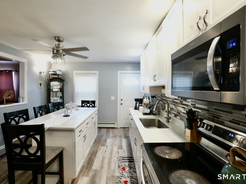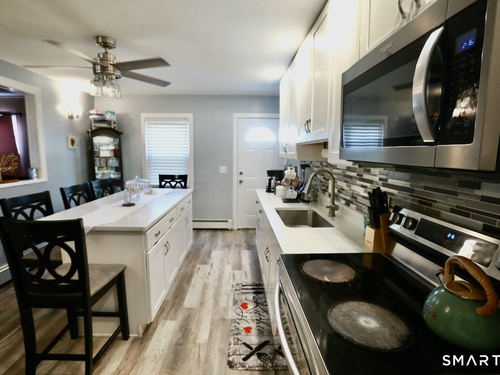 Welcome to your new home conveniently located in the North End of Bridgeport. It is a well-kept Ranch available on a 0.14-acre lot. Huge private deck for the new owner relaxation and entertainment. It consists of three bedrooms, one open floor plan between the kitchen and the dining room, newer kitchen cabinets with granite counter tops installed in (2022), one full bathroom, one living room and a laundry room near the kitchen on the main level. There is a walk-up attic that offers lots of possibilities for the new owner to enjoy. This home is in move-in ready condition. The following appliances are included: Electric Stove (stainless steel), Refrigerator (stainless steel), Washer (white) and Dryer (white). Previously, the Water heater and the Boiler were oil; In (2016) Gas water heater and boiler were installed . It is within a short distance to a few Major highways North and South such as I-95, Merrit parkway, Route 8/25. It is positioned a few minutes away from downtown Bridgeport train station and Bridgeport Bass Pro Shops. Yes,it is in a flood zone. If financing, your lender will require flood insurance. It is a must see to believe!