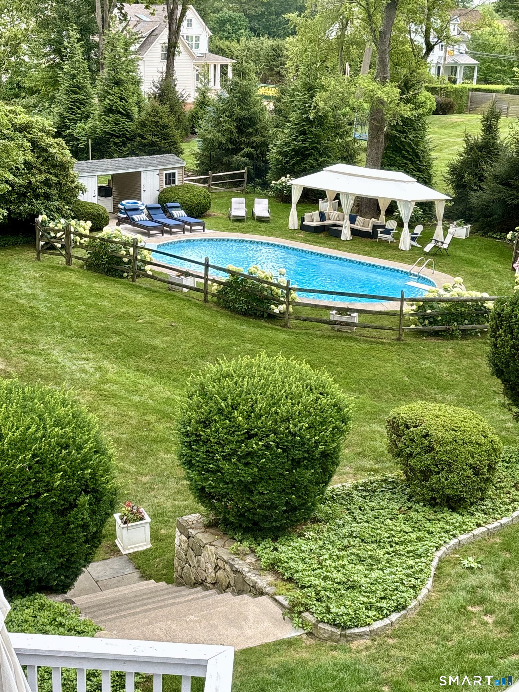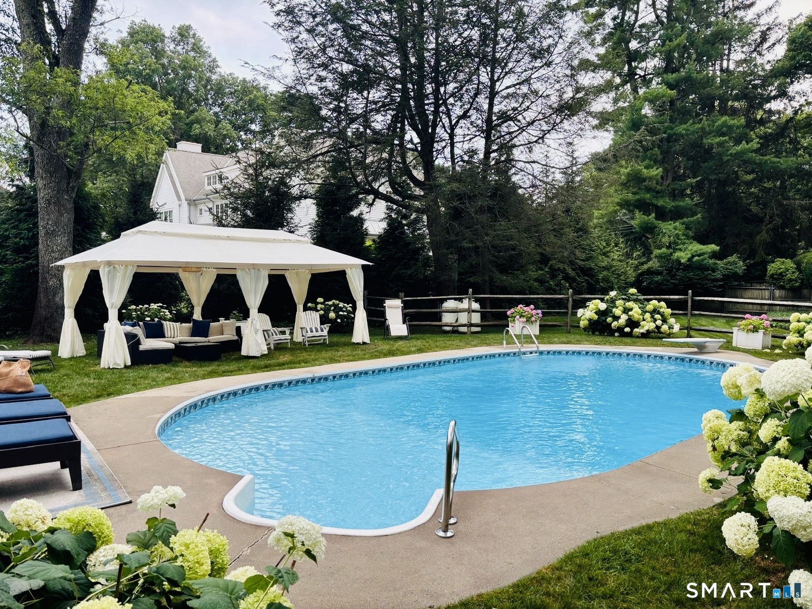 Classic charm meets modern comfort in this beautifully updated 4-bedroom, 3 full and 1 half bath home, set in one of Westport's most loved walking neighborhoods-just minutes to top schools, vibrant downtown, and an easy hour to NYC. A bright, spacious eat-in kitchen is the heart of the home, opening to a back deck for effortless indoor-outdoor living and flowing into a sun-filled family room with vaulted ceilings and custom built-ins-perfect for gathering or unwinding. Upstairs, the primary suite is a true retreat, featuring a luxe bath with soaking tub, heated floors, heated towel bars, and generous walk-in closets. All baths are beautifully updated, and the home offers incredible flexibility with a first-floor office, elegant living room, and a bonus sunroom ideal as a playroom, lounge, or creative space. Step outside and you'll find your own private resort-a gorgeous heated pool with a chic cabana, made for summer entertaining, long weekends, and effortless staycations. A finished lower level adds even more space to spread out, making this home as functional as it is inviting.