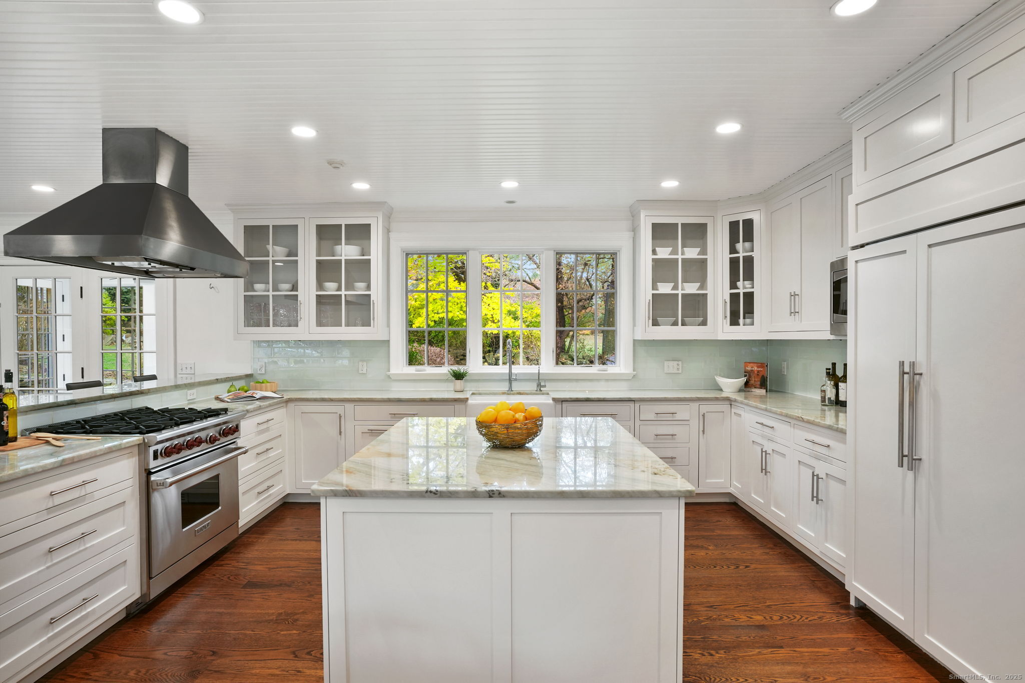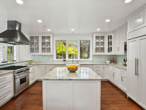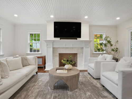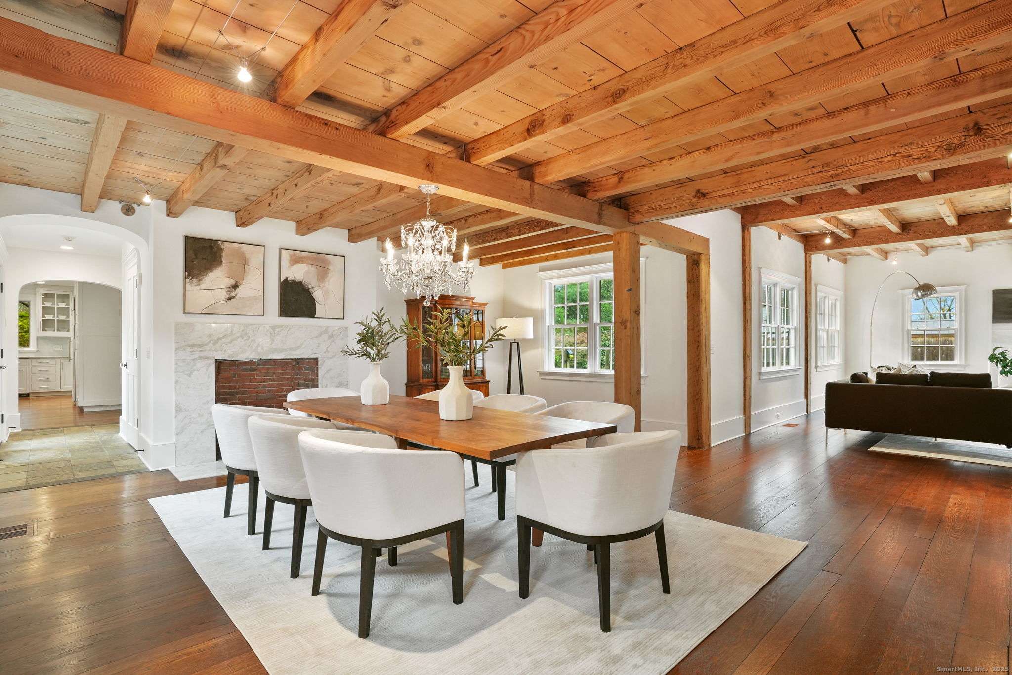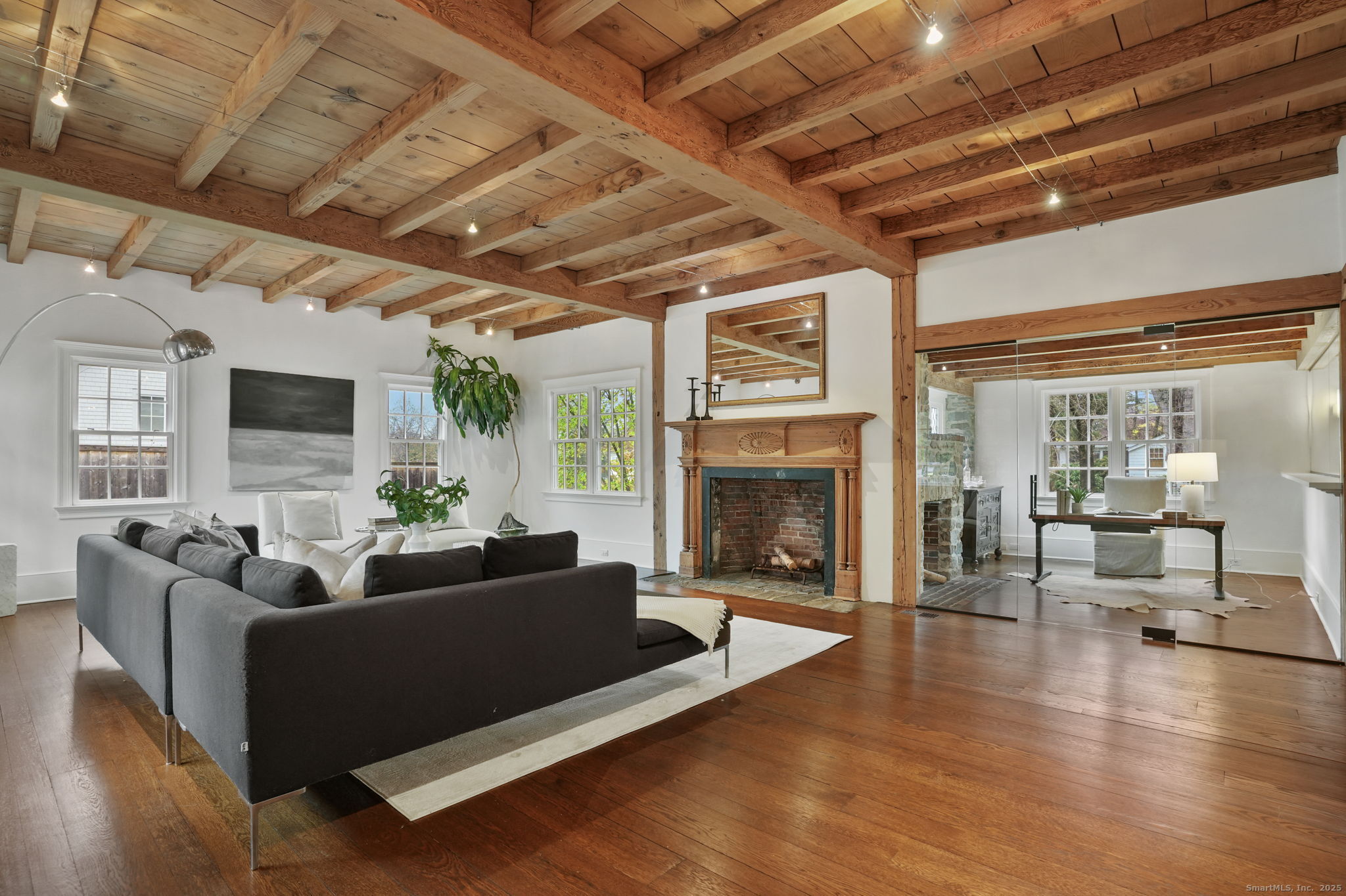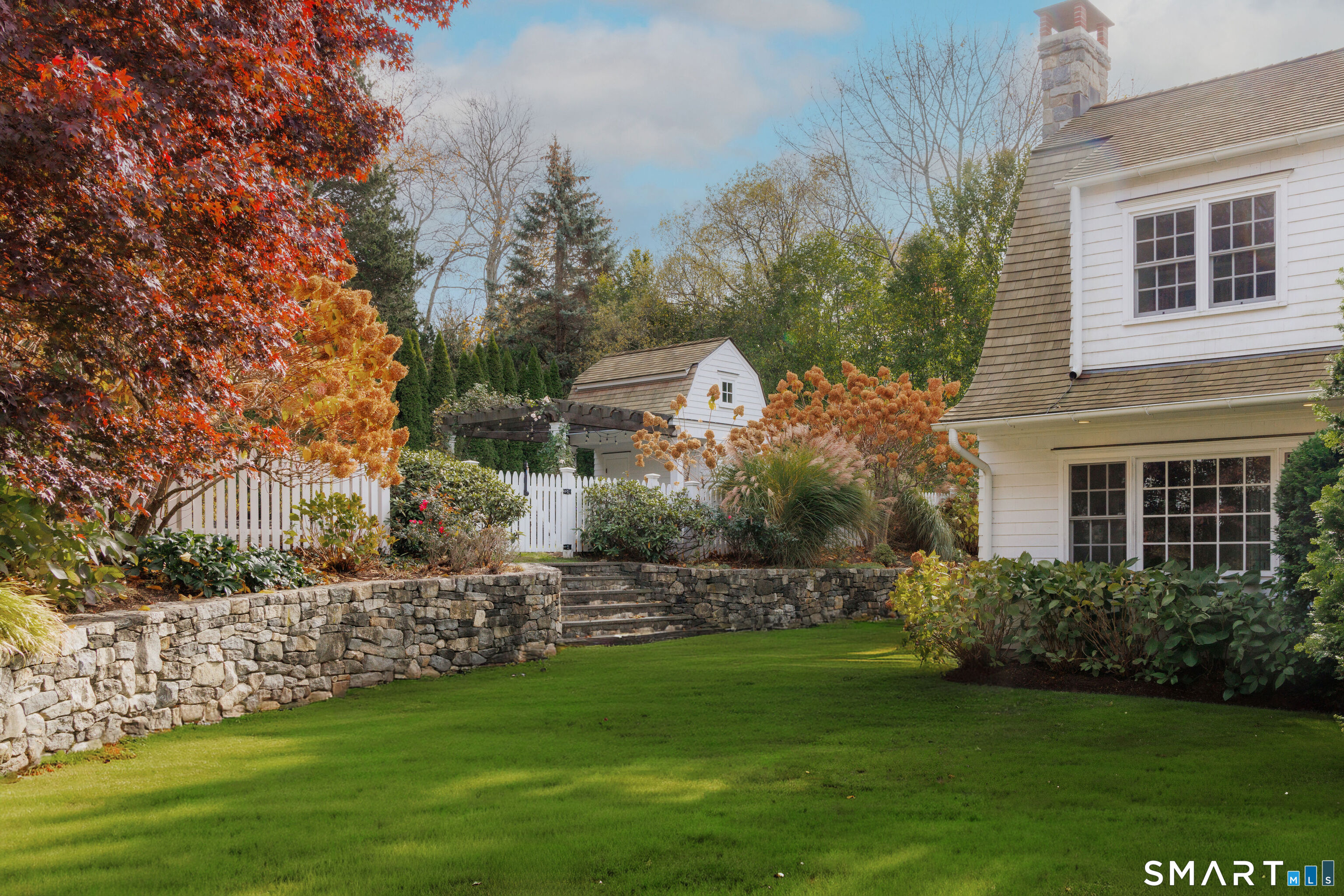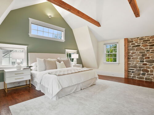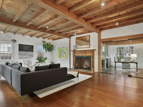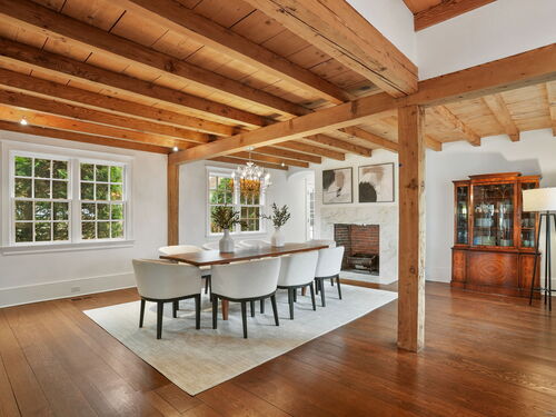 Rare opportunity to live on one of Westport's most desirable Compo Beach cul-de-sacs. Beautifully restored and expanded for today's lifestyle, this character filled circa 1925 Colonial features beamed ceilings, exposed stone, four fireplaces and more throughout 5200sf of living space (plus finished LL). Grand entertaining spaces include expansive LR (10' ceilings) and DR, each with FPL, Gourmet Kitchen, Family Rm/FPL, Sunroom, and a glass-enclosed Office off the Foyer. Primary BR and Second BR have vaulted ceilings. Three additional large BRs, laundry room, plus a second Office/Study Room complete the upstairs. Finished LL has playroom/gym. Serene and private half-acre grounds feature old stone walls, mature trees and gardens, gunite pool with spa and auto cover, pool house with patio/pergola, wood-burning fire pit and a fenced vegetable garden. Walking distance (on sidewalks) to the beach, train and restaurants, Compo Pkwy is a quiet cul-de-sac opposite Westport's Longshore Club, with 18-hole golf course, tennis and pickle courts, sailing school and ice skating rink in the Winter months! Located at the beach, yet with privacy and property, this home offers the best of both worlds - beach and country living - along with the perfect blend of vintage charm and modern lifestyle amenities.