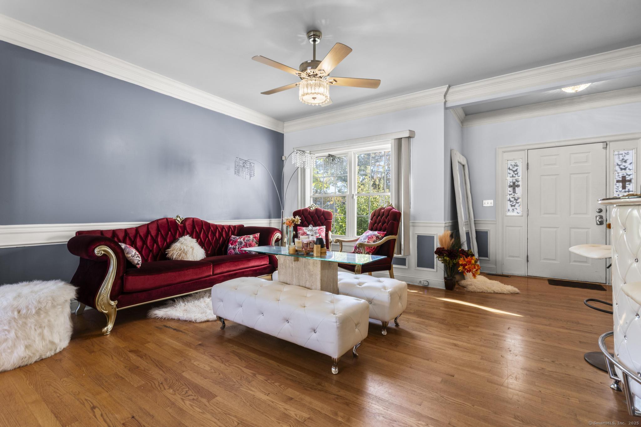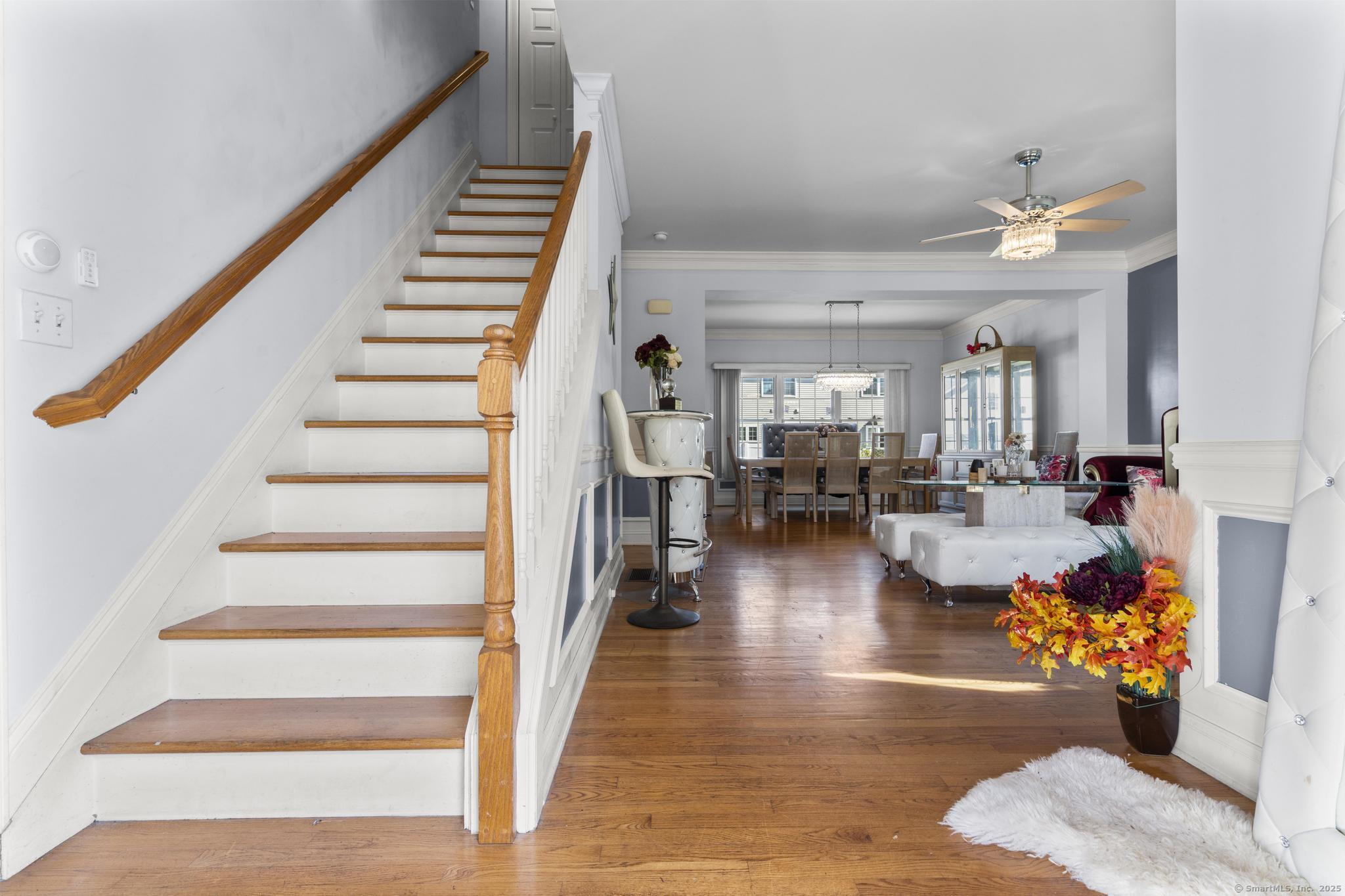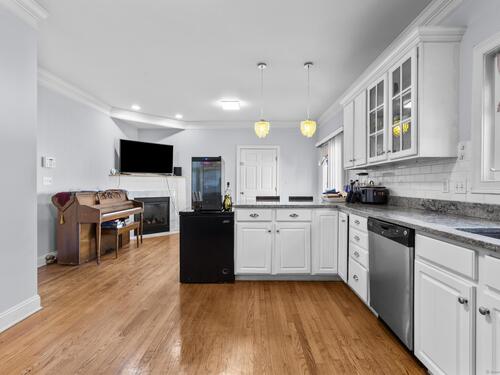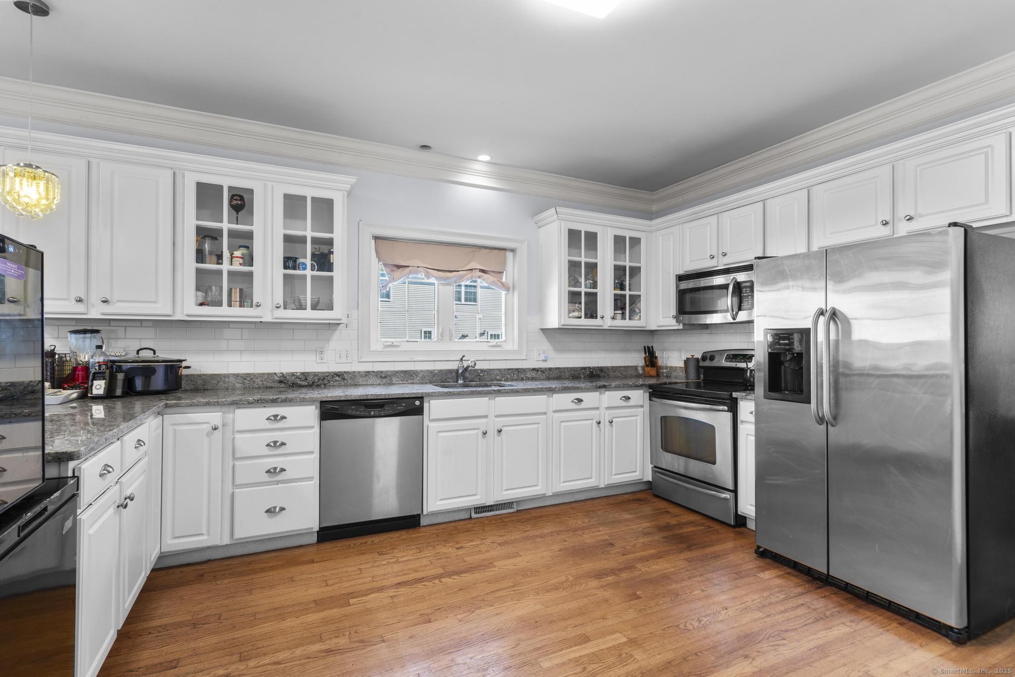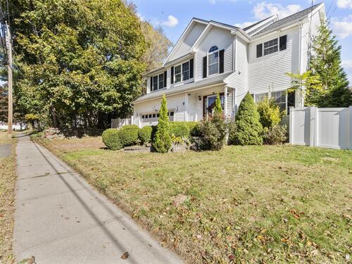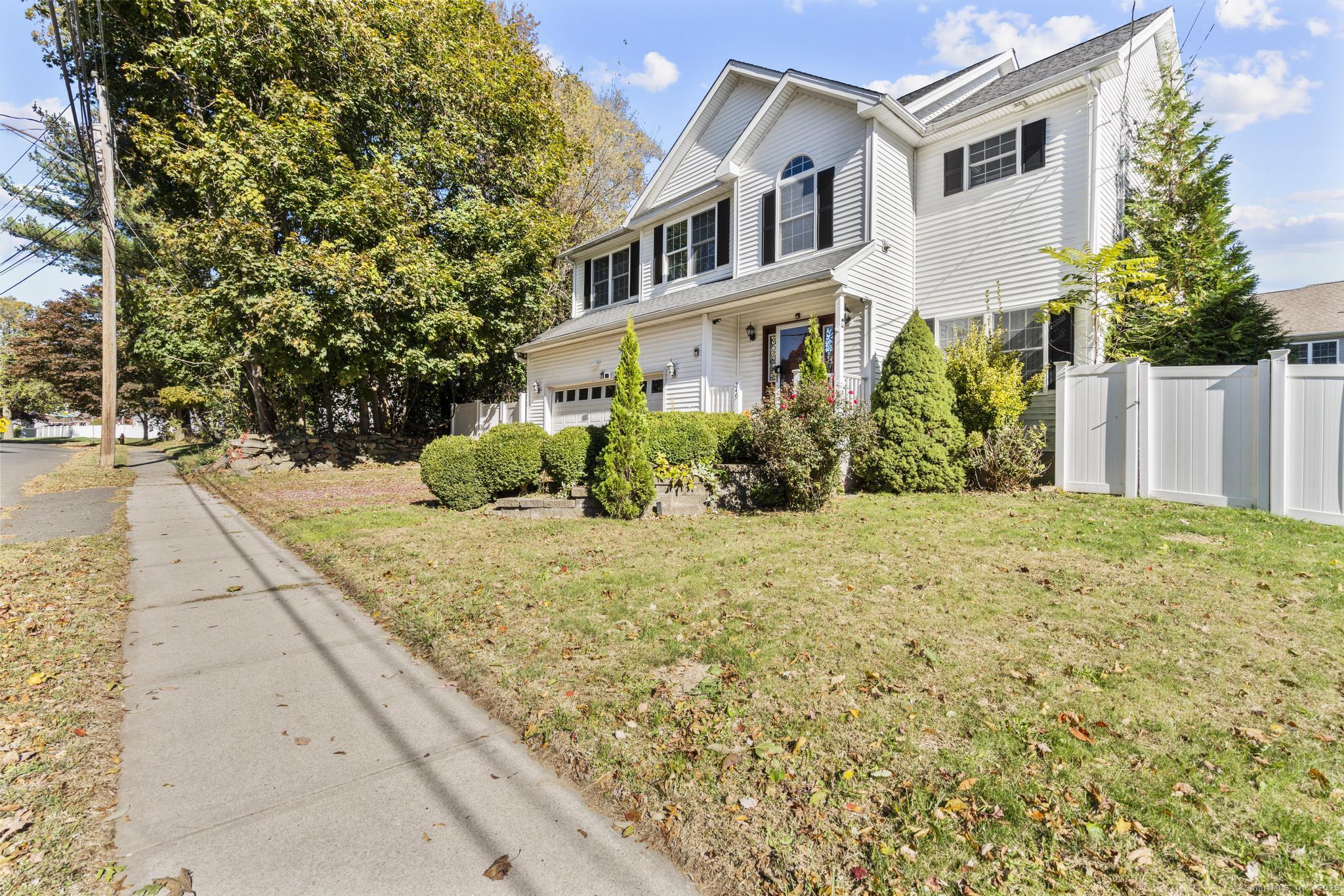 Welcome to this exquisite 5-bedroom, 3.5-bathroom Colonial home, with a main-level in-law. The home offers over 2,600 sq. ft. of luxurious living space. Featuring elegant crown molding, granite countertops, and stainless steel appliances, this residence is designed for modern living. The main floor boasts beautiful hardwood floors and an open-concept kitchen with ample storage, perfect for entertaining. Enjoy the cozy electric fireplace in the kitchen area and step outside through the sliding doors to your private, fenced-in yard ideal for outdoor gatherings. The lower level includes a full in-law suite complete with a private entrance, a kitchen, a full bath, and a bedroom, offering privacy and comfort for extended family or guests. Large windows throughout flood the home with natural light, creating a warm and inviting atmosphere. Spacious Dining area and open concept family room, and a half bath finish the lower level. Upstairs, the spacious primary suite features a luxurious bath with a soaking tub, a stand-up shower, and a generous walk-in closet. Each additional bedroom is bright and airy, with plush carpeting and large closets. The convenient laundry room on the upper level provides plenty of storage space. Located in a perfect commuter spot, this home is close to the train station, I-95, and Route 15, with easy access to shopping and entertainment. Enjoy the convenience of quick travel or work in New York City. Ideal for multi-generational living and a growing family