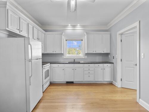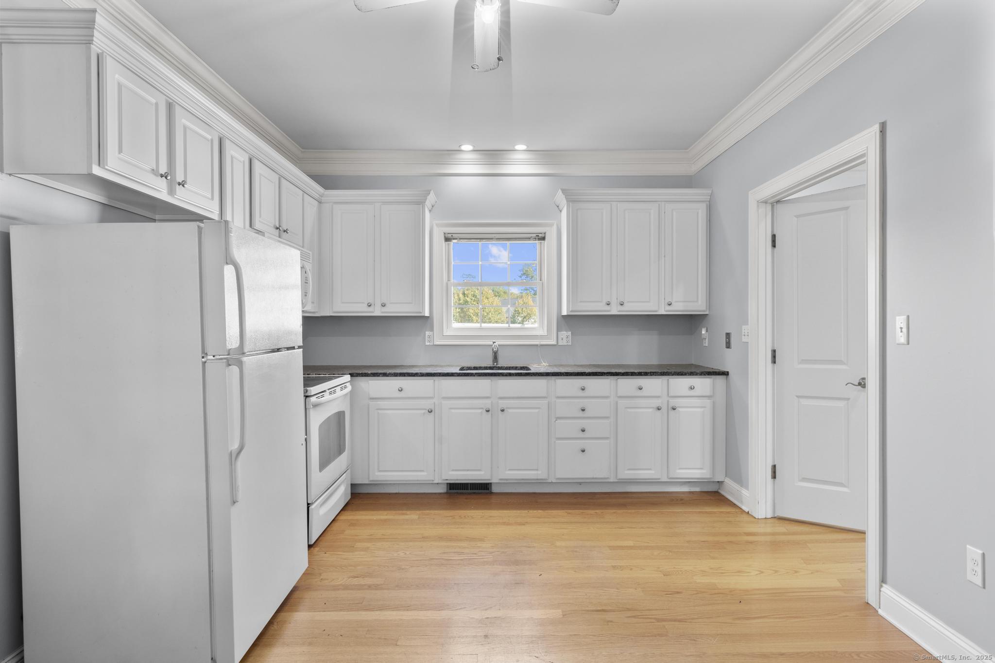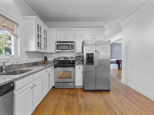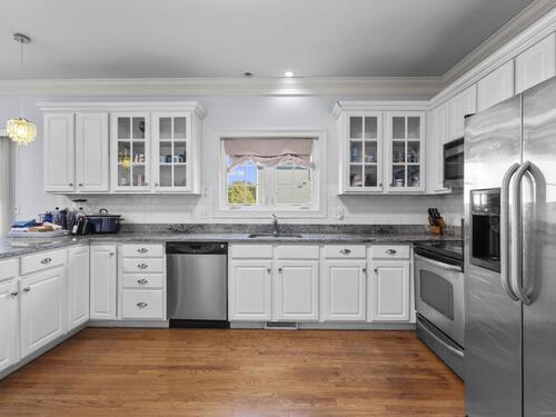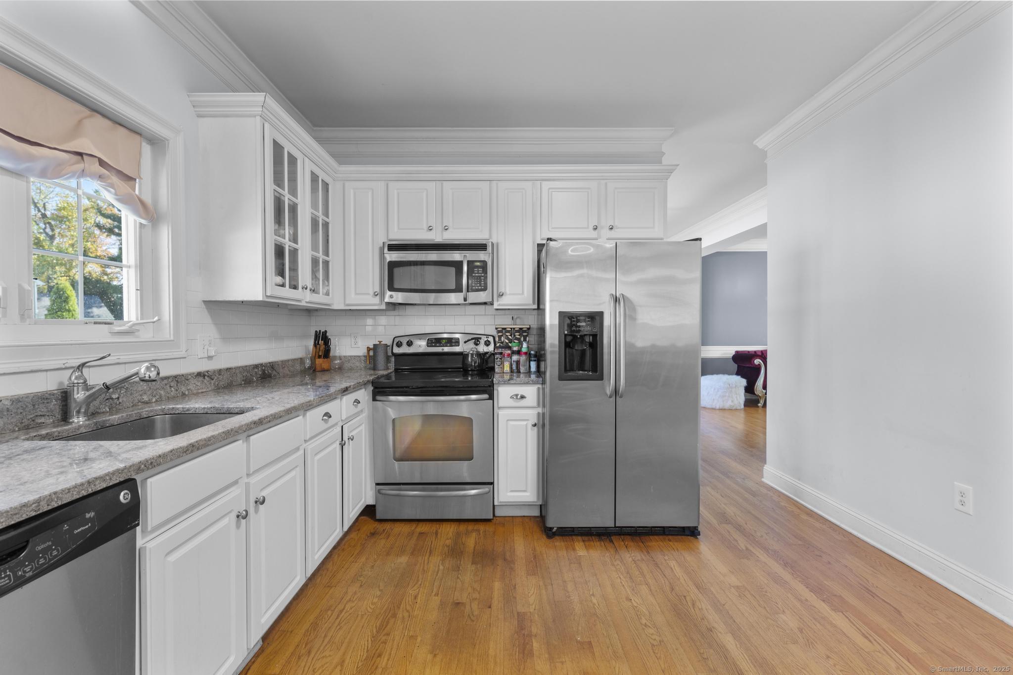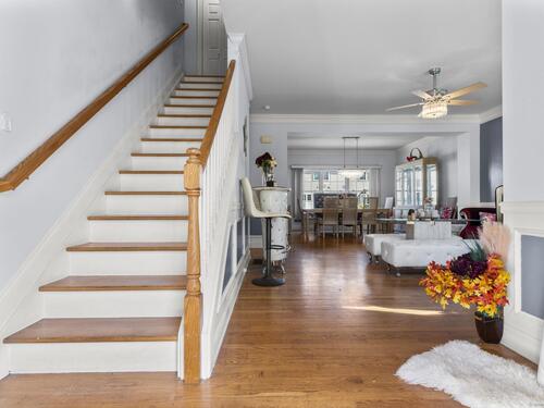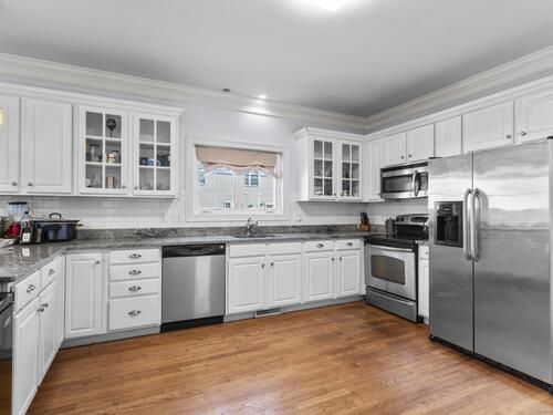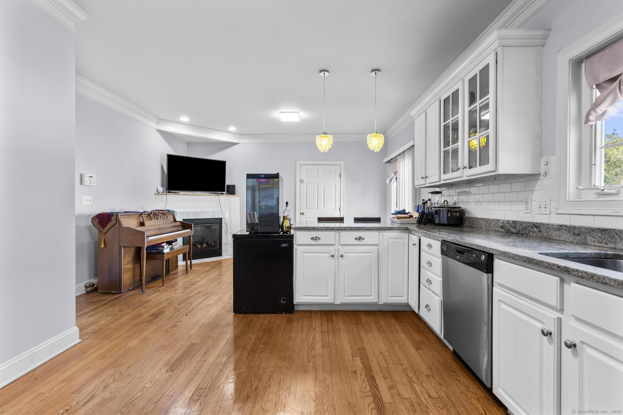 Welcome to this exquisite 5-bedroom, 3.5-bathroom Colonial home, with a main-level in-law. The home offers over 2,600 sq. ft. of luxurious living space. Featuring elegant crown molding, granite countertops, and stainless steel appliances, this residence is designed for modern living. The main floor boasts beautiful hardwood floors and an open-concept kitchen with ample storage, perfect for entertaining. Enjoy the cozy electric fireplace in the kitchen area and step outside through the sliding doors to your private, fenced-in yard ideal for outdoor gatherings. The lower level includes a full in-law suite complete with a private entrance, a kitchen, a full bath, and a bedroom, offering privacy and comfort for extended family or guests. Large windows throughout flood the home with natural light, creating a warm and inviting atmosphere. Spacious Dining area and open concept family room, and a half bath finish the lower level. Upstairs, the spacious primary suite features a luxurious bath with a soaking tub, a stand-up shower, and a generous walk-in closet. Each additional bedroom is bright and airy, with plush carpeting and large closets. The convenient laundry room on the upper level provides plenty of storage space. Located in a perfect commuter spot, this home is close to the train station, I-95, and Route 15, with easy access to shopping and entertainment. Enjoy the convenience of quick travel or work in New York City. Ideal for multi-generational living and a growing family