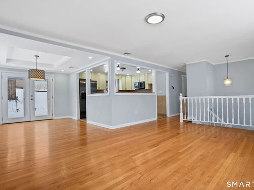 Welcome to 25 Fairchild Road in Stratford! This 3-bedroom, 2-full-bath raised ranch sits on a desirable corner lot and offers an open, inviting layout. The foyer leads seamlessly into the living and dining rooms, highlighted by refinished hardwood floors throughout. The primary bedroom features a walk-in closet and a double vanity bath. Two fireplaces add warmth and character, while the 2-car garage, spacious backyard, and deck provide ideal spaces for everyday living and entertaining. Freshly painted exterior and interior. Come make this property your home! Being sold as-is.