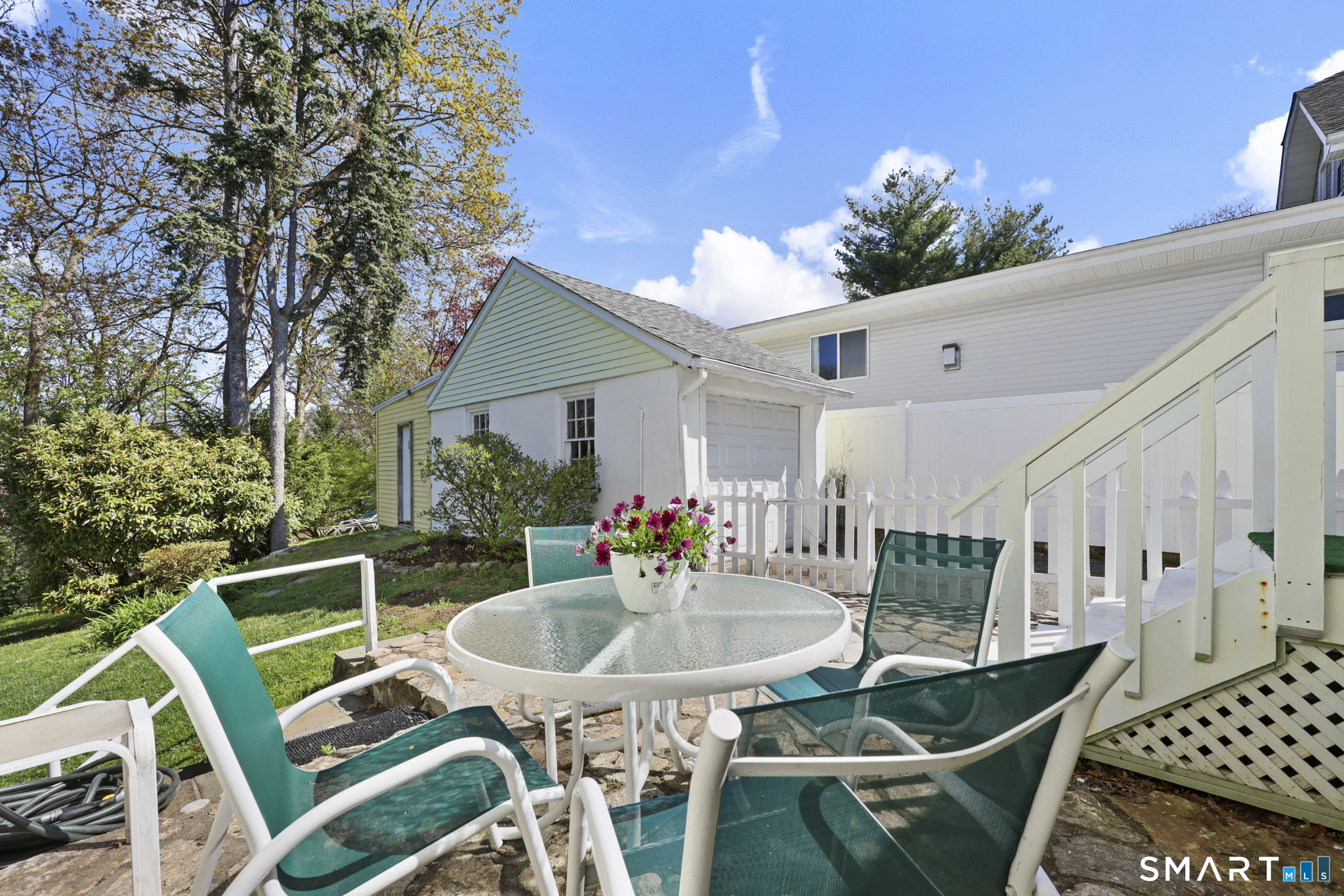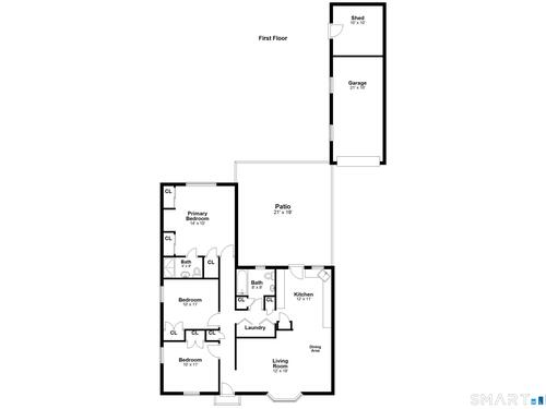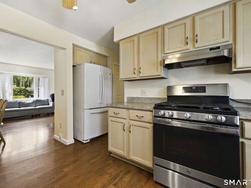 Welcome home and enjoy easy one-level living in this desirable Newfield location! The bright living room with dining area flows seamlessly into the kitchen, which opens to a private stone patio & fenced in yard, perfect for outdoor dining and entertaining. A separate bedroom wing includes the primary bedroom featuring three closets and full bath for privacy & convenience plus two additional bedrooms and a hall full bath. The detached garage with an attached shed provides excellent storage and functionality. Interior freshly painted. Ideally situated just steps to Newfield Green Shopping Center, Barrett Park, houses of worship and minutes to vibrant downtown. This home offers both comfort and convenience in a sought-after neighborhood.