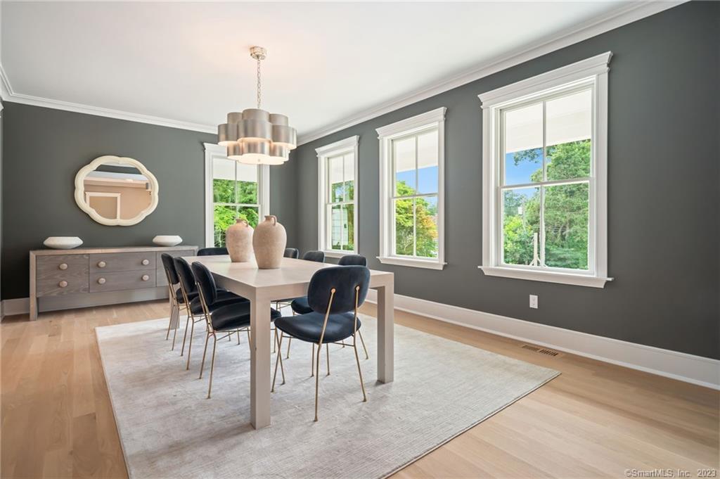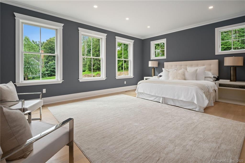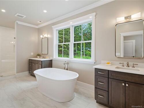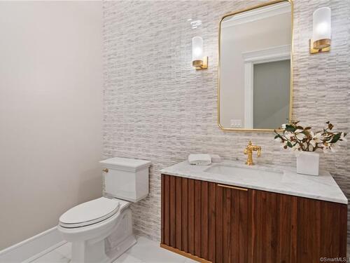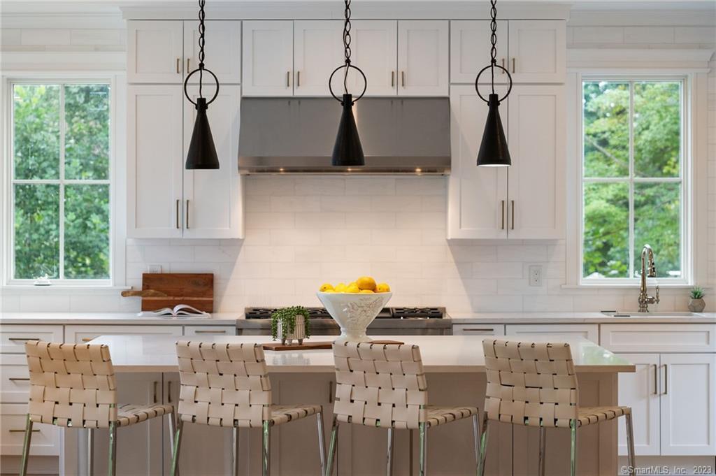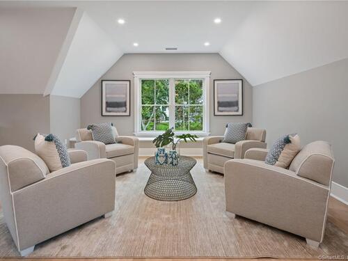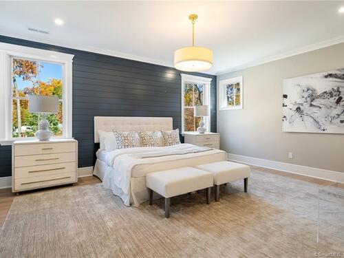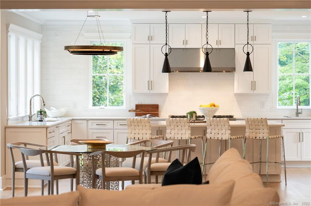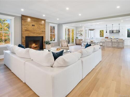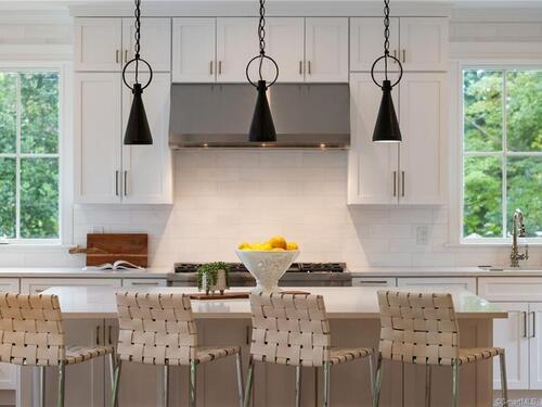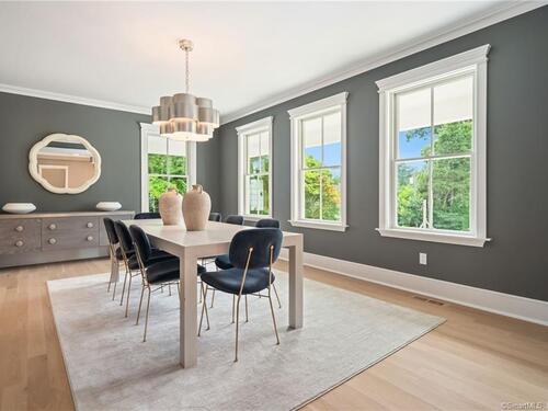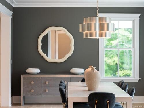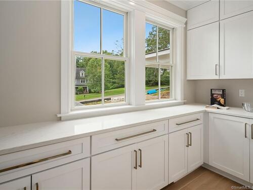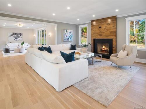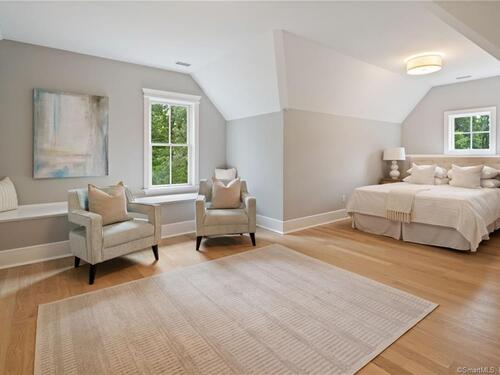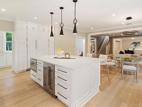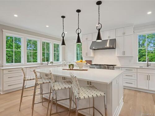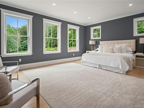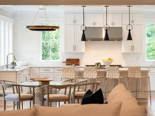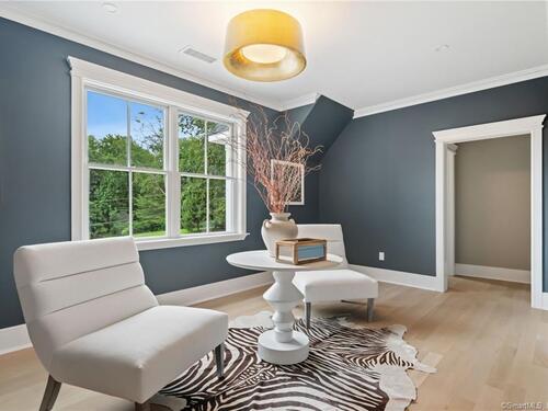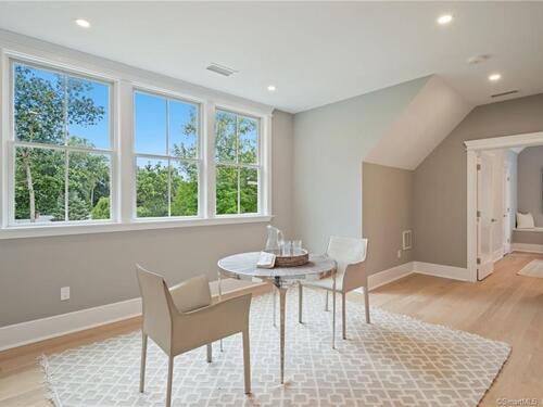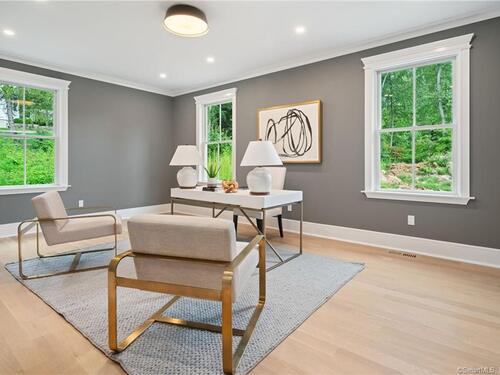 Ideally located on a private lot in close proximity to public and private schools, 25 Hillcrest Rd. is located on a low traffic street on New Canaan's lower west side within minutes of the Merritt Parkway, Talmadge Hill train station and down town New Canaan. Spanning close to 8,000 sq ft, the transitional floor plan masterfully blends open concept spaces with more intimate, private spaces. Featuring 9' ceilings throughout and a clean, contemporary design aesthetic, the gracious home is perfect for entertaining large crowds while at the same time comfortable for everyday living. Entering through the custom designed front door, you are welcomed by a grand foyer with unobstructed views through the living room to the private backyard. As you move through the home, the centrally located family room is connected to both the large formal dining room and the gourmet kitchen which is flooded with natural light through six over sized windows. Featuring a clean, white design aesthetic the kitchen is as functional as it is beautiful. With a large 8.5' island coupled with two sinks and two dishwashers, prep and clean-up is easy. The adjacent pantry with lots of cabinetry and mudroom provide a place for everything, keeping the main living area neat and tidy. Not to be missed on the 1st floor is the large en suite guest bedroom (which could also serve as the primary bedroom) and a large private office.
