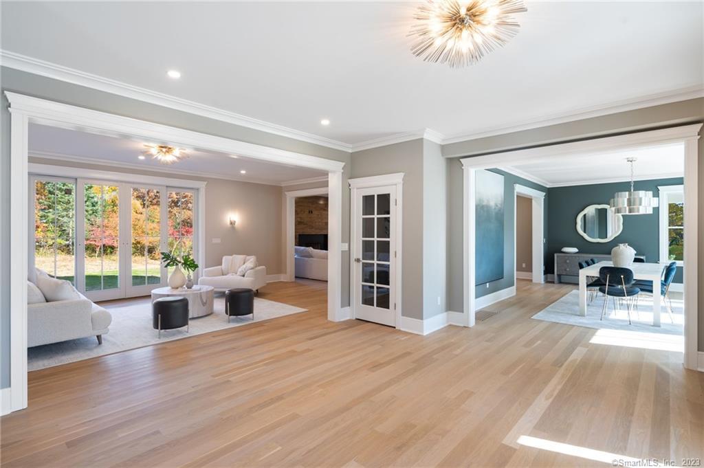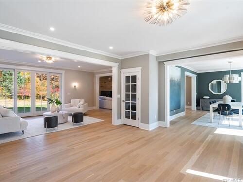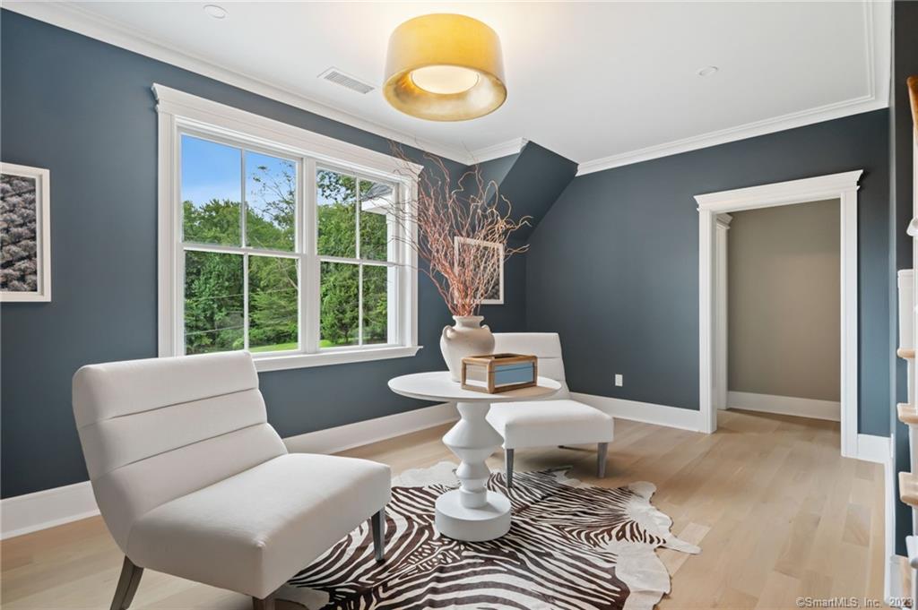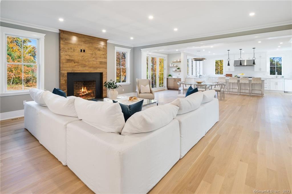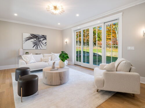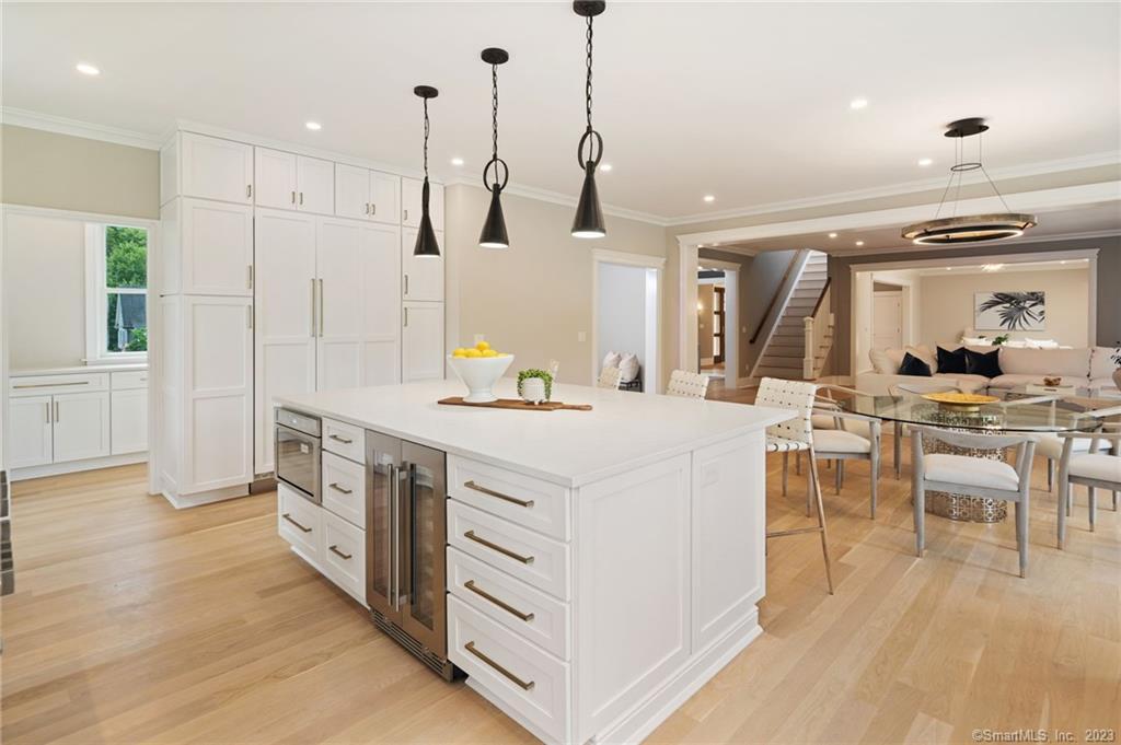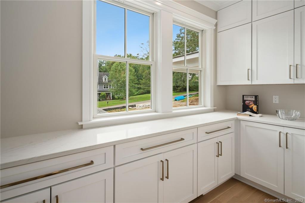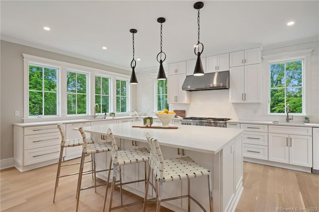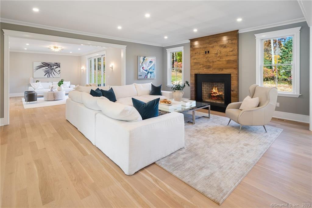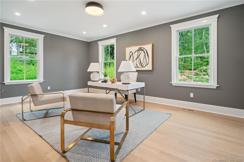 Ideally located on a private lot in close proximity to public and private schools, 25 Hillcrest Rd. is located on a low traffic street on New Canaan's lower west side within minutes of the Merritt Parkway, Talmadge Hill train station and down town New Canaan. Spanning close to 8,000 sq ft, the transitional floor plan masterfully blends open concept spaces with more intimate, private spaces. Featuring 9' ceilings throughout and a clean, contemporary design aesthetic, the gracious home is perfect for entertaining large crowds while at the same time comfortable for everyday living. Entering through the custom designed front door, you are welcomed by a grand foyer with unobstructed views through the living room to the private backyard. As you move through the home, the centrally located family room is connected to both the large formal dining room and the gourmet kitchen which is flooded with natural light through six over sized windows. Featuring a clean, white design aesthetic the kitchen is as functional as it is beautiful. With a large 8.5' island coupled with two sinks and two dishwashers, prep and clean-up is easy. The adjacent pantry with lots of cabinetry and mudroom provide a place for everything, keeping the main living area neat and tidy. Not to be missed on the 1st floor is the large en suite guest bedroom (which could also serve as the primary bedroom) and a large private office.