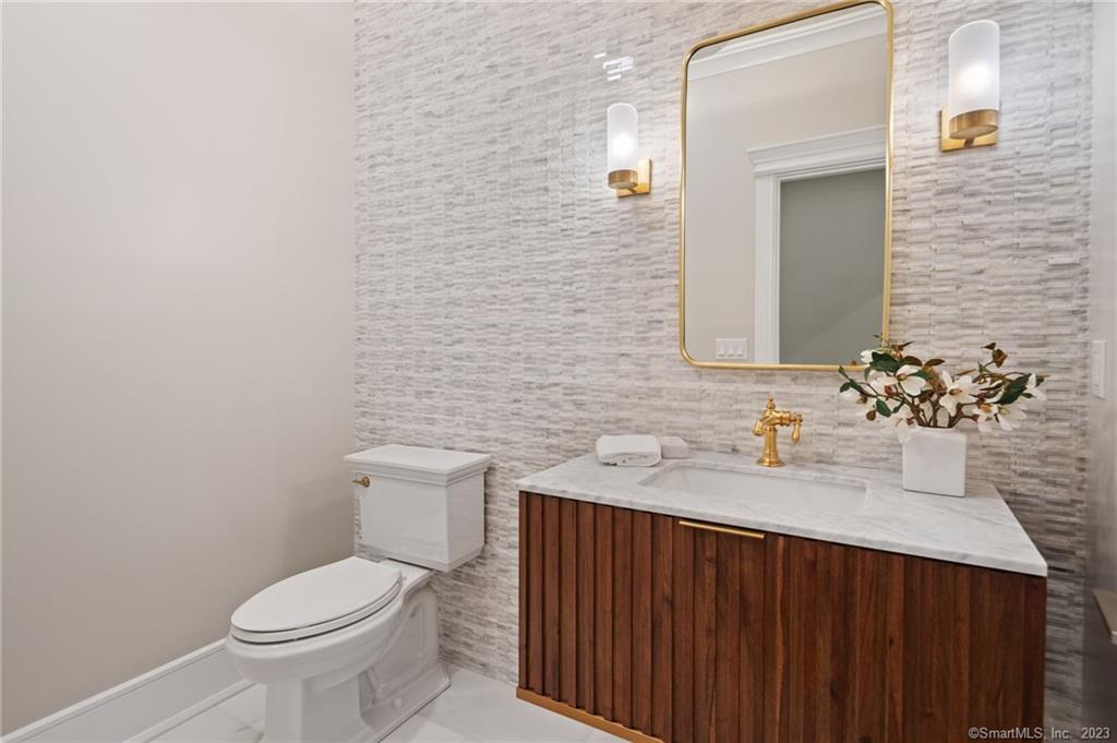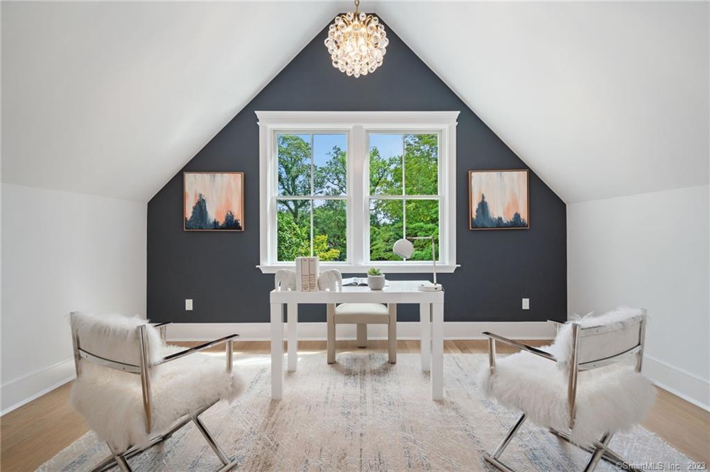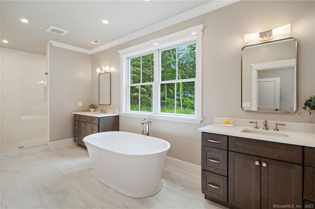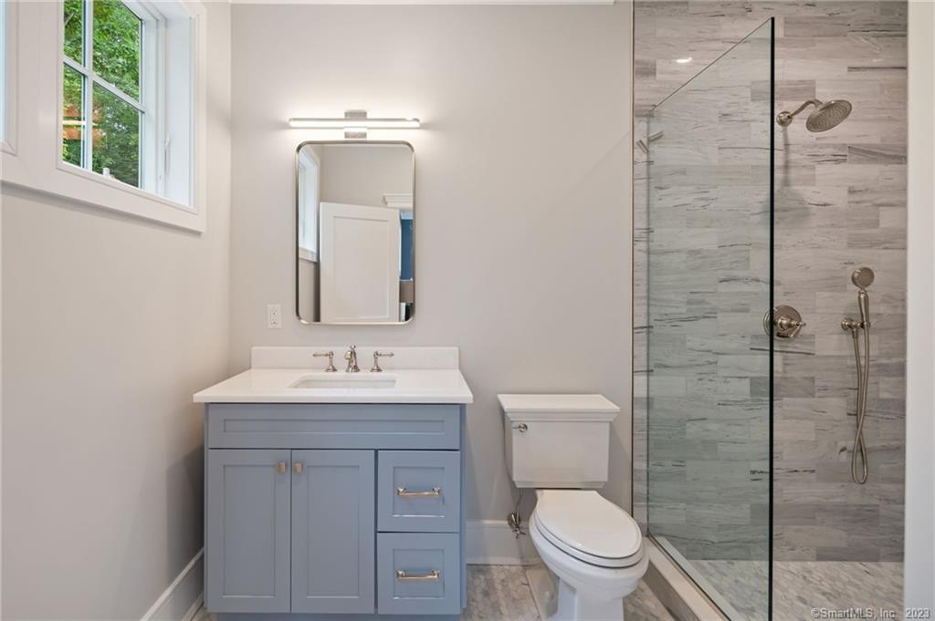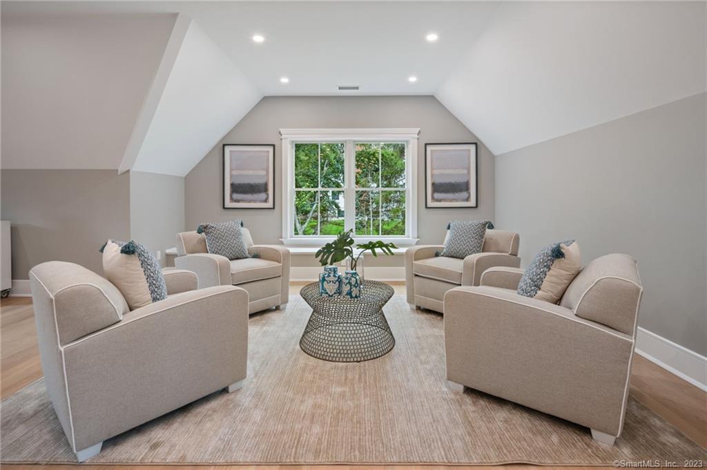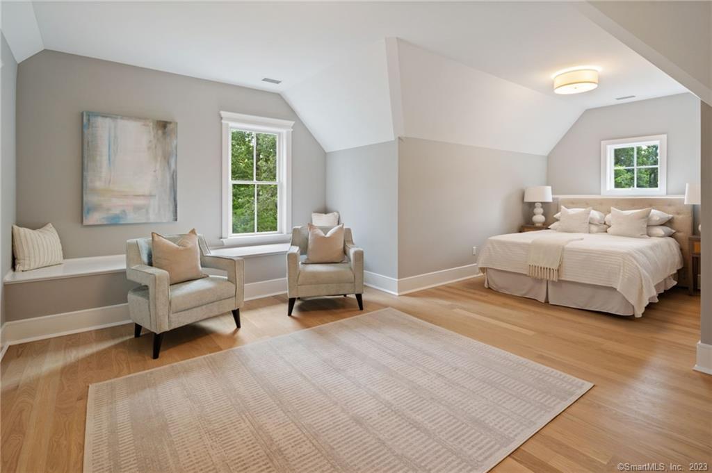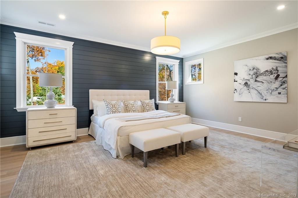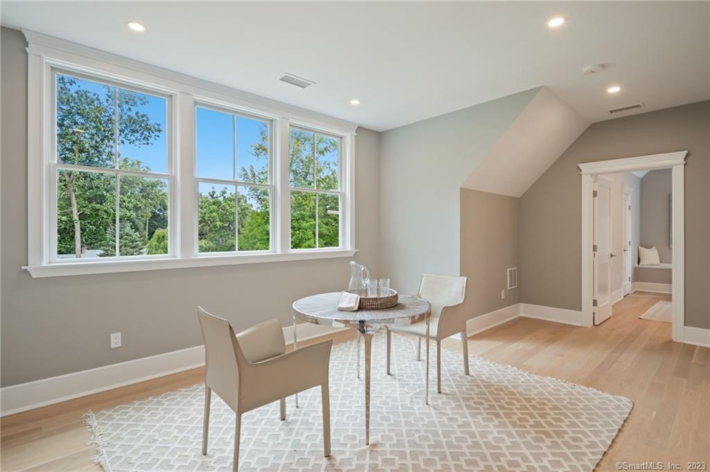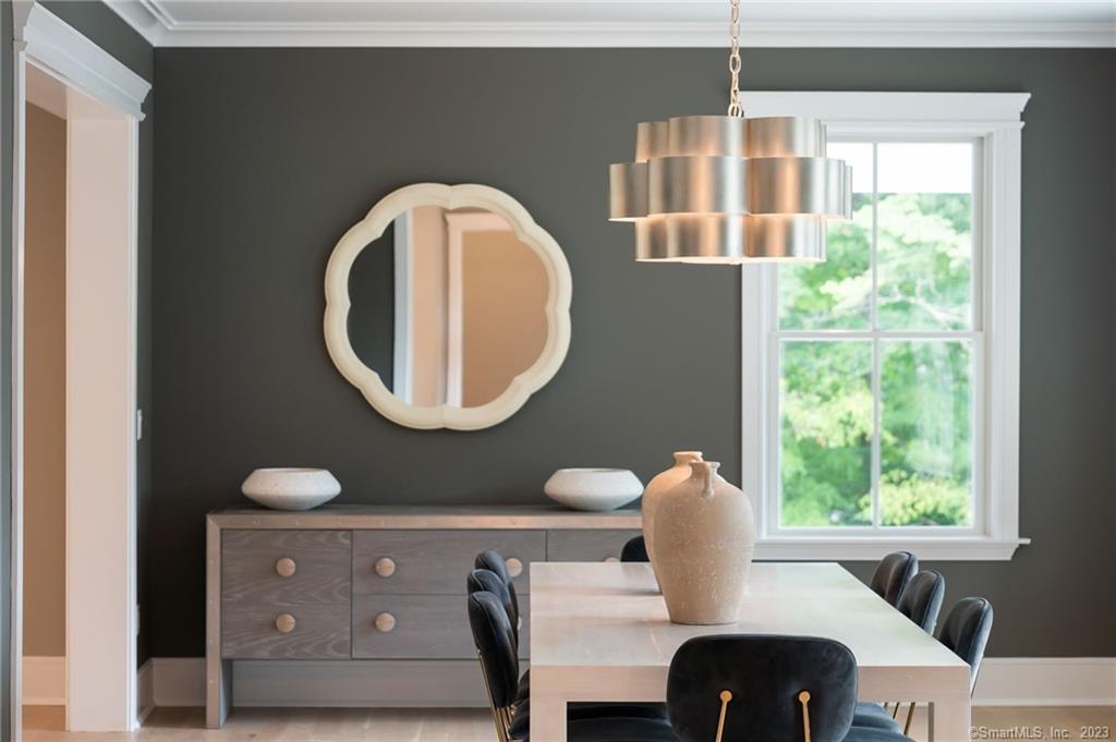 Ideally located on a private lot in close proximity to public and private schools, 25 Hillcrest Rd. is located on a low traffic street on New Canaan's lower west side within minutes of the Merritt Parkway, Talmadge Hill train station and down town New Canaan. Spanning close to 8,000 sq ft, the transitional floor plan masterfully blends open concept spaces with more intimate, private spaces. Featuring 9' ceilings throughout and a clean, contemporary design aesthetic, the gracious home is perfect for entertaining large crowds while at the same time comfortable for everyday living. Entering through the custom designed front door, you are welcomed by a grand foyer with unobstructed views through the living room to the private backyard. As you move through the home, the centrally located family room is connected to both the large formal dining room and the gourmet kitchen which is flooded with natural light through six over sized windows. Featuring a clean, white design aesthetic the kitchen is as functional as it is beautiful. With a large 8.5' island coupled with two sinks and two dishwashers, prep and clean-up is easy. The adjacent pantry with lots of cabinetry and mudroom provide a place for everything, keeping the main living area neat and tidy. Not to be missed on the 1st floor is the large en suite guest bedroom (which could also serve as the primary bedroom) and a large private office.