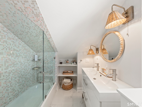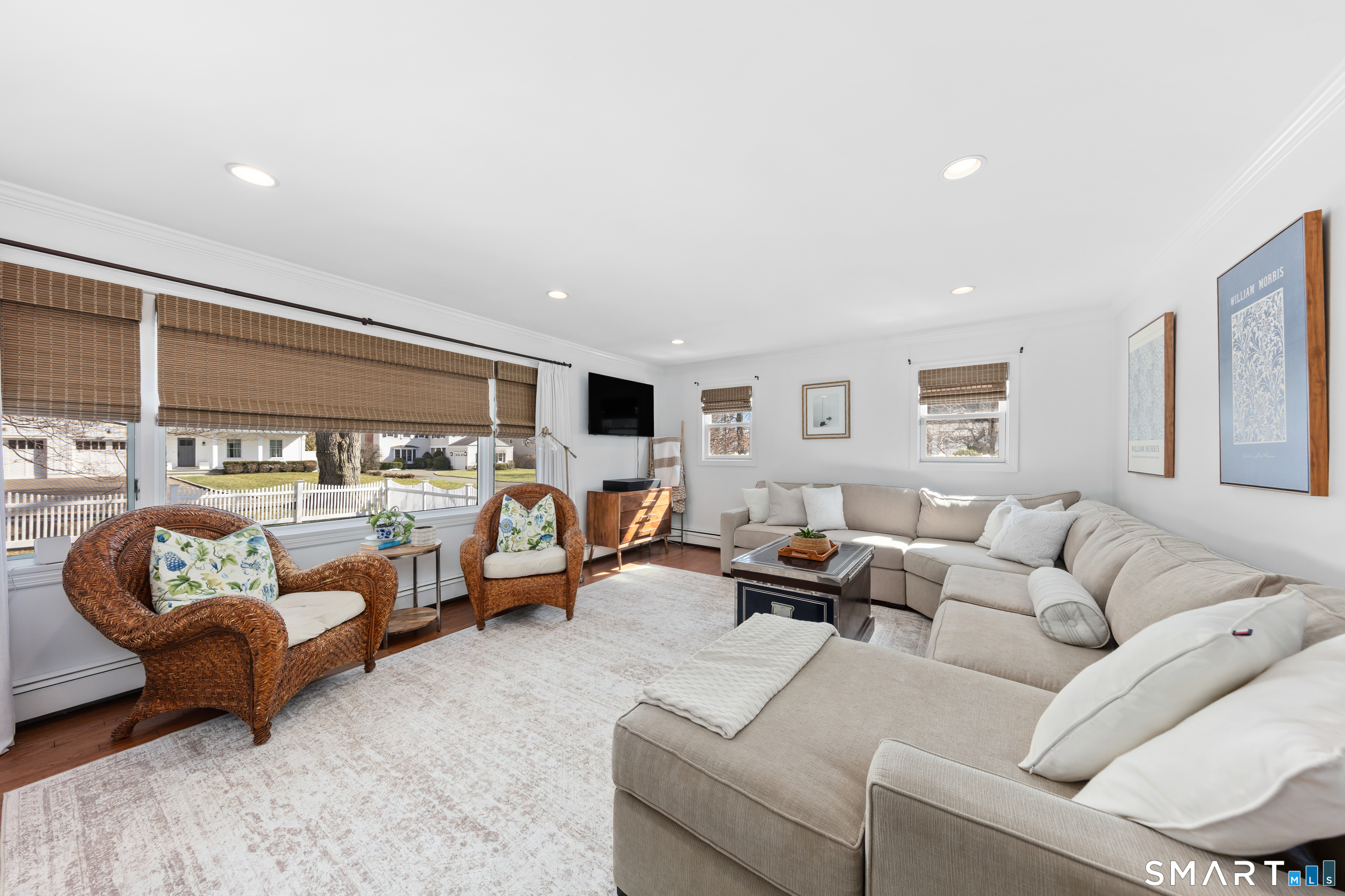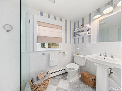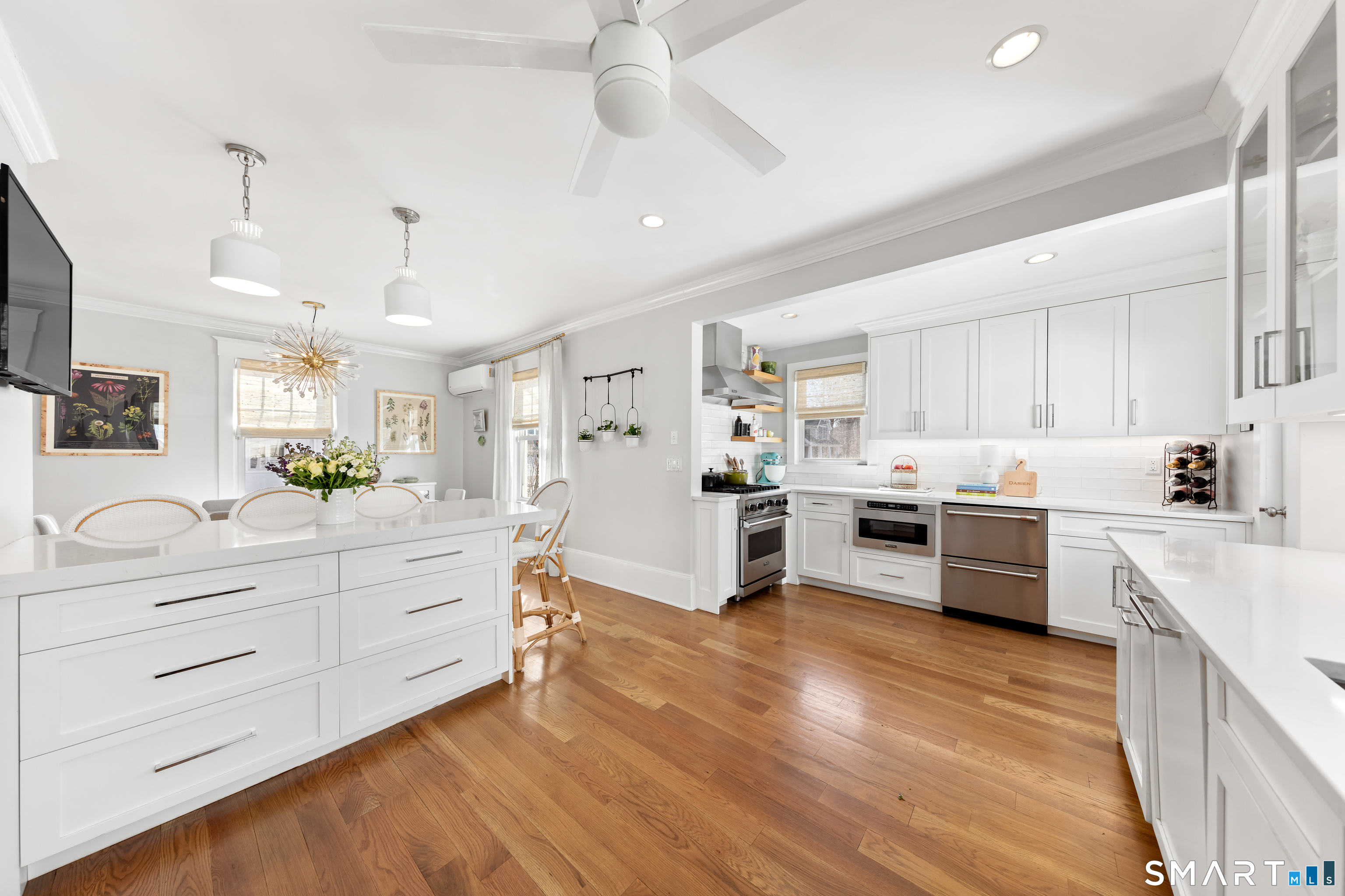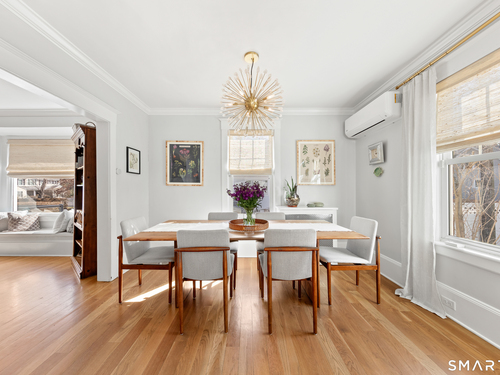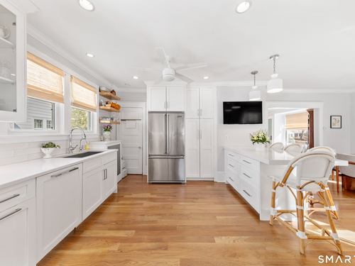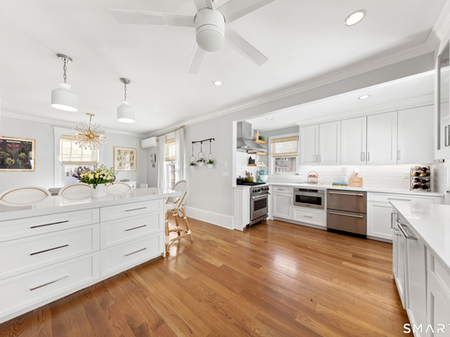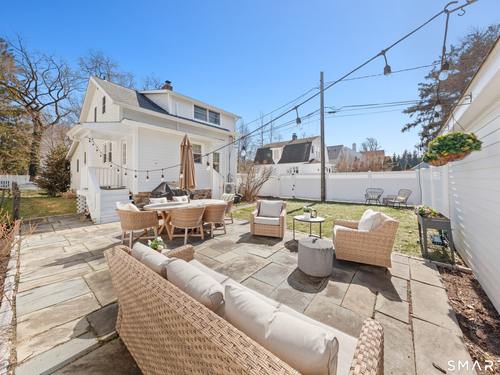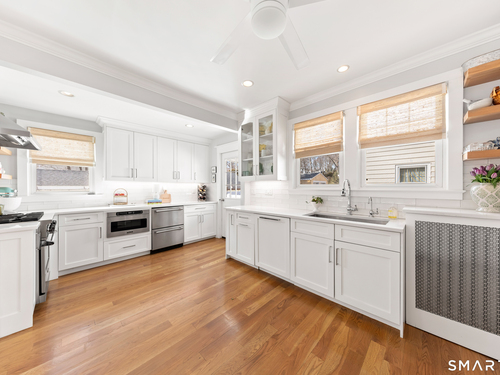 Sun-filled, Beachy Colonial ideally located beside a coveted private cul-de-sac just moments from the Darien train & Darien Commons. Thoughtfully updated with numerous improvements and upgrades, including a stylish, top-of-the-line eat-in kitchen designed for both everyday living and effortless entertaining.The open, flexible floor plan offers the rare option of a primary suite on either the main level or the second floor. Four bedrooms and two full baths provide comfortable living, complemented by a formal living room and a bright, elevated office/playroom - perfect as a work-from-home space or Peloton room - set among the treetops with beautiful views. Outside, enjoy a fully fenced yard and inviting patio ideal for gatherings, outdoor dining & relaxed afternoons. The charming private court is known for its welcoming sense of community, hosting block parties and cozy fireside evenings. Enjoy exceptional walkability to the train, restaurants, beaches & town. Located in the award-winning Blue Ribbon Hindley School district. Additional features include a basement with new French drains and sump pump.