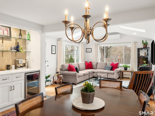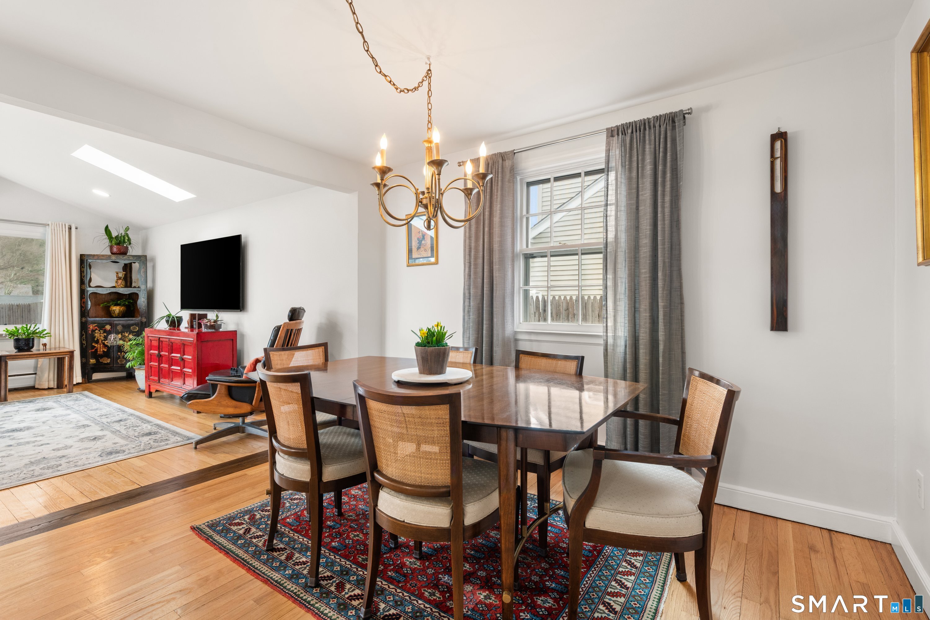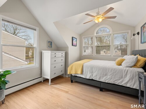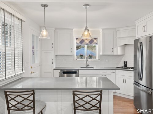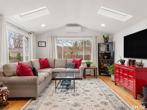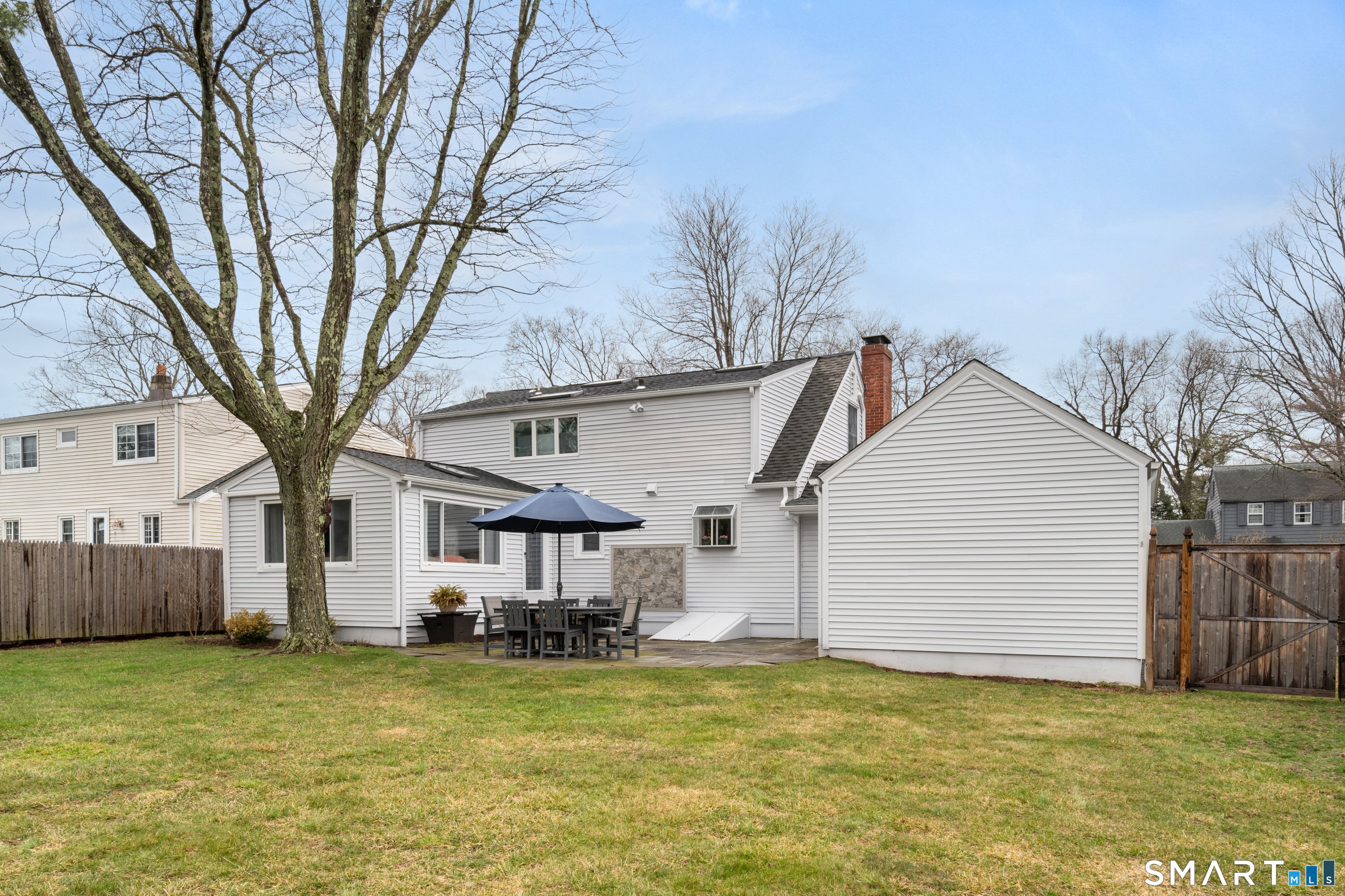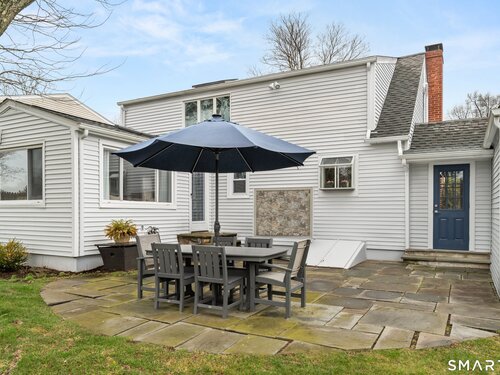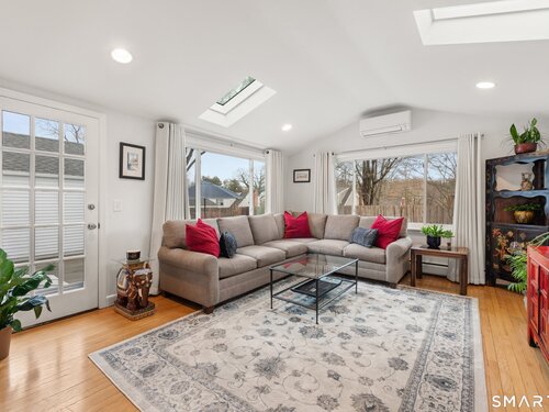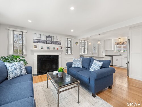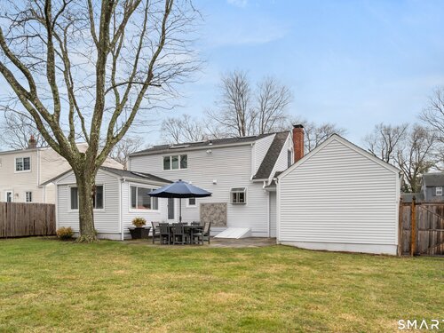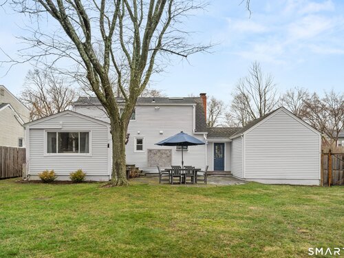 A Westport classic cape, at an attractive price! Blending timeless charm with modern enhancements, this home is truly move-in ready while still offering room for your personal touch. Inside, the main level features an open kitchen with breakfast bar that opens to a living room with wood-burning fireplace. The family room, with its vaulted ceiling and skylights, opens directly to a private, fully fenced yard with a stone patio-perfect for entertaining or quiet relaxation. Adjacent to the family room is a flexible space with a dry bar, ideal for a formal dining area or a home office. A bedroom and full bath on the main floor offer a private guest suite or the option for a main-floor primary bedroom. Upstairs, you'll find two additional bedrooms including the primary bedroom and full bath. The spacious primary bedroom is a true retreat, designed with both comfort and style in mind. Sunlight streams through large windows, creating a bright and airy atmosphere that invites you to relax and unwind. The lower level offers finished bonus space ideal for a play/rec room or home office, along a with a laundry area and storage space. Additional perks include sewer availability on the street, and an approved variance for a two-car garage. Recent updates include a refreshed kitchen and primary bath, a new roof, furnace and beautifully updated landscaping. A complete list of improvements is available upon request. This home is a rare find in a thriving community with countless amenities!