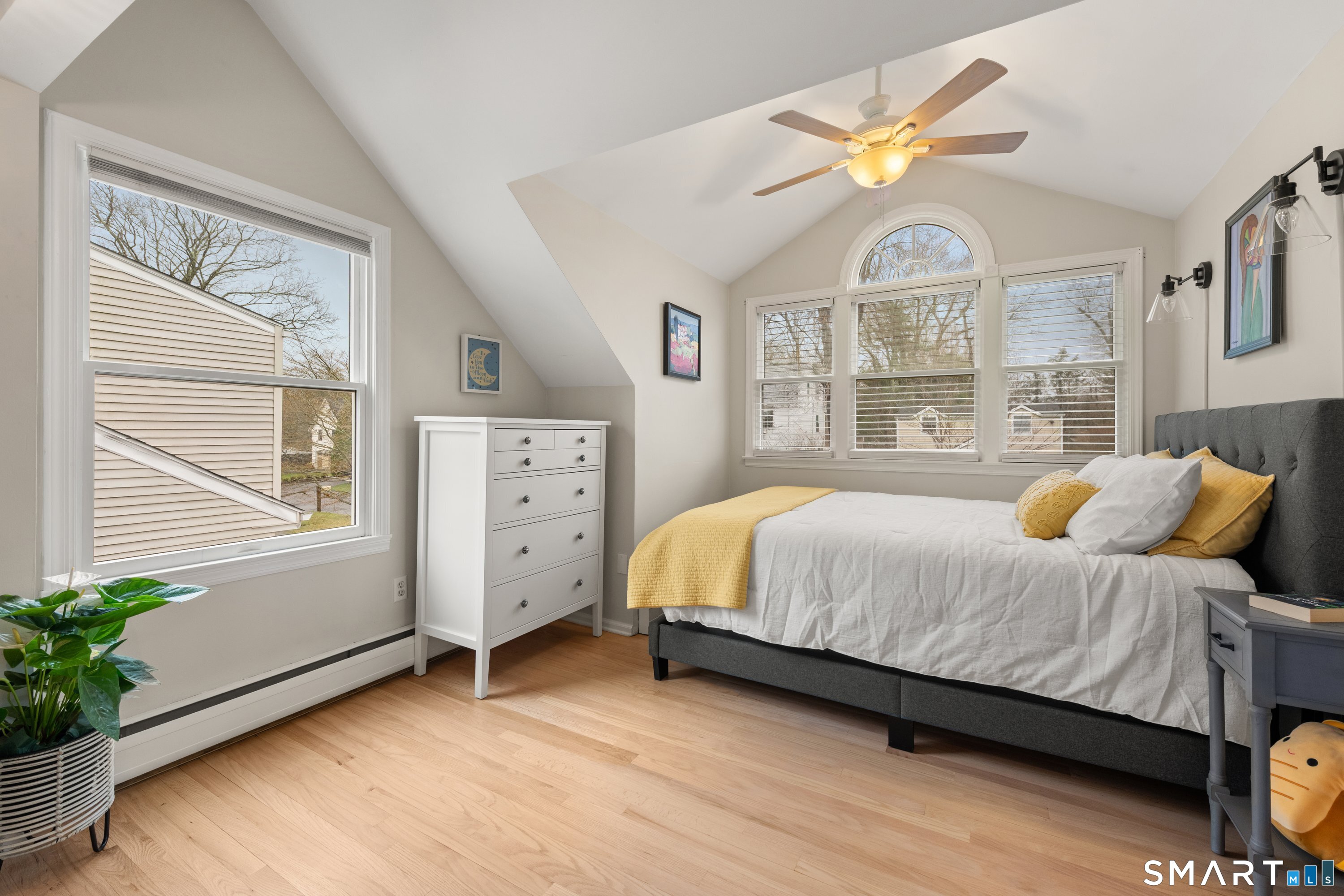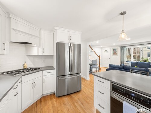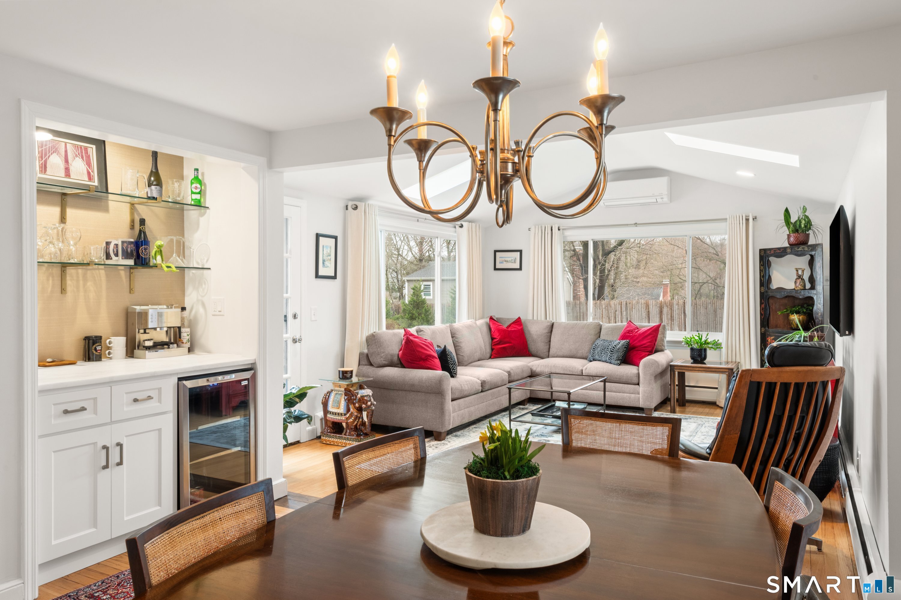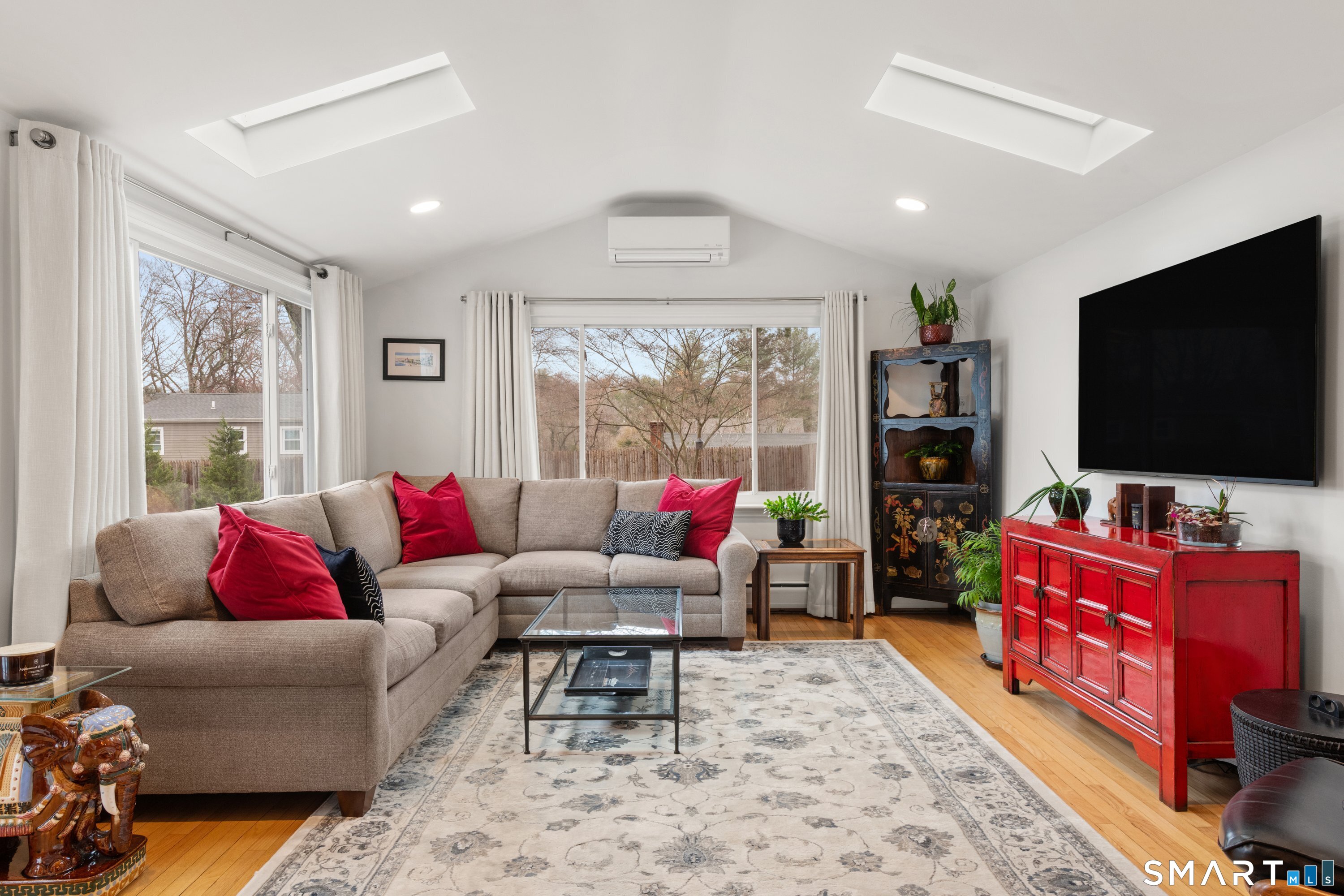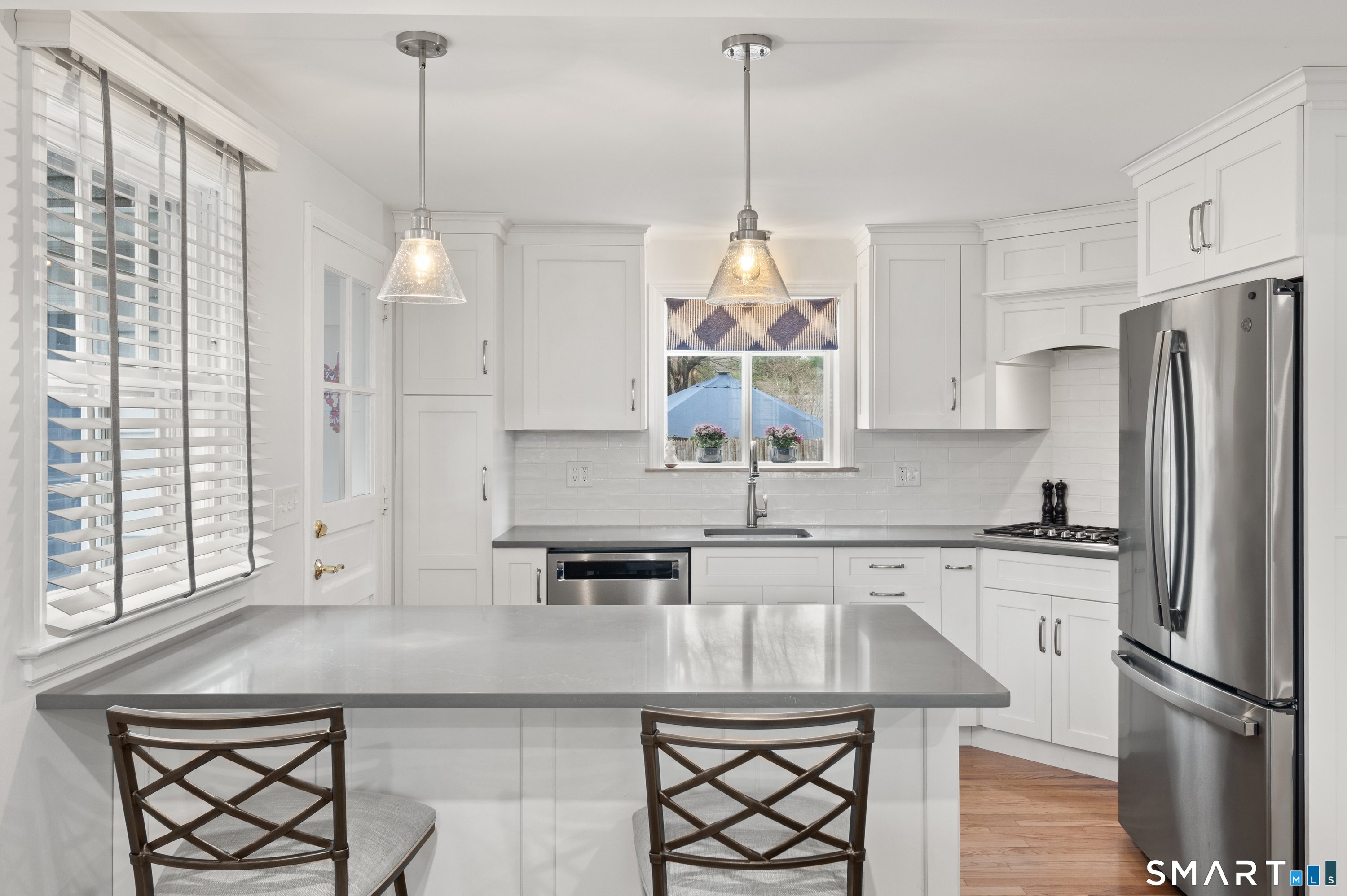 A Westport classic cape, at an attractive price! Blending timeless charm with modern enhancements, this home is truly move-in ready while still offering room for your personal touch. Inside, the main level features an open kitchen with breakfast bar that opens to a living room with wood-burning fireplace. The family room, with its vaulted ceiling and skylights, opens directly to a private, fully fenced yard with a stone patio-perfect for entertaining or quiet relaxation. Adjacent to the family room is a flexible space with a dry bar, ideal for a formal dining area or a home office. A bedroom and full bath on the main floor offer a private guest suite or the option for a main-floor primary bedroom. Upstairs, you'll find two additional bedrooms including the primary bedroom and full bath. The spacious primary bedroom is a true retreat, designed with both comfort and style in mind. Sunlight streams through large windows, creating a bright and airy atmosphere that invites you to relax and unwind. The lower level offers finished bonus space ideal for a play/rec room or home office, along a with a laundry area and storage space. Additional perks include sewer availability on the street, and an approved variance for a two-car garage. Recent updates include a refreshed kitchen and primary bath, a new roof, furnace and beautifully updated landscaping. A complete list of improvements is available upon request. This home is a rare find in a thriving community with countless amenities!