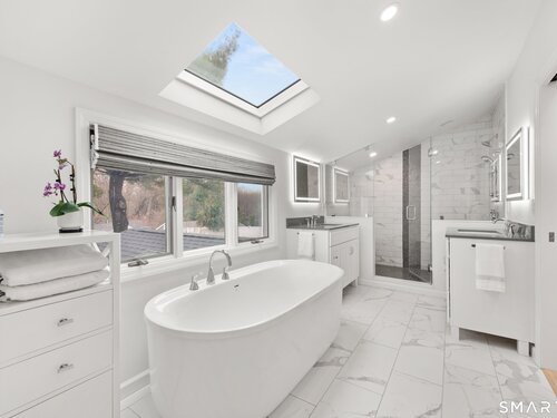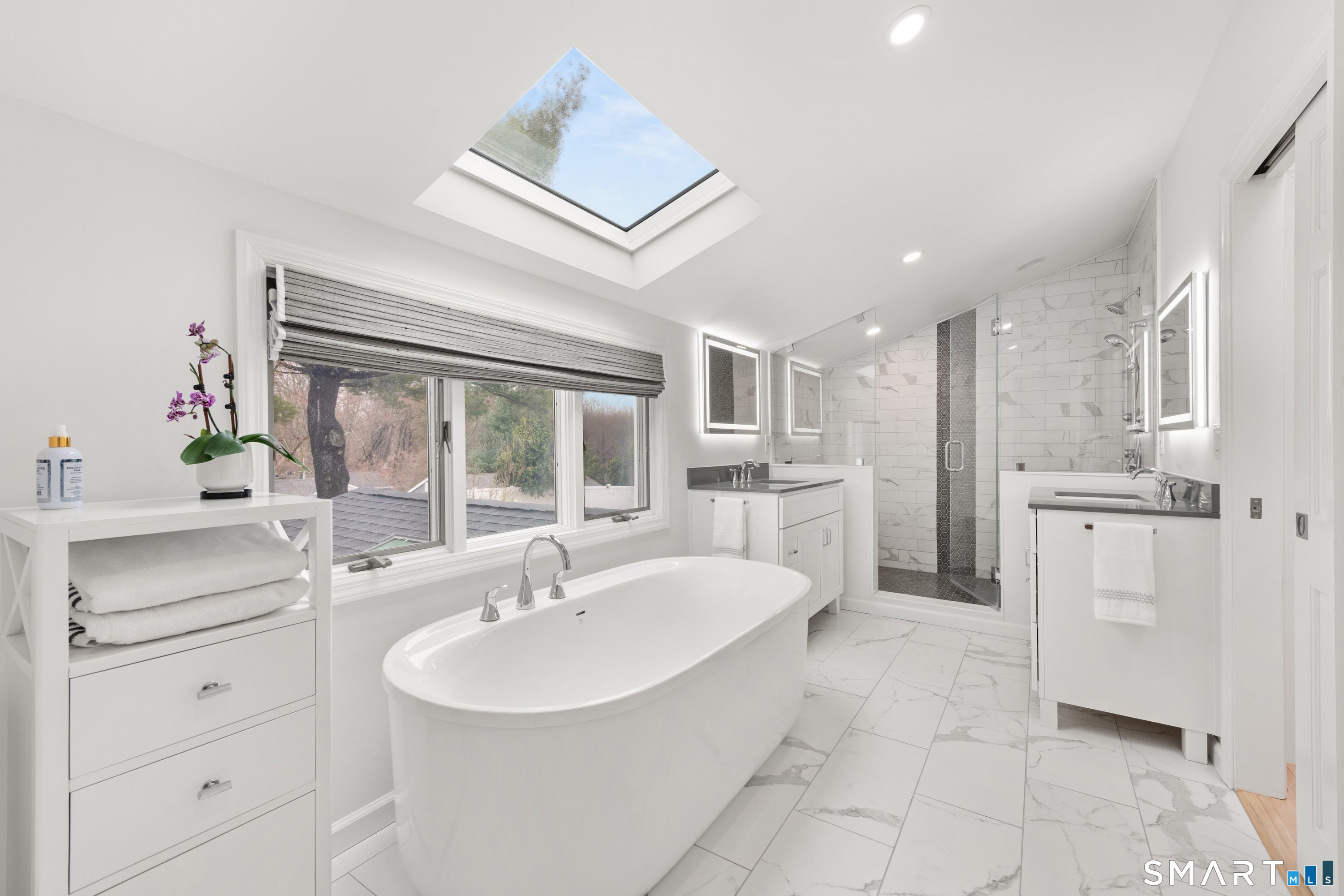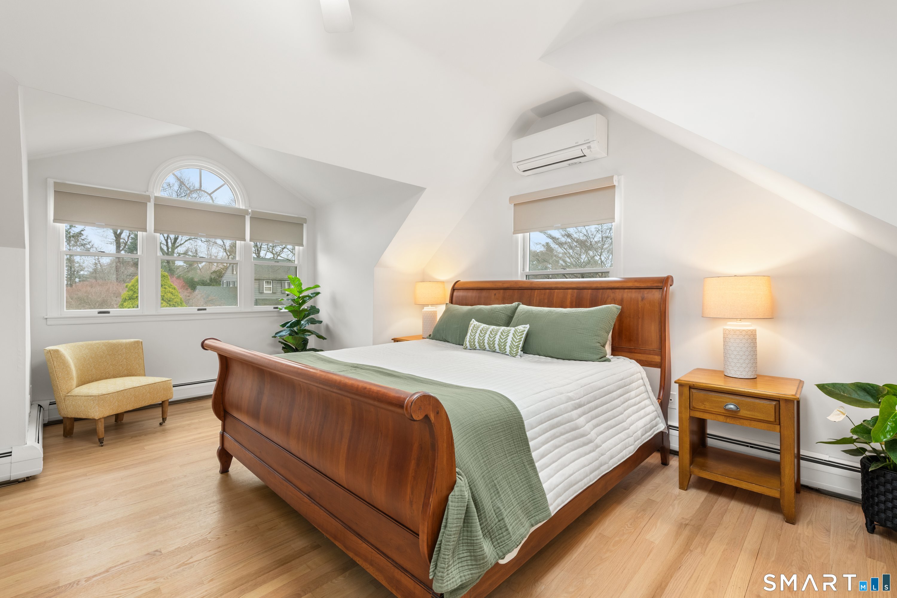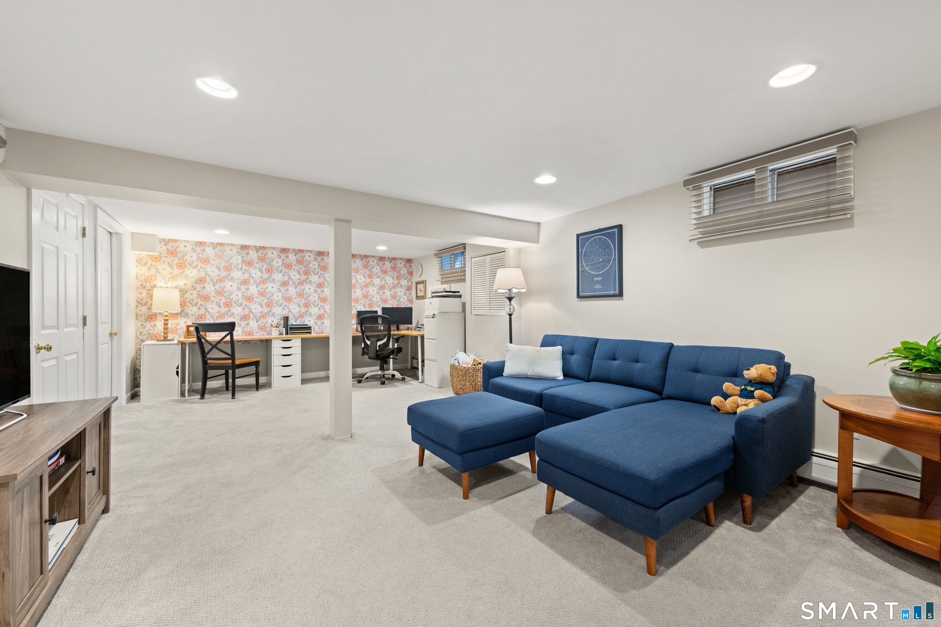A Westport classic cape, at an attractive price! Blending timeless charm with modern enhancements, this home is truly move-in ready while still offering room for your personal touch. Inside, the main level features an open kitchen with breakfast bar that opens to a living room with wood-burning fireplace. The family room, with its vaulted ceiling and skylights, opens directly to a private, fully fenced yard with a stone patio-perfect for entertaining or quiet relaxation. Adjacent to the family room is a flexible space with a dry bar, ideal for a formal dining area or a home office. A bedroom and full bath on the main floor offer a private guest suite or the option for a main-floor primary bedroom. Upstairs, you'll find two additional bedrooms including the primary bedroom and full bath. The spacious primary bedroom is a true retreat, designed with both comfort and style in mind. Sunlight streams through large windows, creating a bright and airy atmosphere that invites you to relax and unwind. The lower level offers finished bonus space ideal for a play/rec room or home office, along a with a laundry area and storage space. Additional perks include sewer availability on the street, and an approved variance for a two-car garage. Recent updates include a refreshed kitchen and primary bath, a new roof, furnace and beautifully updated landscaping. A complete list of improvements is available upon request. This home is a rare find in a thriving community with countless amenities!