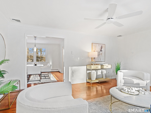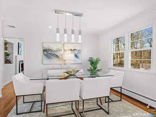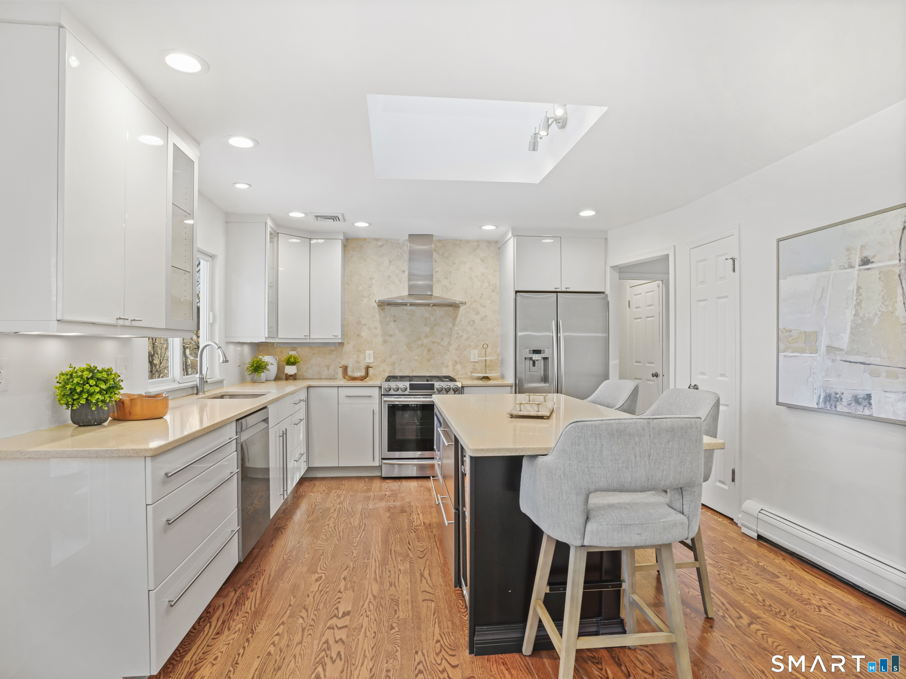 Welcome to Lockwood Road in Fairfield's highly desirable Stratfield neighborhood. This bright and inviting home showcases beautiful hardwood floors throughout and an open-concept layout ideal for today's lifestyle. Upon entry, you're greeted by a spacious living room filled with abundant natural light and gleaming hardwood floors. The stylishly renovated kitchen features an oversized island with counter seating, quartz countertops, stainless steel appliances, and a skylight that enhances the airy dining area. Just off the kitchen, the comfortable family room offers a cozy gas fireplace - perfect for relaxing or entertaining. The primary suite is privately situated at the end of the hall and includes a renovated en-suite bath and two sets of closets. Three additional generously sized bedrooms with ample closet space and an updated full bath complete the main level. The expansive walk-out lower level (approximately 2,000 sq ft) provides laundry, abundant storage, and flexible space for future finishing potential. Outside, the fenced backyard offers a private patio and lovely gardens - ideal for outdoor gatherings. A two-car garage provides plenty of parking and additional storage. Conveniently located near shopping, schools, the library, Lake Mohegan, the Merritt Parkway, and I-95, this home offers both comfort and accessibility. Enjoy all the wonderful amenities the town of Fairfield has to offer!