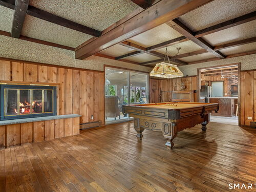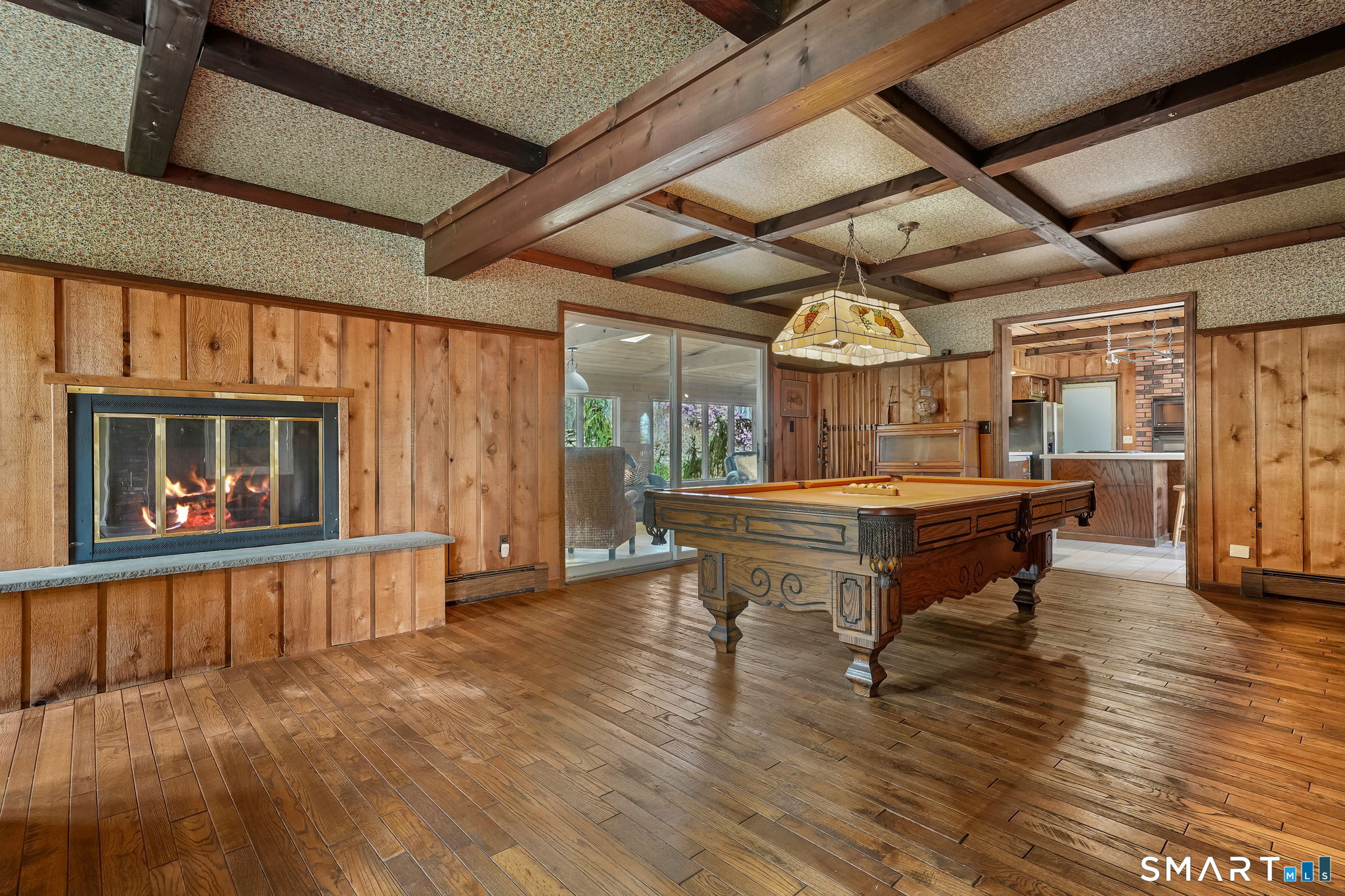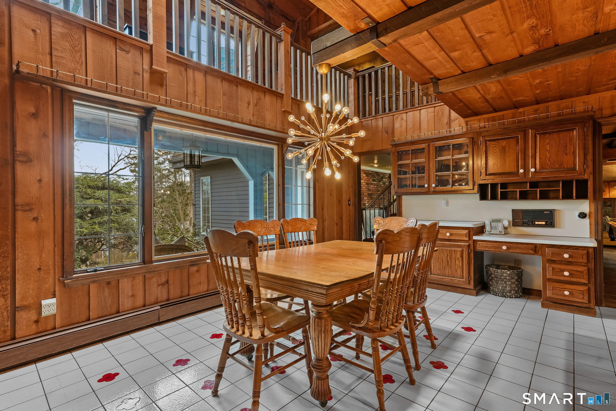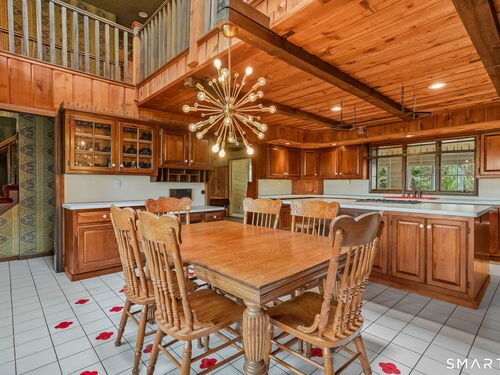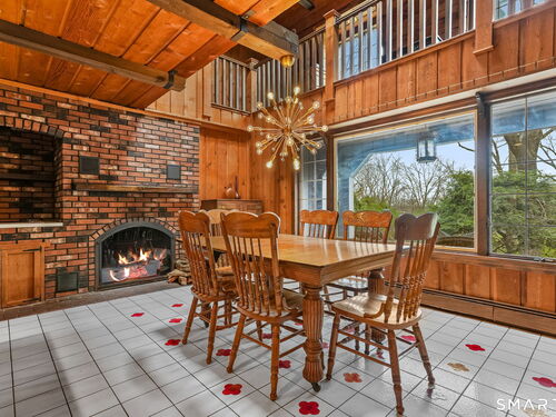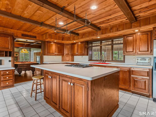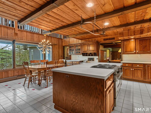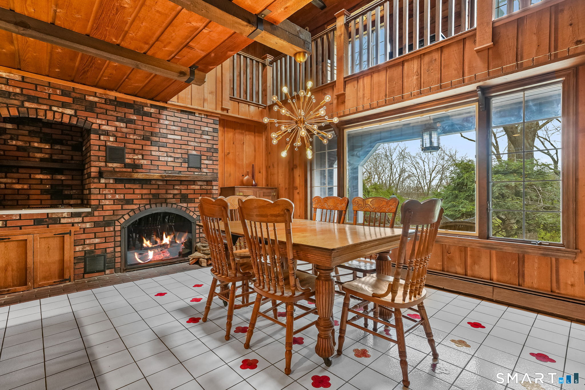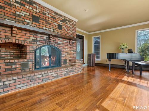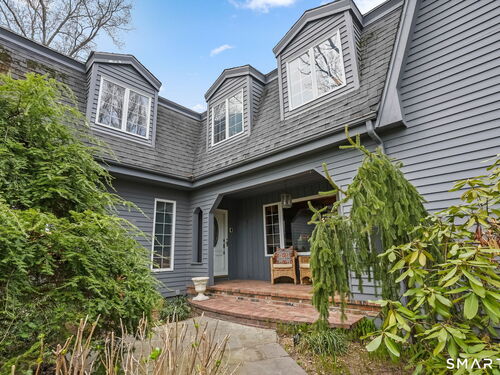Set back from the street and introduced by a brick entry with space to sit and unwind, this expansive, first-time-offered Colonial reflects a level of craftsmanship and scale rarely found. Built by its original owners, the home offers over 5,000 square feet with a layout suited for both everyday living and entertaining. Inside, hardwood floors, Andersen windows and doors, and a well-proportioned layout connect the formal and informal spaces. A central foyer leads to a living room with a wood-burning fireplace and a dining room with built-ins. The oversized eat-in kitchen features vaulted, wood-beamed ceilings, a brick fireplace, center island, and a generous dining area with an interior balcony above. The adjacent sunroom, with skylights and exposed beams, opens through sliding doors to a deck overlooking the backyard with an above-ground pool and shed. The family room, anchored by a gas fireplace and coffered wood-beamed ceiling, offers a flexible space for gathering or recreation. Upstairs, you'll find a primary suite with en-suite bath, three additional bedrooms with a renovated hall bath, and a separate private suite on the other side of the home with built-ins, a walk-in closet, and a full bath with heated floors. A vaulted upper landing with cedar detailing and an interior overlook into the kitchen adds architectural interest and a sense of openness. A rare opportunity to personalize a home of this scale and quality, offered for the very first time.