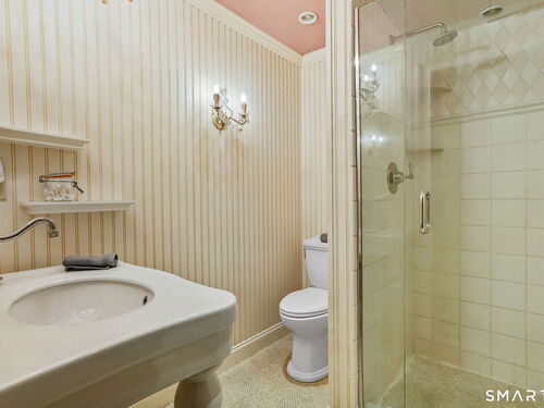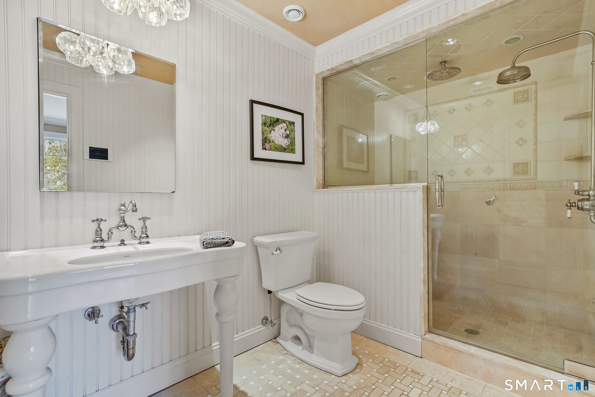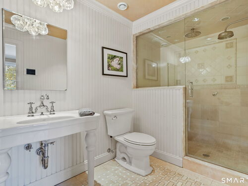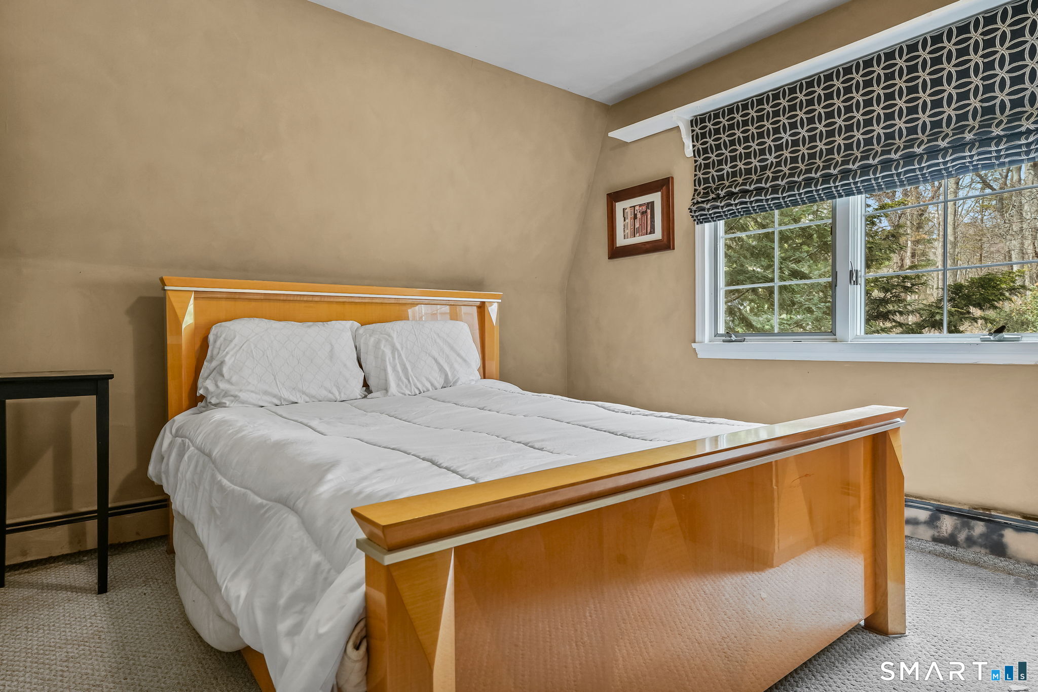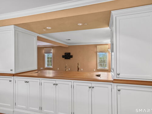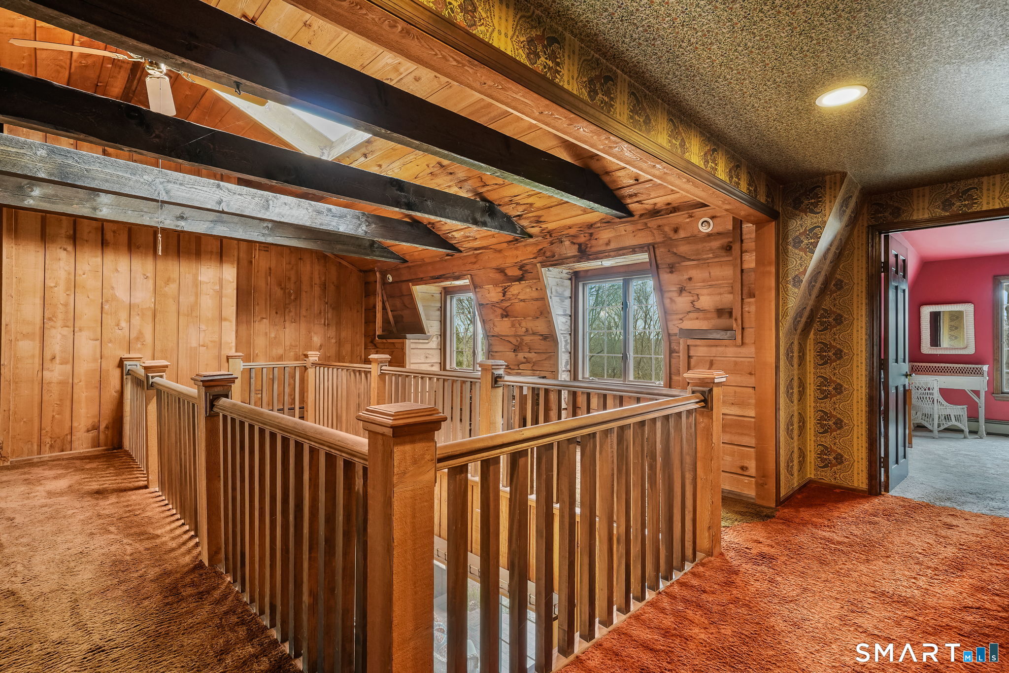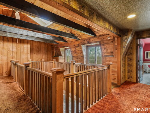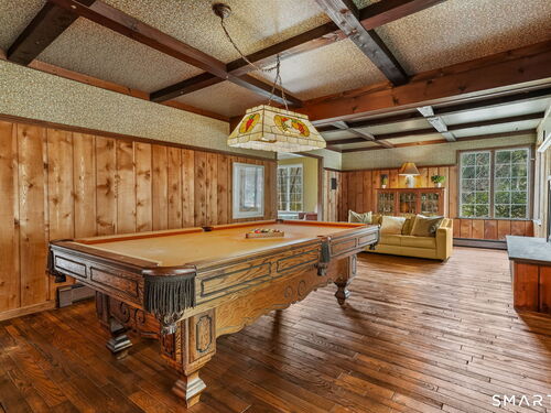 Set back from the street and introduced by a brick entry with space to sit and unwind, this expansive, first-time-offered Colonial reflects a level of craftsmanship and scale rarely found. Built by its original owners, the home offers over 5,000 square feet with a layout suited for both everyday living and entertaining. Inside, hardwood floors, Andersen windows and doors, and a well-proportioned layout connect the formal and informal spaces. A central foyer leads to a living room with a wood-burning fireplace and a dining room with built-ins. The oversized eat-in kitchen features vaulted, wood-beamed ceilings, a brick fireplace, center island, and a generous dining area with an interior balcony above. The adjacent sunroom, with skylights and exposed beams, opens through sliding doors to a deck overlooking the backyard with an above-ground pool and shed. The family room, anchored by a gas fireplace and coffered wood-beamed ceiling, offers a flexible space for gathering or recreation. Upstairs, you'll find a primary suite with en-suite bath, three additional bedrooms with a renovated hall bath, and a separate private suite on the other side of the home with built-ins, a walk-in closet, and a full bath with heated floors. A vaulted upper landing with cedar detailing and an interior overlook into the kitchen adds architectural interest and a sense of openness. A rare opportunity to personalize a home of this scale and quality, offered for the very first time.