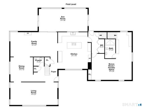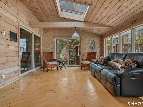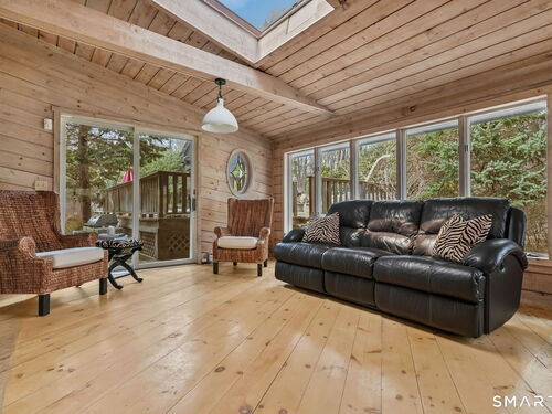 Sun Room (Main Level)Skylight, Beams, Sliders, Hardwood Floor
