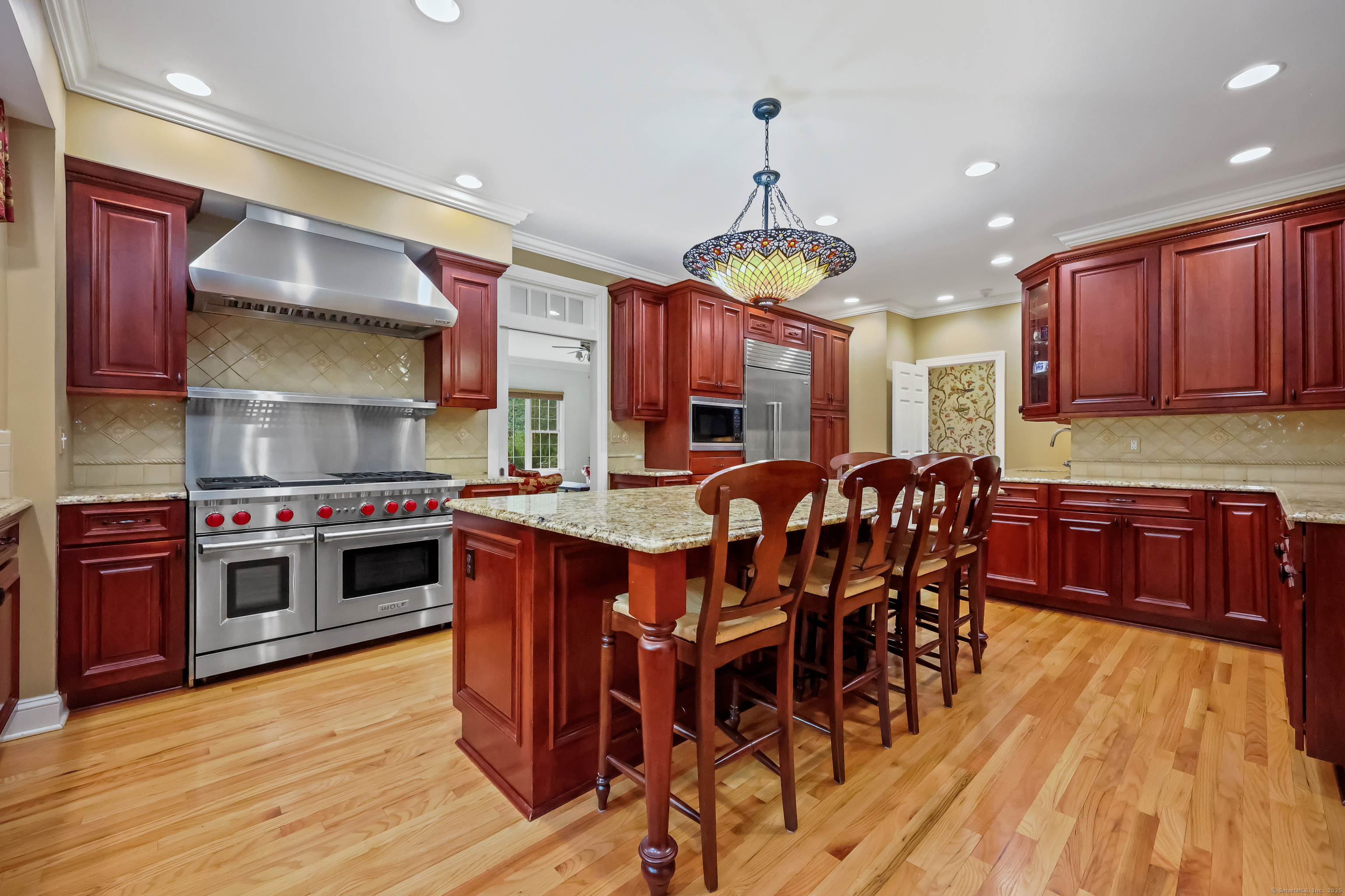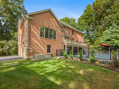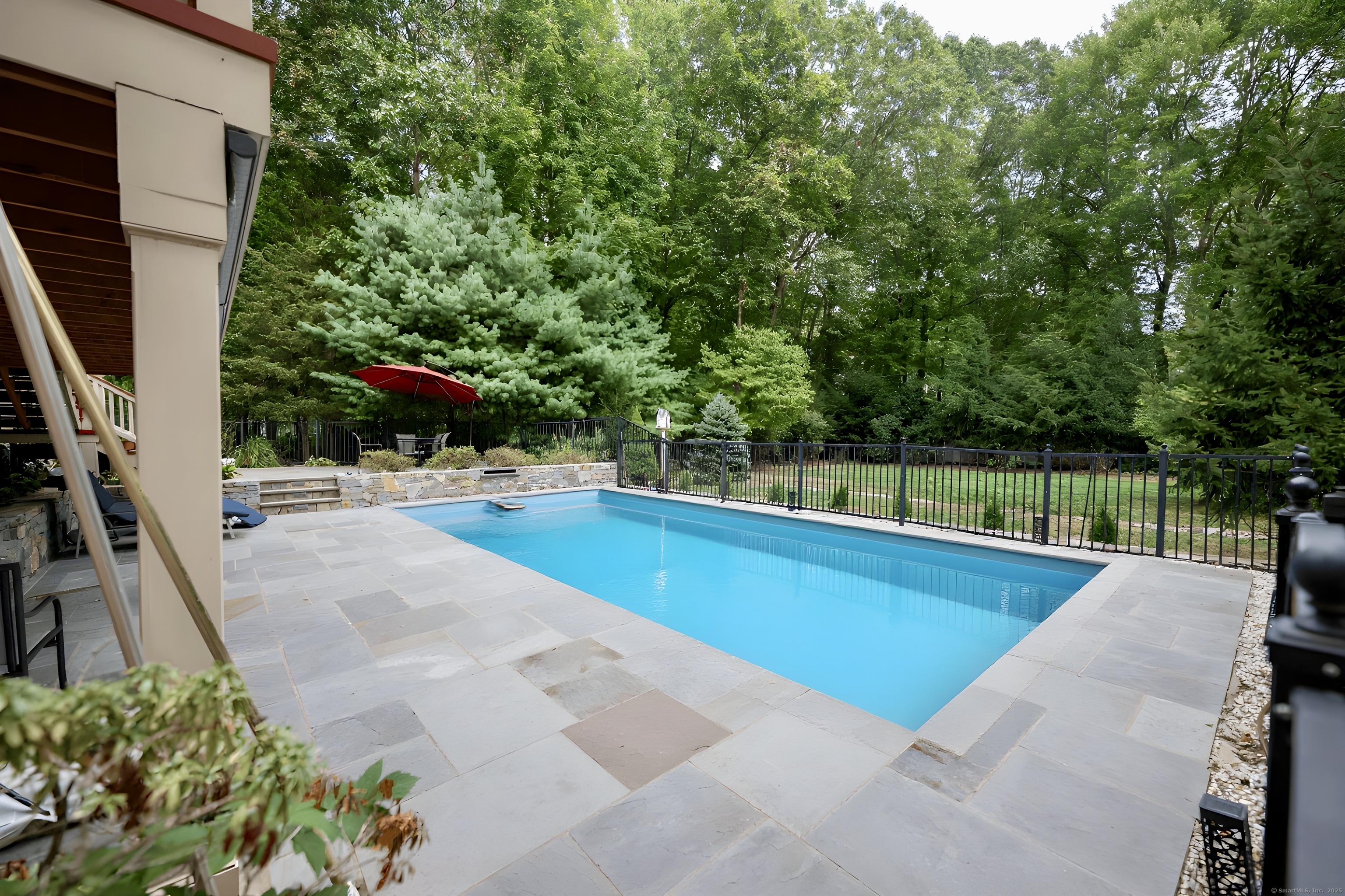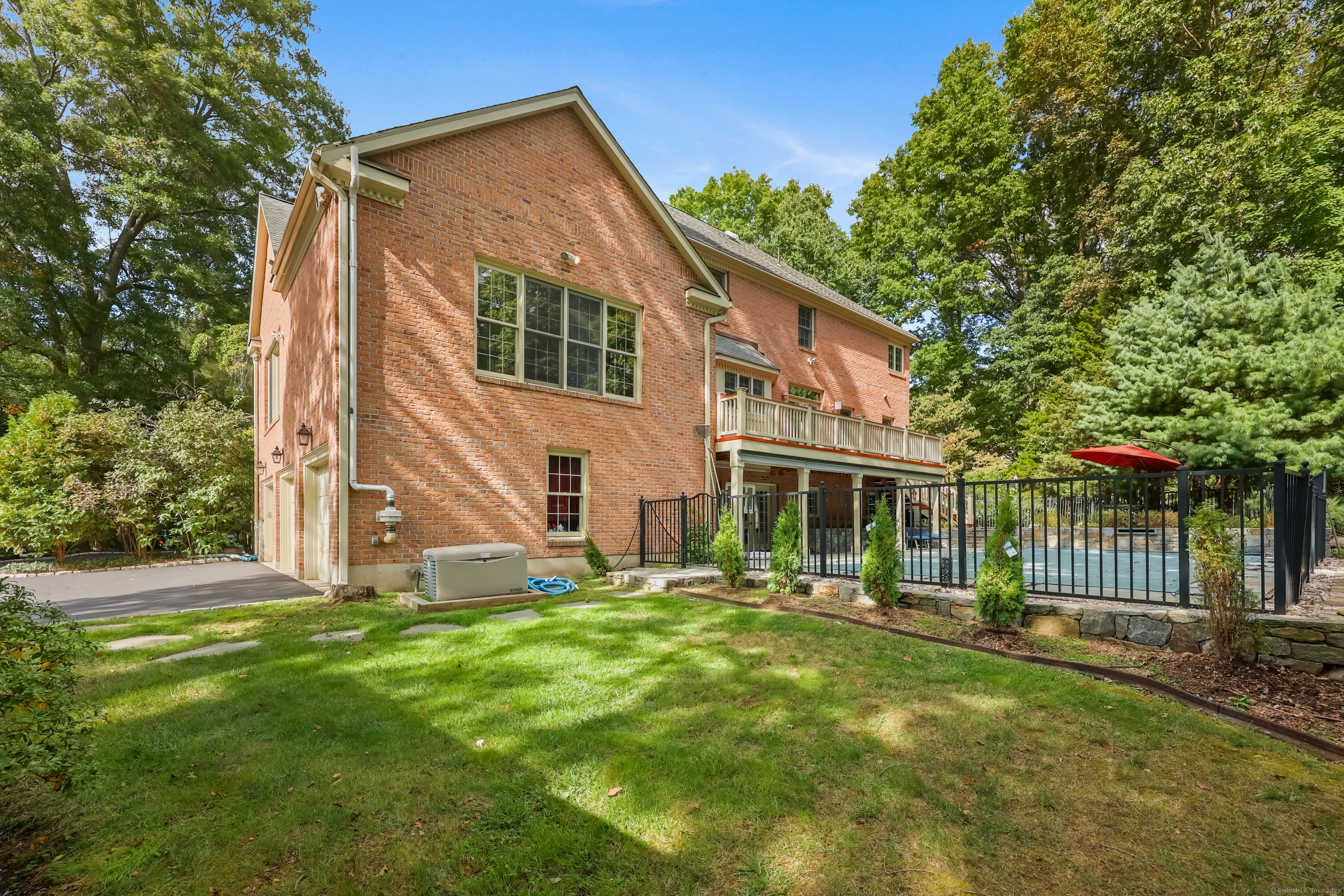 254 Sherwood Farm Road, tucked away at the end of a cul-de-sac in the desirable lower Greenfield Hill section of Fairfield, this stately brick Colonial blends timeless curb appeal with a flexible floor plan and rare amenities. Mature plantings, stone walkways, and professional landscape lighting frame the home with elegance from the moment you arrive. Inside, the first level offers remarkable versatility with an en-suite bedroom featuring a walk-in closet, a dedicated office, a large chef's kitchen with an impressive Wolf and Sub-Zero appliance package, and dining and living rooms that soar with elevated ceiling heights, bringing light and luxury to the main living spaces. Upstairs, the well-proportioned primary suite is a retreat with dual walk-in closets and a spa-like bath. The oversized shower is outfitted as a steam shower-an ideal sauna alternative-while two additional bedrooms share a dual bath. The fully finished lower level serves as a true multi-generational apartment, complete with a full kitchen, laundry, and full bath, opening directly to the backyard stone patio, private yard, and in-ground pool with a built-in waterfall feature-ideal for entertaining or quiet relaxation. Additional highlights include an oversized three-car garage, whole-house generator, advanced air-filtration HVAC system, and a private yet convenient Greenfield Hill location.This combination of style, flexibility, and amenities makes 254 Sherwood Farm Road a rare and exceptional property.