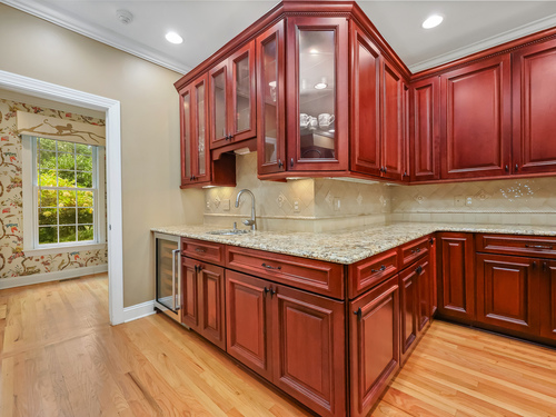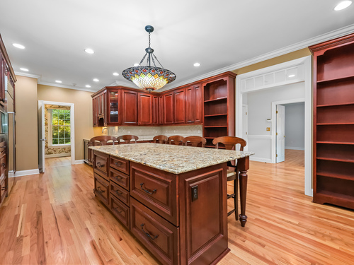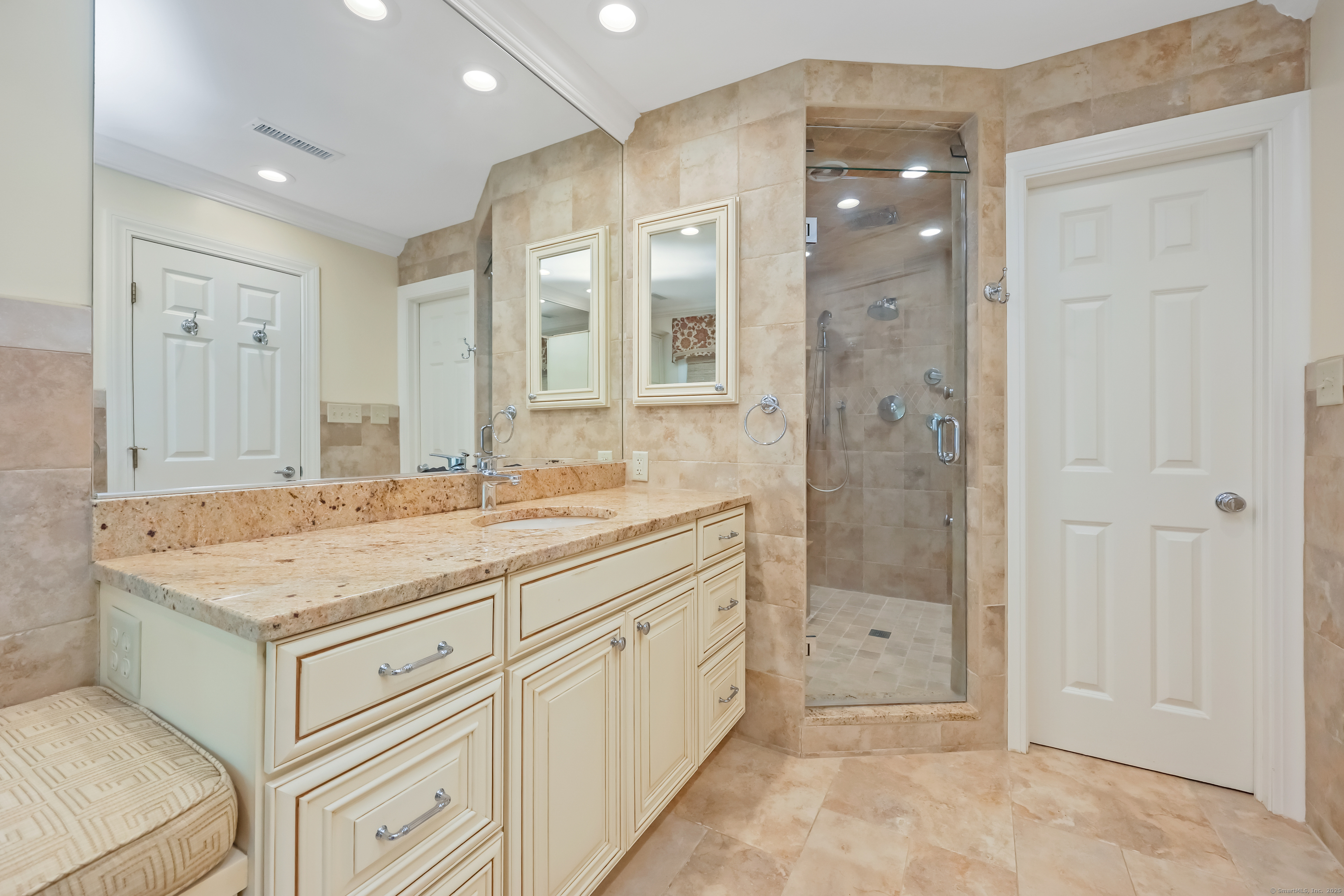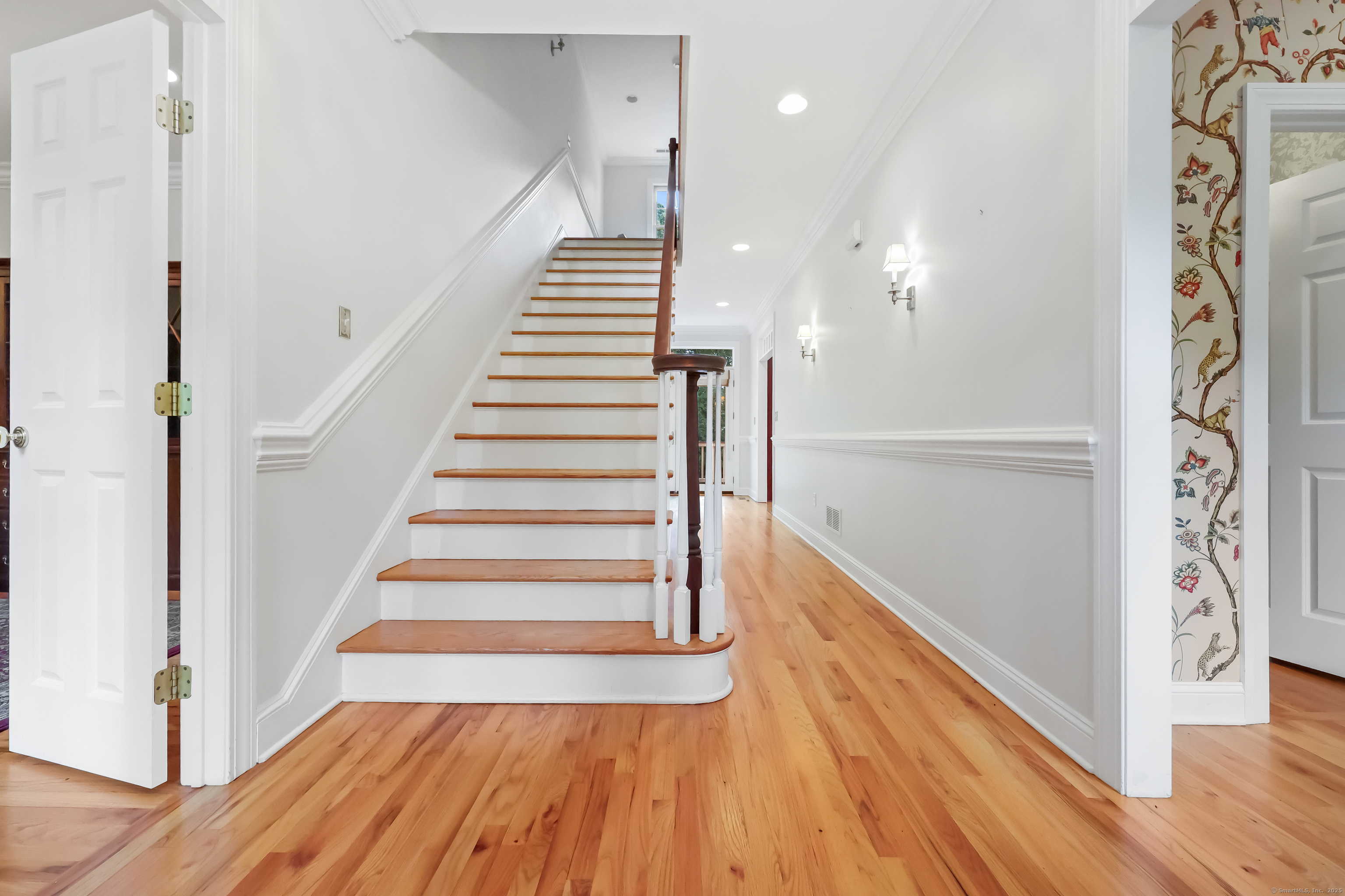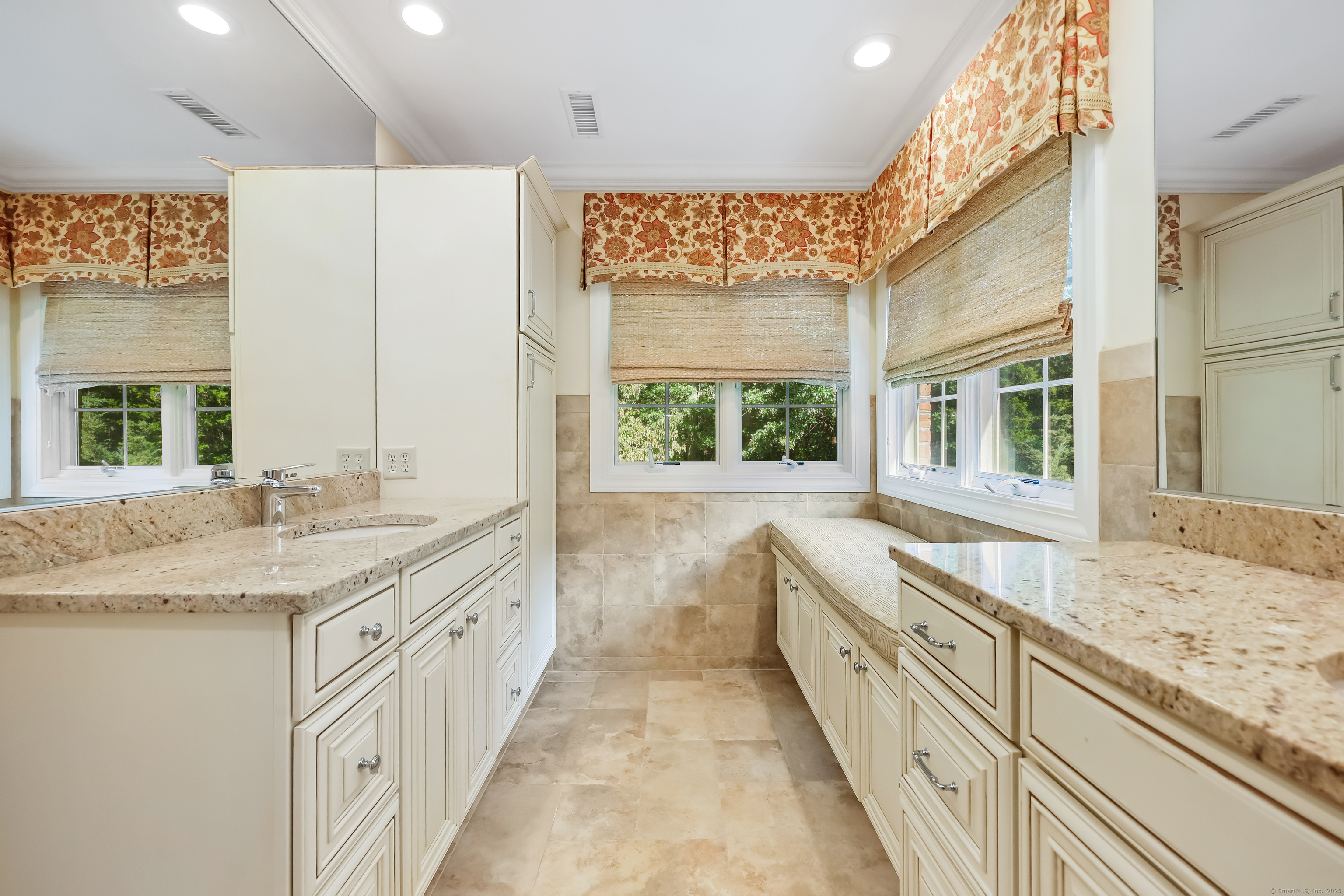 254 Sherwood Farm Road, tucked away at the end of a cul-de-sac in the desirable lower Greenfield Hill section of Fairfield, this stately brick Colonial blends timeless curb appeal with a flexible floor plan and rare amenities. Mature plantings, stone walkways, and professional landscape lighting frame the home with elegance from the moment you arrive. Inside, the first level offers remarkable versatility with an en-suite bedroom featuring a walk-in closet, a dedicated office, a large chef's kitchen with an impressive Wolf and Sub-Zero appliance package, and dining and living rooms that soar with elevated ceiling heights, bringing light and luxury to the main living spaces. Upstairs, the well-proportioned primary suite is a retreat with dual walk-in closets and a spa-like bath. The oversized shower is outfitted as a steam shower-an ideal sauna alternative-while two additional bedrooms share a dual bath. The fully finished lower level serves as a true multi-generational apartment, complete with a full kitchen, laundry, and full bath, opening directly to the backyard stone patio, private yard, and in-ground pool with a built-in waterfall feature-ideal for entertaining or quiet relaxation. Additional highlights include an oversized three-car garage, whole-house generator, advanced air-filtration HVAC system, and a private yet convenient Greenfield Hill location.This combination of style, flexibility, and amenities makes 254 Sherwood Farm Road a rare and exceptional property.