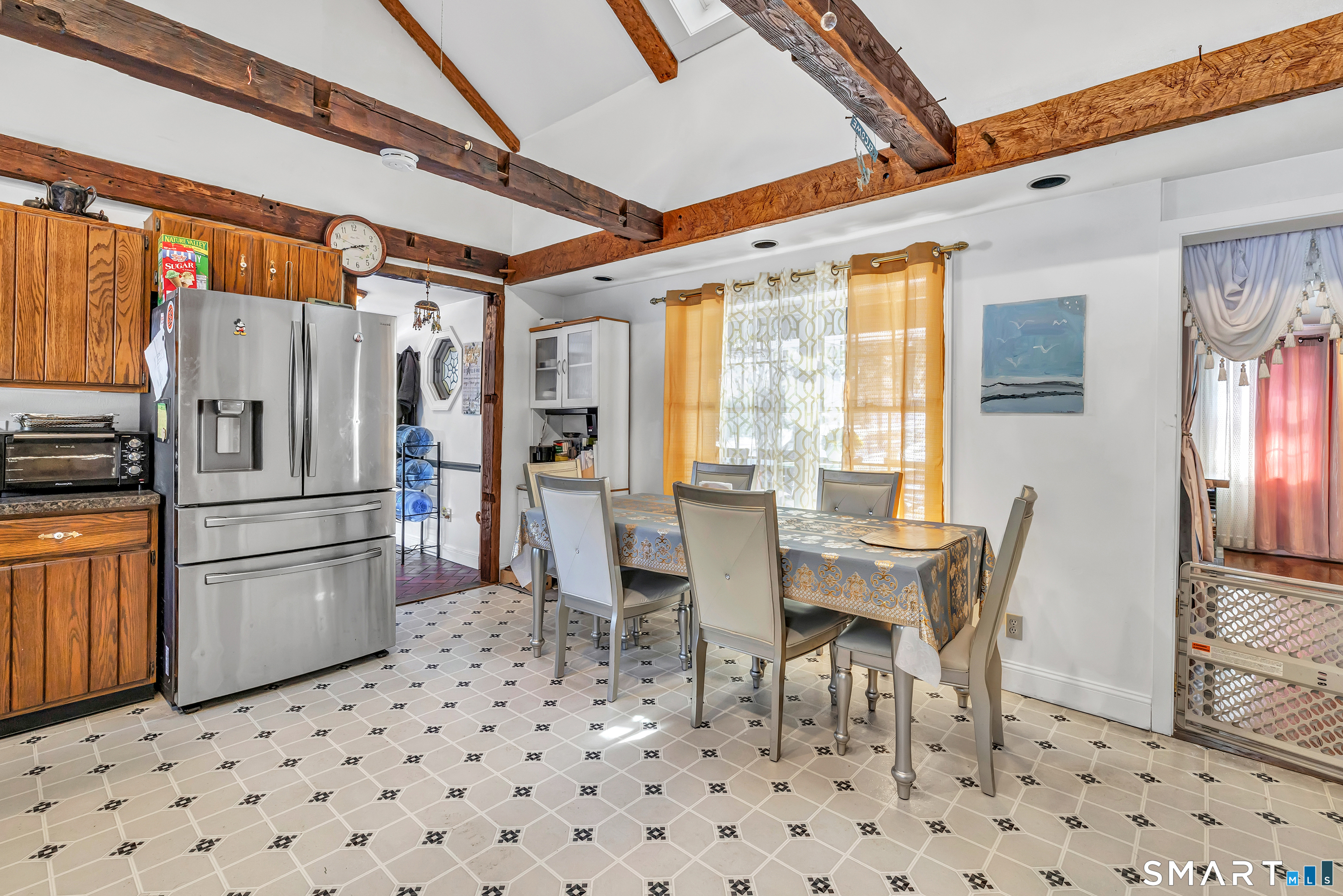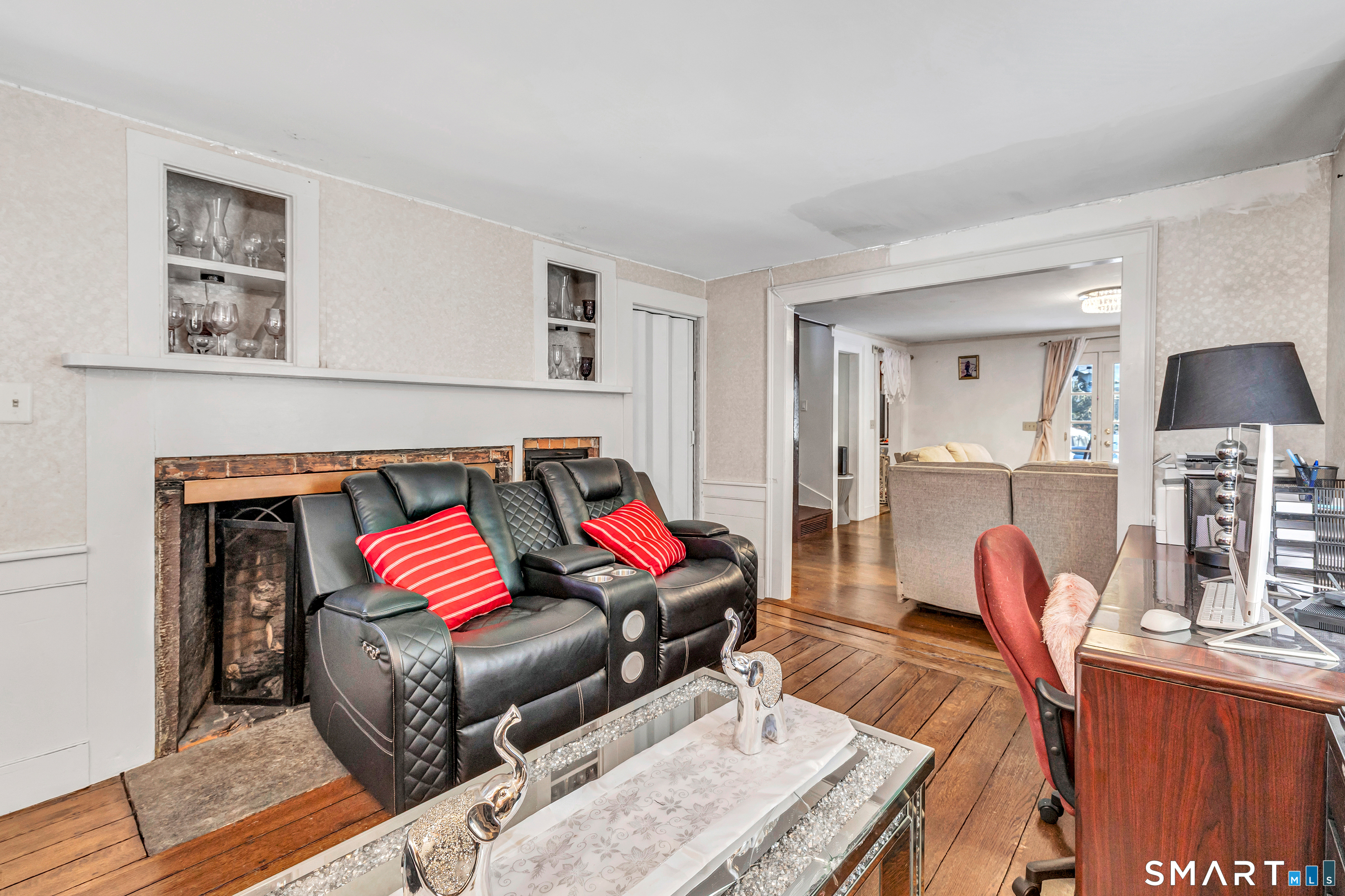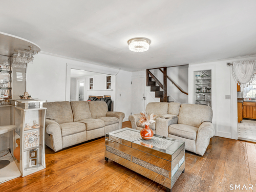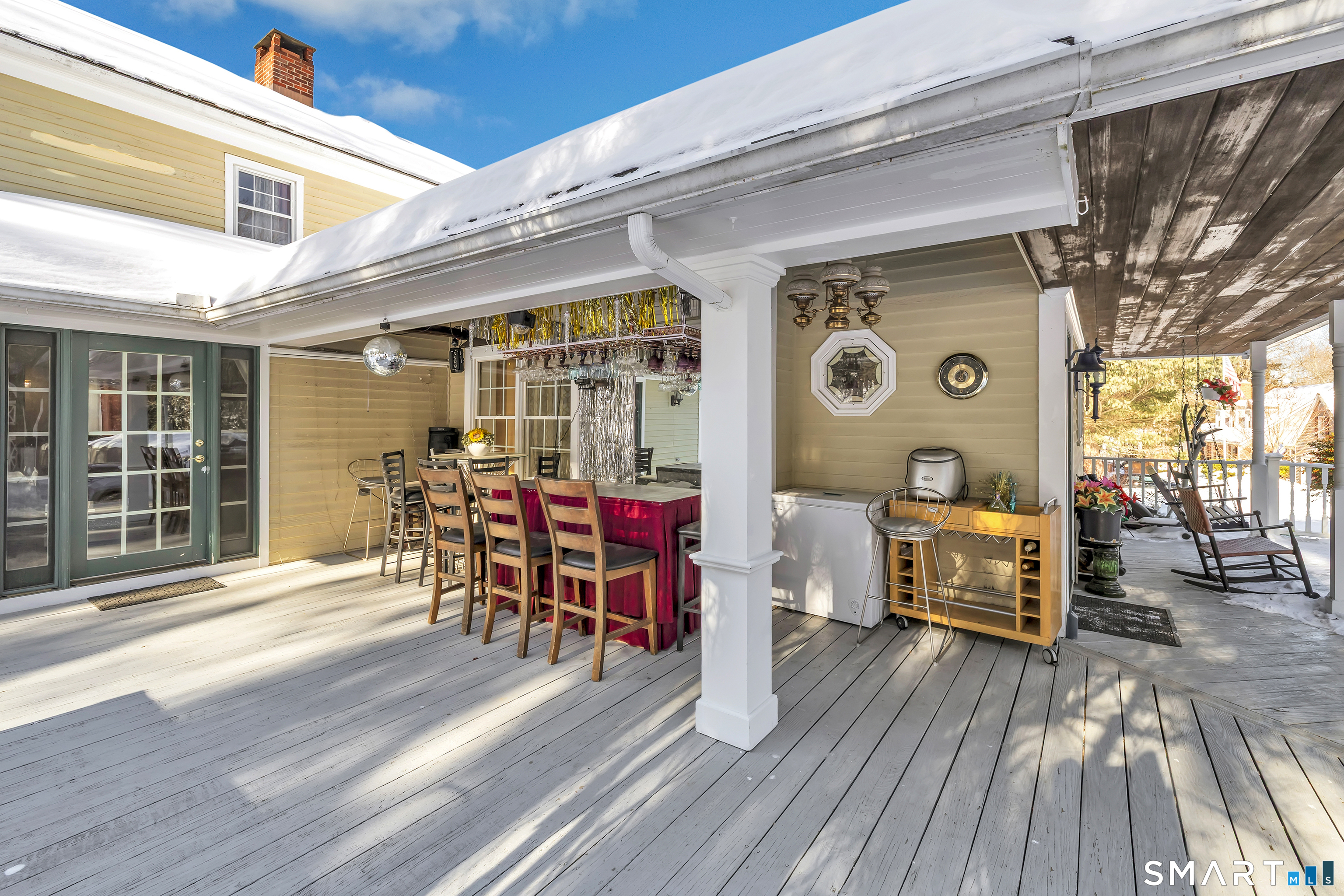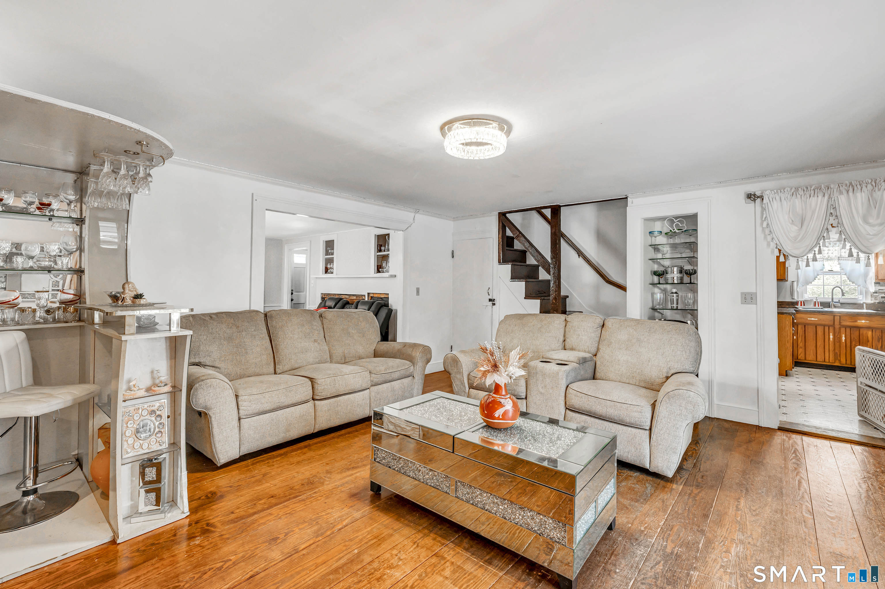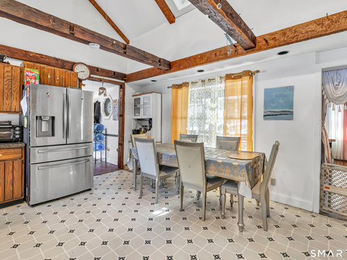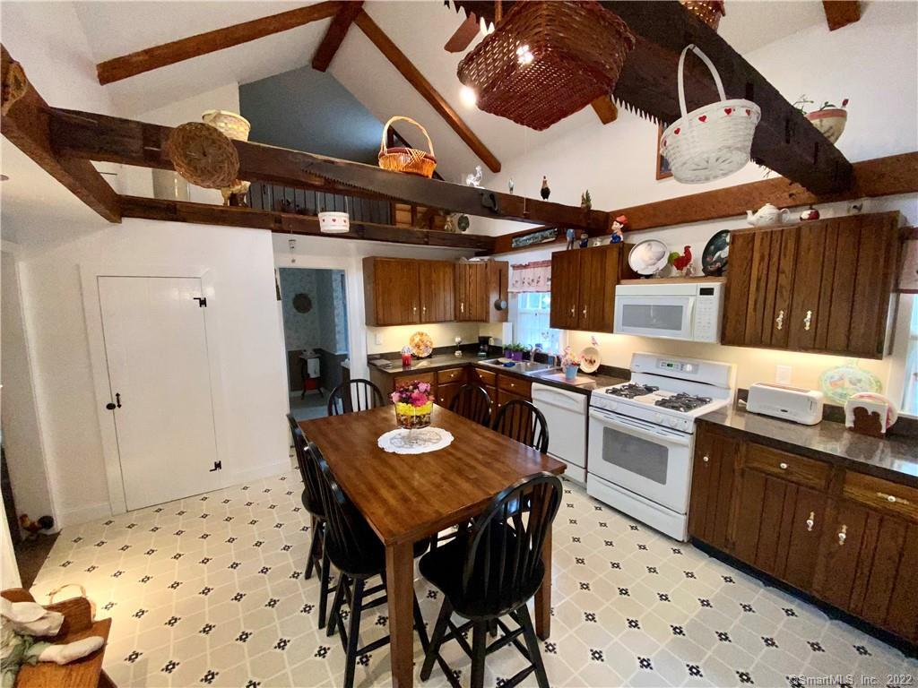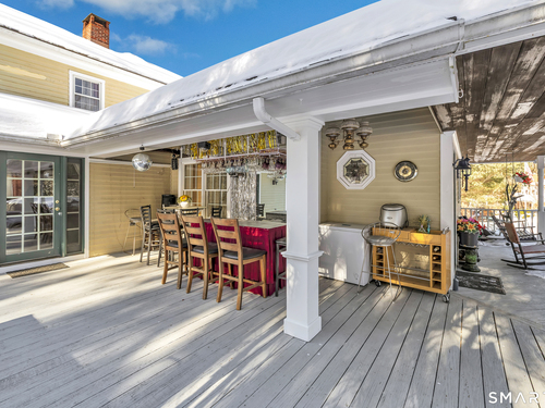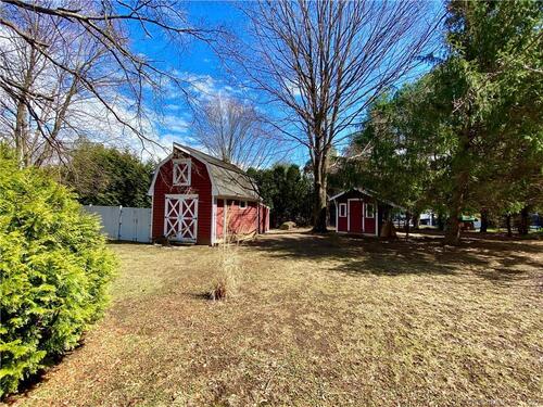 Experience the charm of this beautiful antique Colonial home located in Huntington at 256 Nichols Avenue, on a picturesque, park-like grounds, complete with a small barn, gardening shed, and elegant stonework. This residence combines classic historic features with modern updates, showcasing solid mechanics and evident pride of ownership. Original wide plank floors grace the living room, dining room, and lower-level bedroom, while exposed beams throughout the home highlight its timeless appeal. The warm, inviting country kitchen features a cathedral ceiling and a large skylight, flooding the space with natural light. Cozy fireplaces enhance both the living and dining rooms, one with a gas log and the other with a wood-burning stove insert. The primary bedroom on the main floor boasts a charming brick fireplace. The expansive, partially covered wrap-around porch offers an ideal spot for outdoor entertaining, and the backyard feels like a private park.