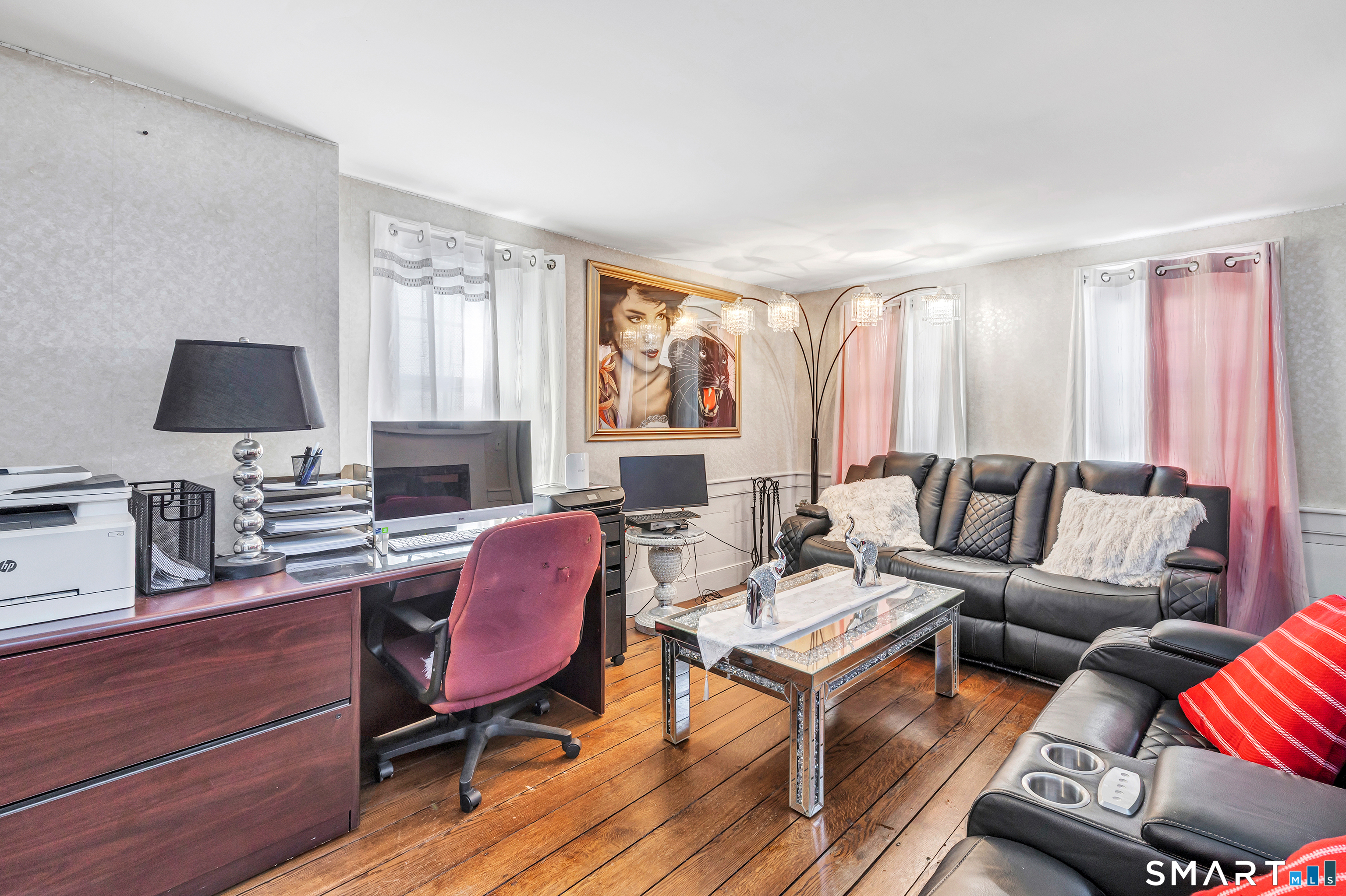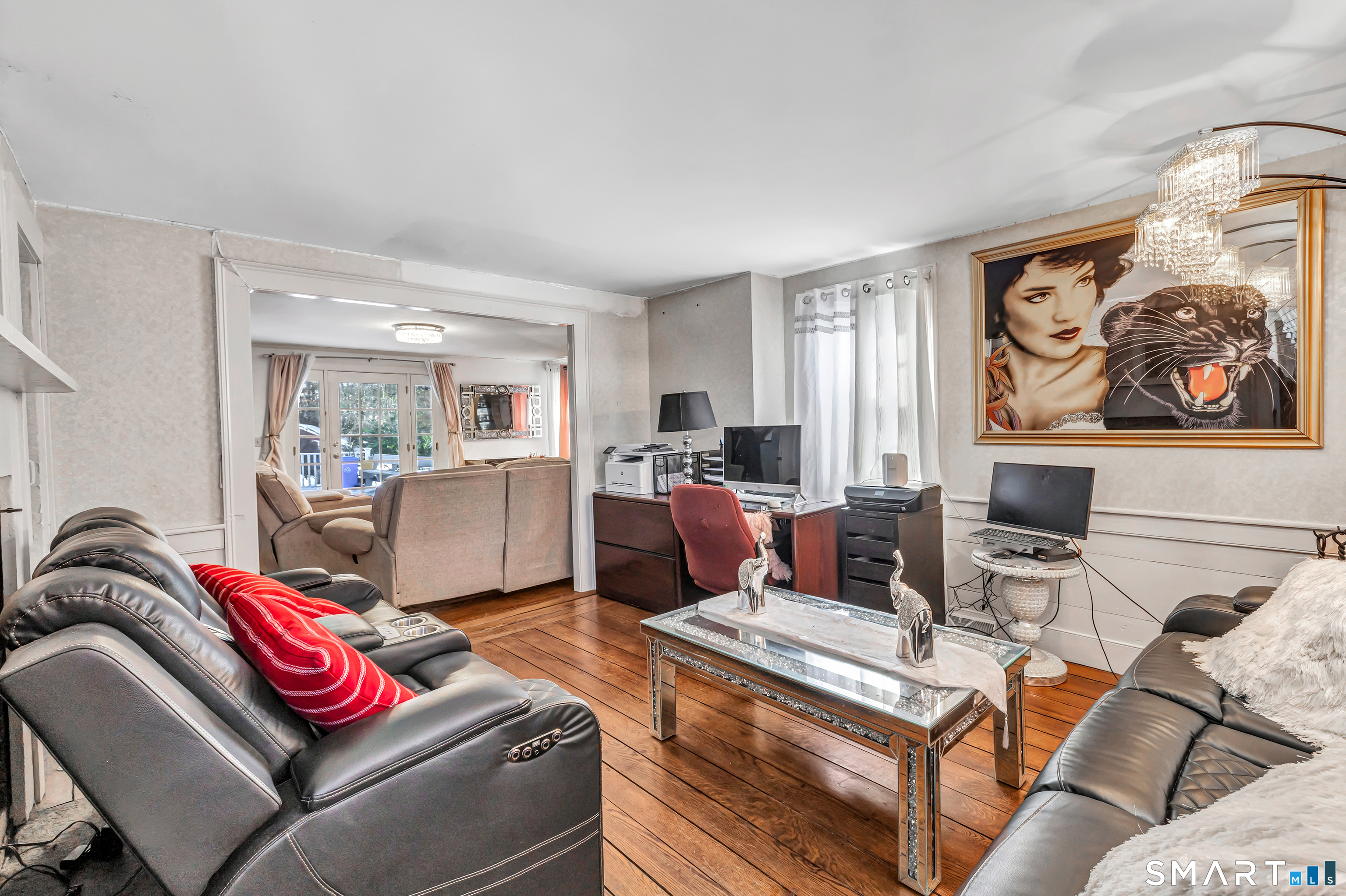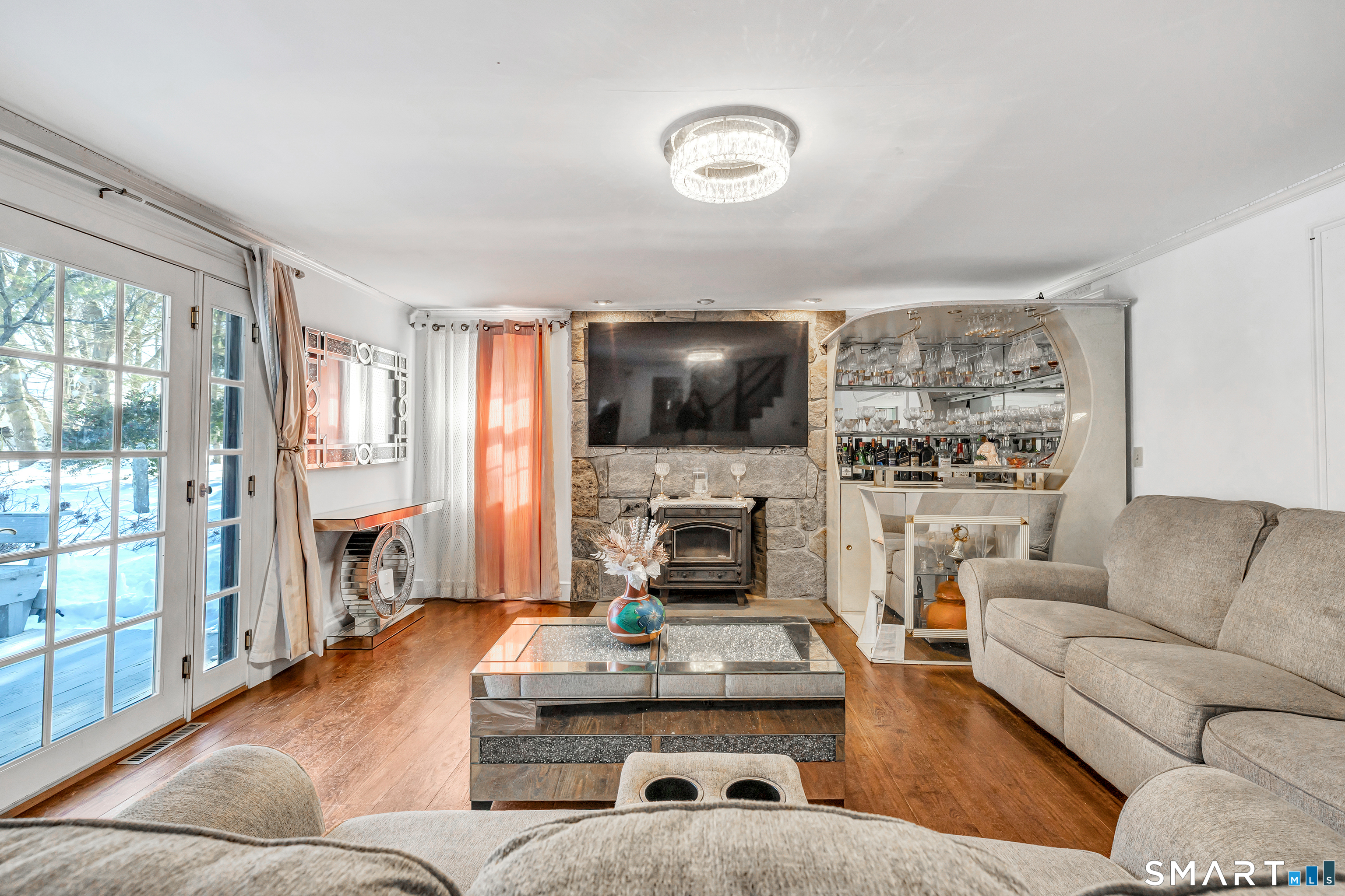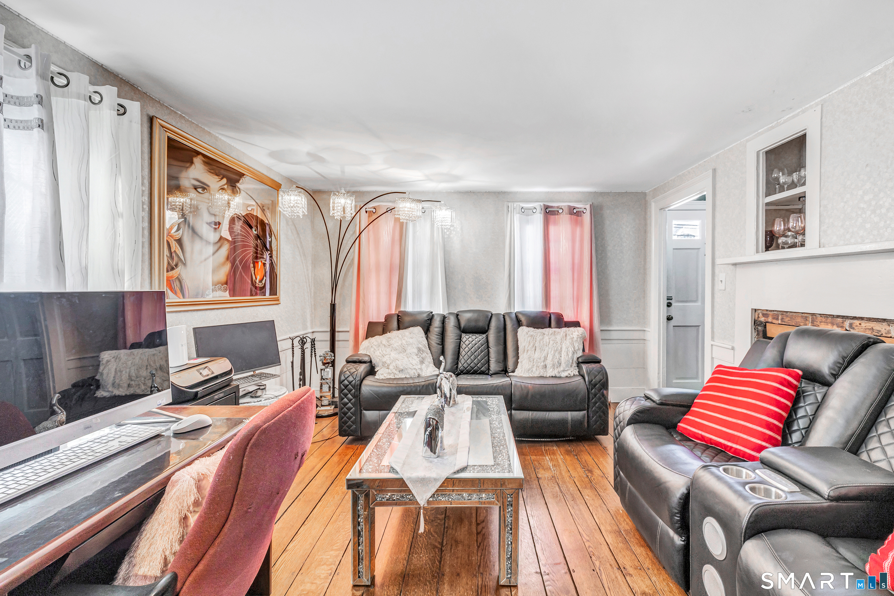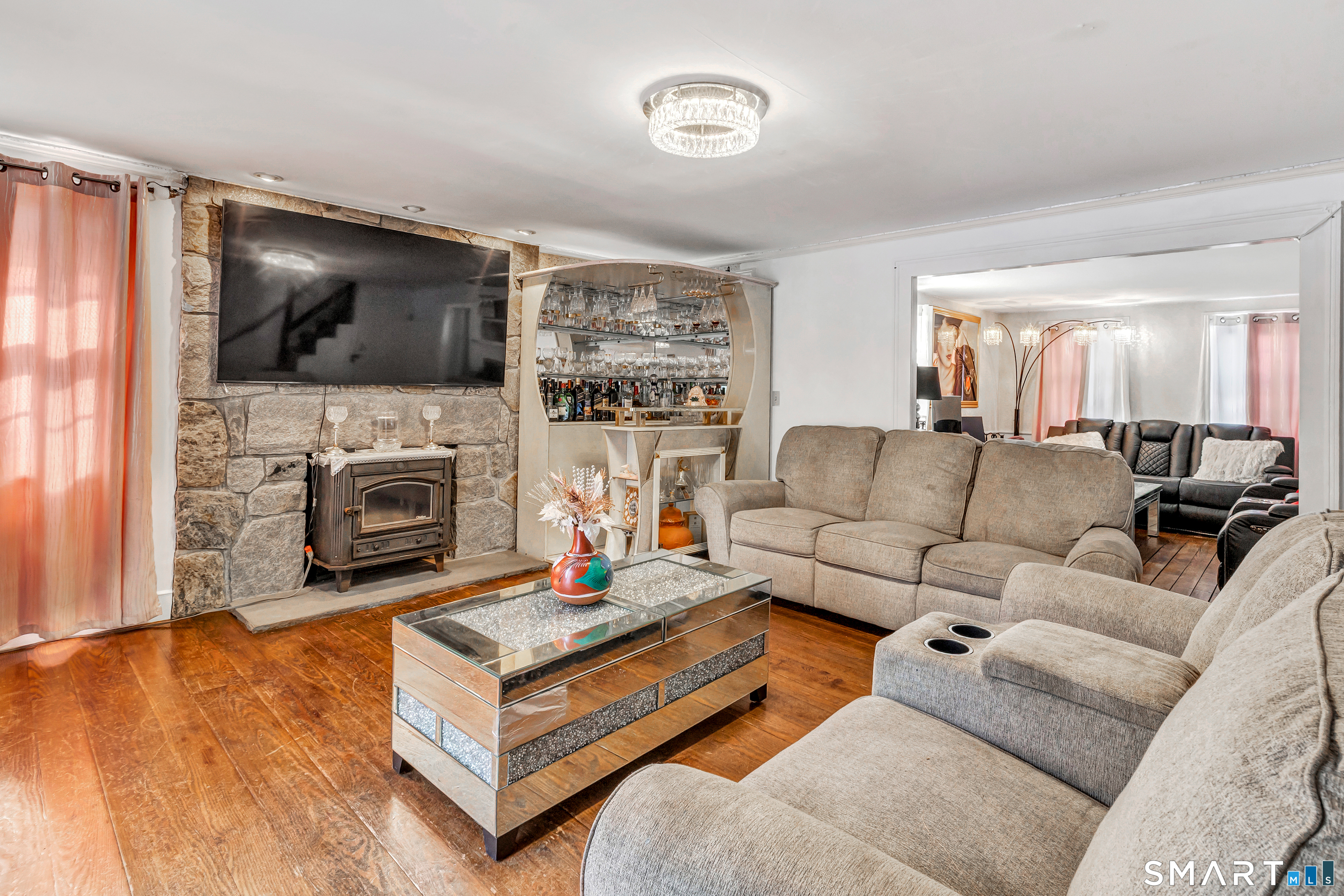 Experience the charm of this beautiful antique Colonial home located in Huntington at 256 Nichols Avenue, on a picturesque, park-like grounds, complete with a small barn, gardening shed, and elegant stonework. This residence combines classic historic features with modern updates, showcasing solid mechanics and evident pride of ownership. Original wide plank floors grace the living room, dining room, and lower-level bedroom, while exposed beams throughout the home highlight its timeless appeal. The warm, inviting country kitchen features a cathedral ceiling and a large skylight, flooding the space with natural light. Cozy fireplaces enhance both the living and dining rooms, one with a gas log and the other with a wood-burning stove insert. The primary bedroom on the main floor boasts a charming brick fireplace. The expansive, partially covered wrap-around porch offers an ideal spot for outdoor entertaining, and the backyard feels like a private park.