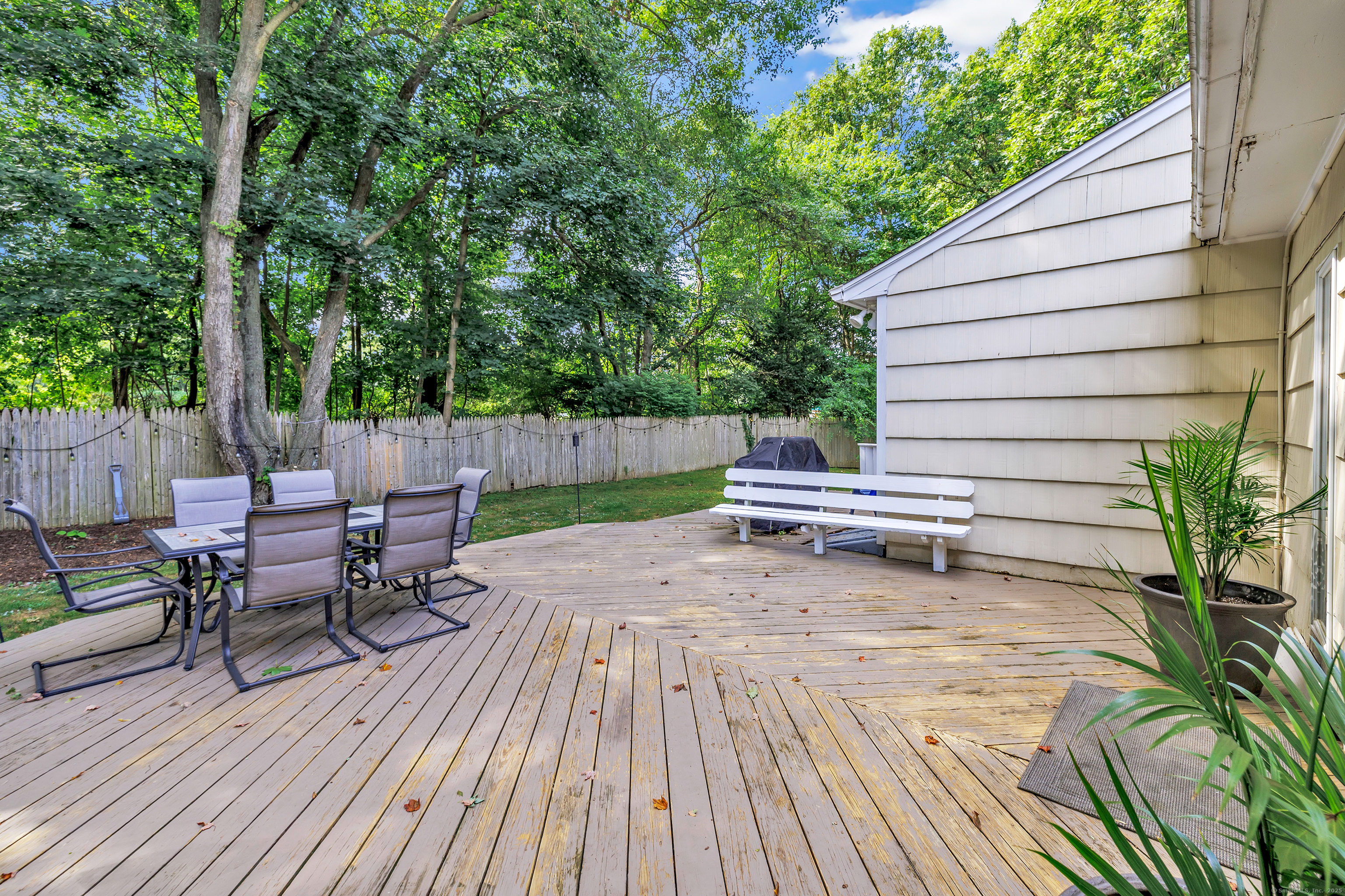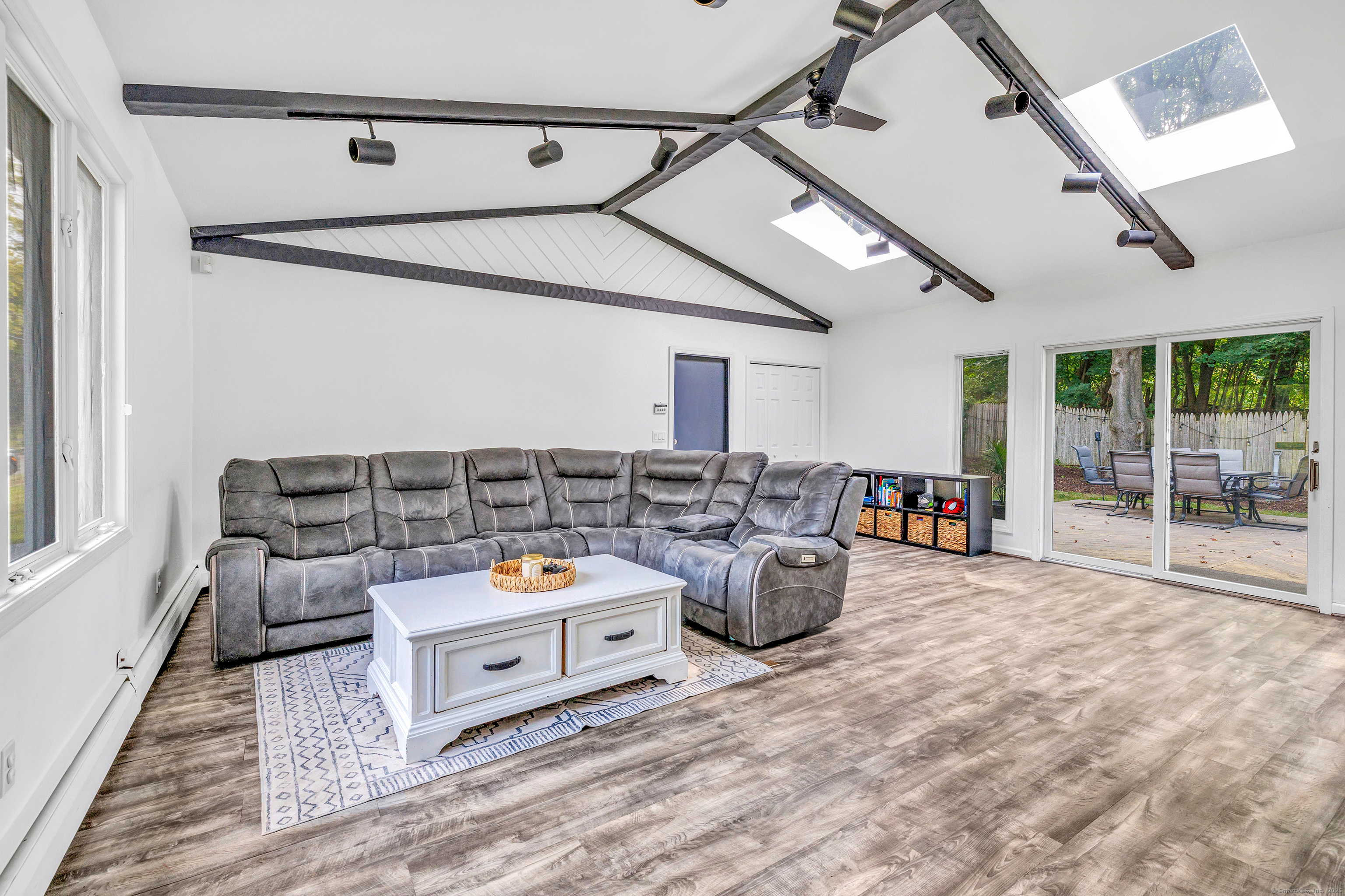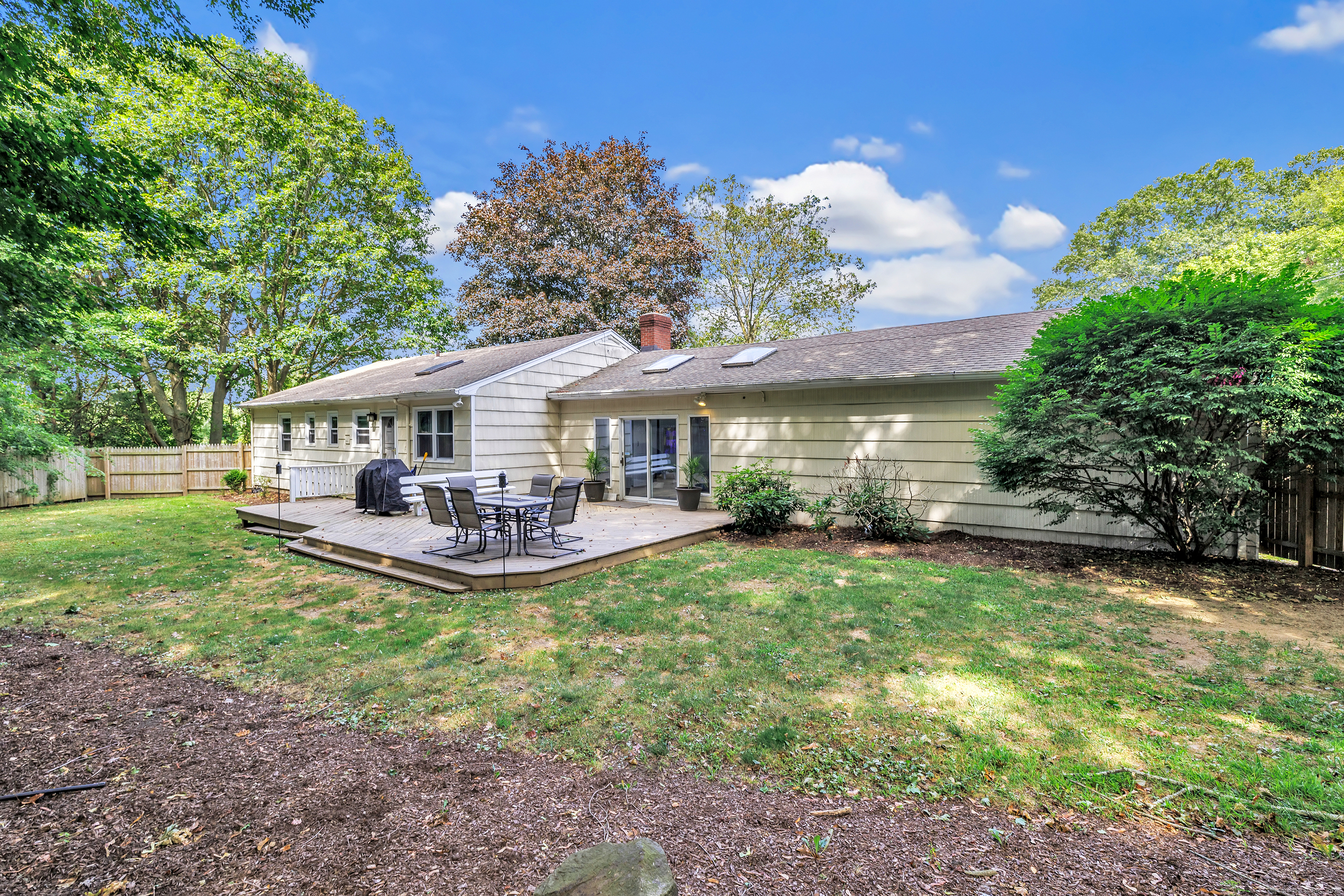 Welcome to your next home in the sought after Town of Trumbull. This charming 3 bed, 2 bath Ranch offers the perfect blend of comfort, convenience, and character. Ideally located with convenient access to shopping, dining, and major commuter routes, including the Merritt Parkway. This home features important updates, including an updated eat-in kitchen with new appliances, a remodeled bathroom, new water heater, new floors and more, offering peace of mind and immediate comfort. Inside, the main level features hardwood floors, a living room with wood burning fireplace, a bay window, a dining area that flows beautifully into a large family room featuring high ceilings, skylights and exposed beams, creating a perfect space ideal for entertaining or relaxing. The primary suite includes its own private full bath, while two additional bedrooms offer flexibility for guests, a home office, or growing needs. Step outside to enjoy the leveled, fenced-in backyard, private and ideal for outdoor gatherings, pets, or play. The spacious, unfinished basement provides endless potential ideal for a home office, gym, rec room, or additional living space. The home is move-in ready, with room for your personal cosmetic touch to make it truly yours. Whether you're a first-time buyer, downsizing, or simply seeking a low-maintenance home in a convenient location, this one checks all the boxes. Don't miss this opportunity!