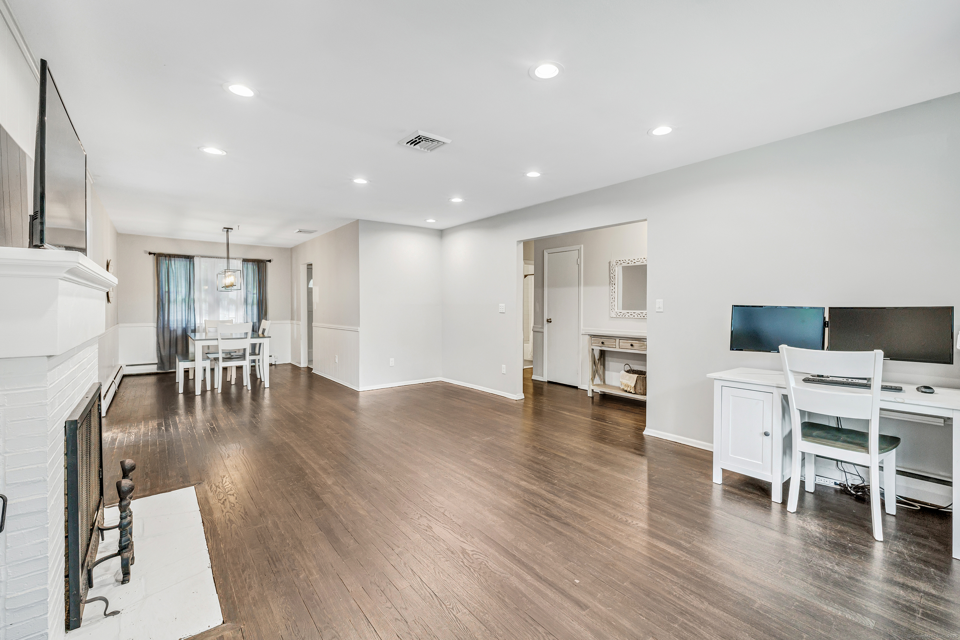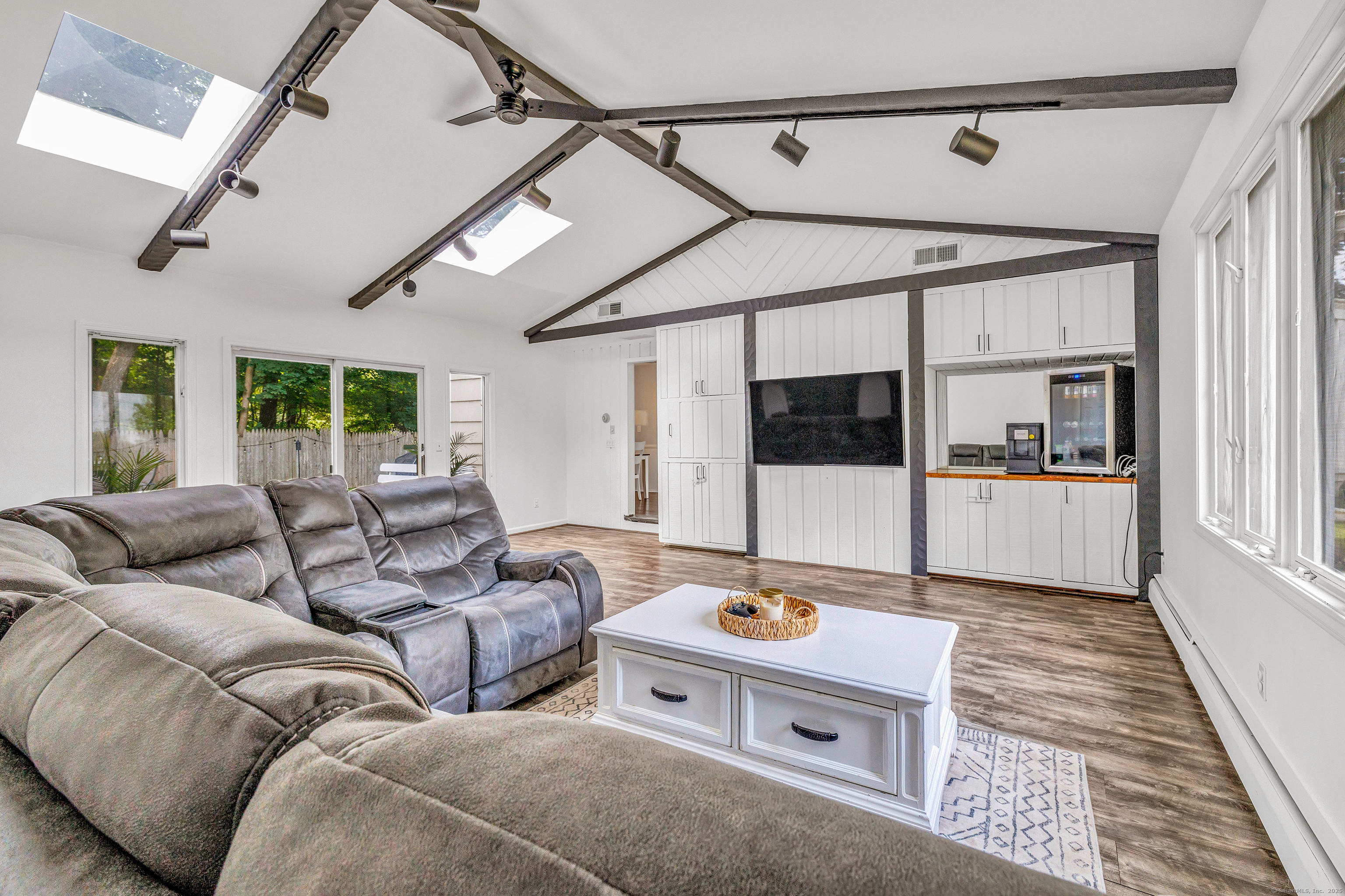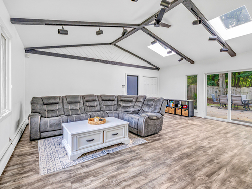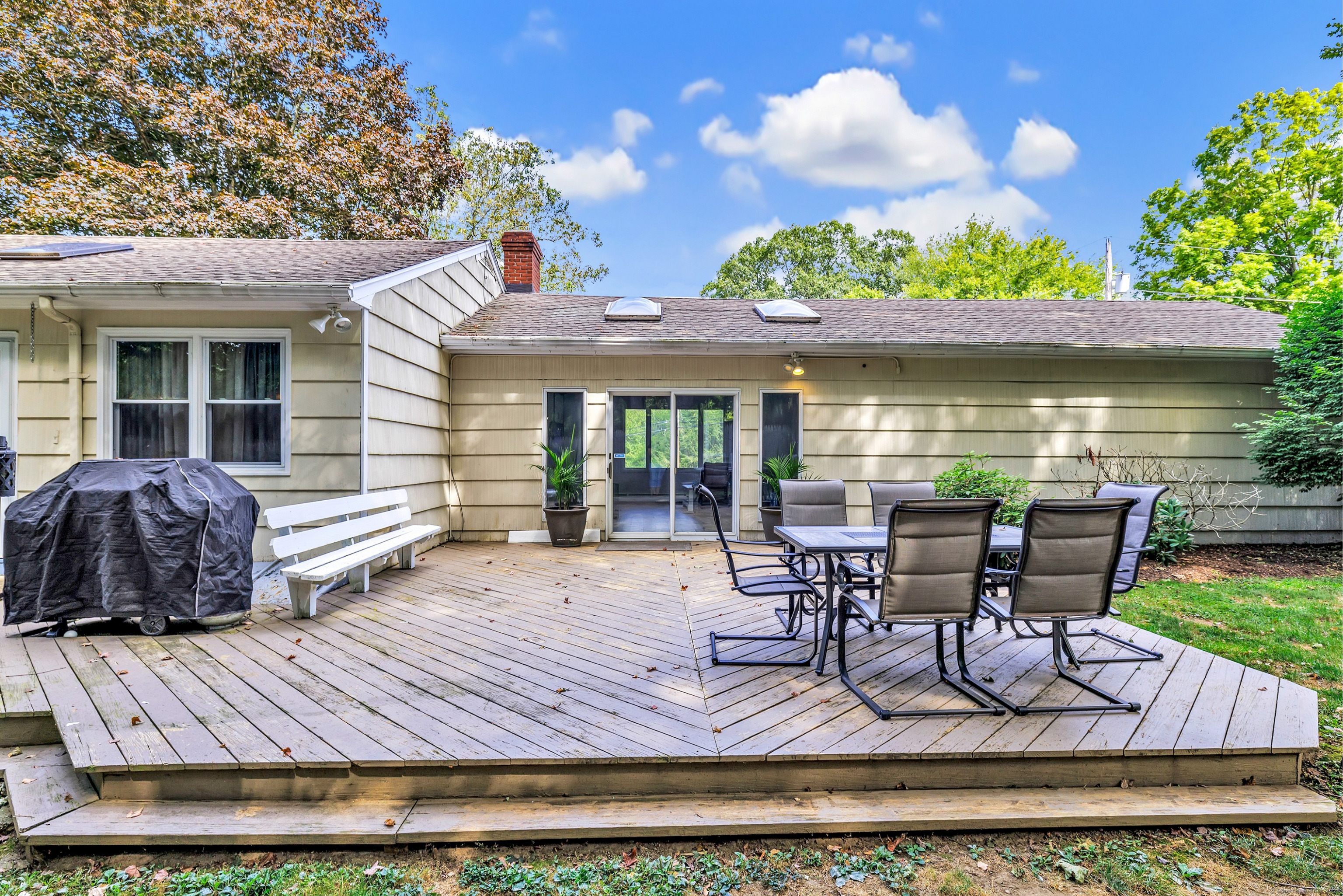 Welcome to your next home in the sought after Town of Trumbull. This charming 3 bed, 2 bath Ranch offers the perfect blend of comfort, convenience, and character. Ideally located with convenient access to shopping, dining, and major commuter routes, including the Merritt Parkway. This home features important updates, including an updated eat-in kitchen with new appliances, a remodeled bathroom, new water heater, new floors and more, offering peace of mind and immediate comfort. Inside, the main level features hardwood floors, a living room with wood burning fireplace, a bay window, a dining area that flows beautifully into a large family room featuring high ceilings, skylights and exposed beams, creating a perfect space ideal for entertaining or relaxing. The primary suite includes its own private full bath, while two additional bedrooms offer flexibility for guests, a home office, or growing needs. Step outside to enjoy the leveled, fenced-in backyard, private and ideal for outdoor gatherings, pets, or play. The spacious, unfinished basement provides endless potential ideal for a home office, gym, rec room, or additional living space. The home is move-in ready, with room for your personal cosmetic touch to make it truly yours. Whether you're a first-time buyer, downsizing, or simply seeking a low-maintenance home in a convenient location, this one checks all the boxes. Don't miss this opportunity!