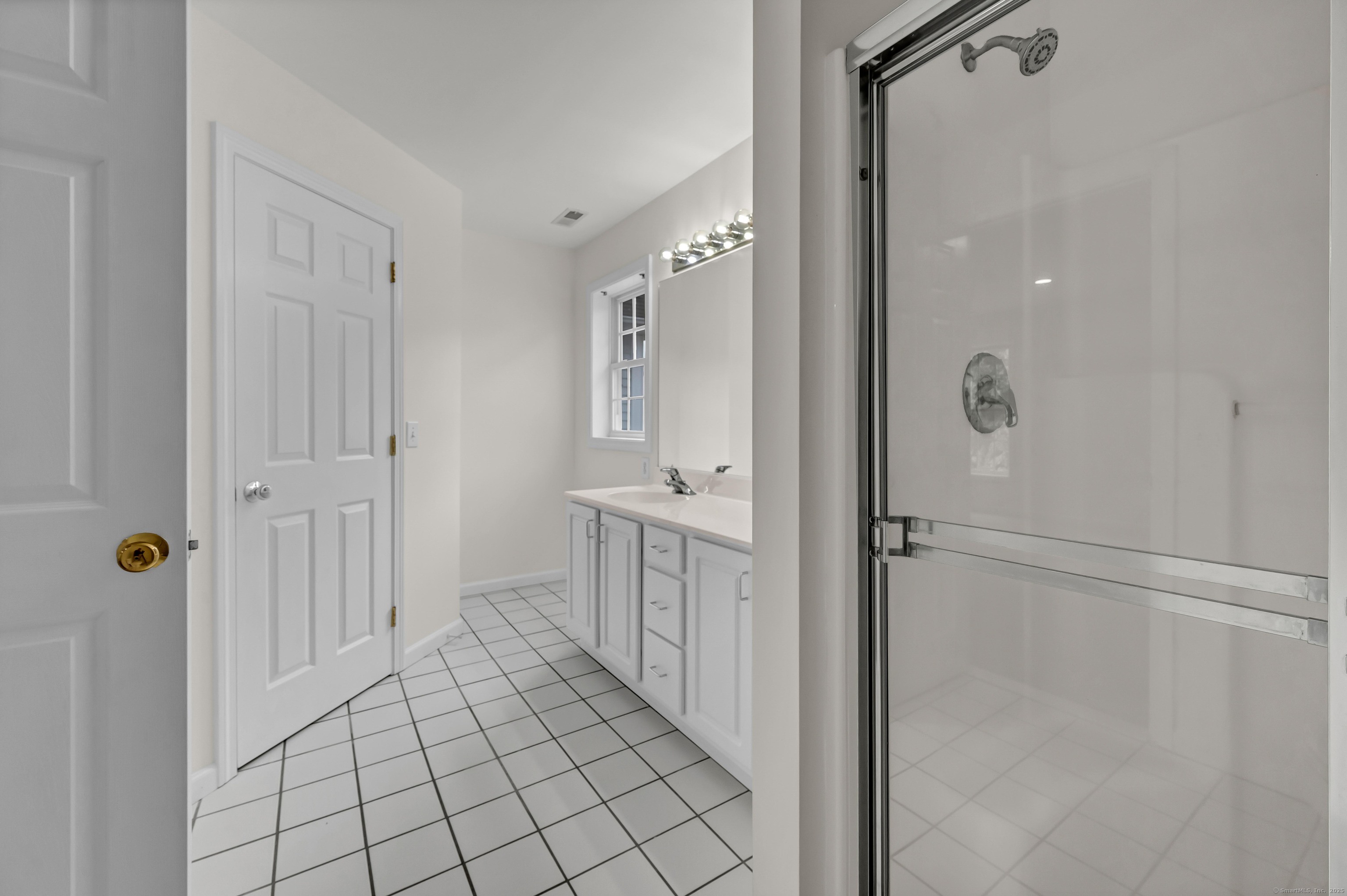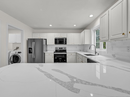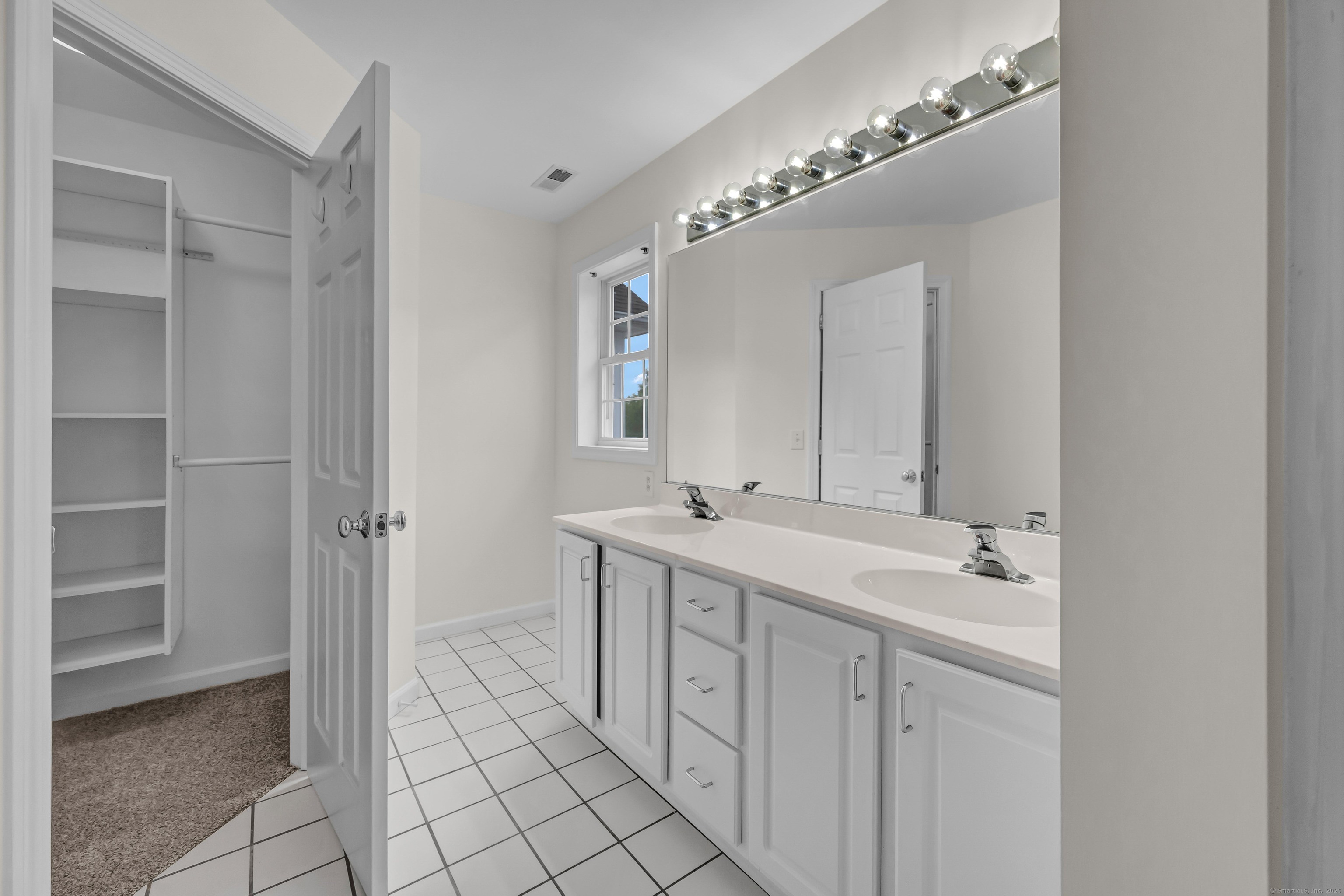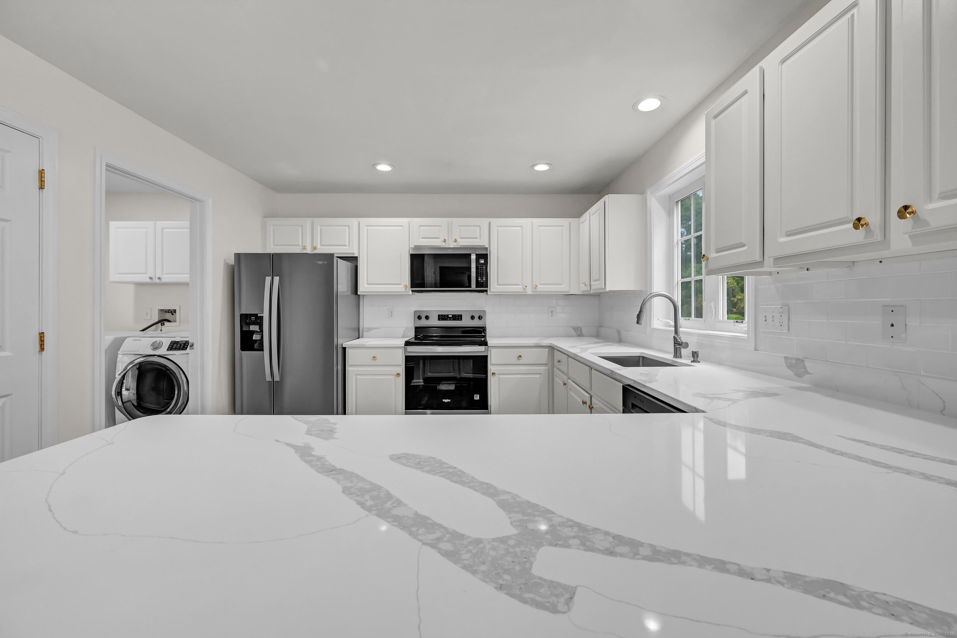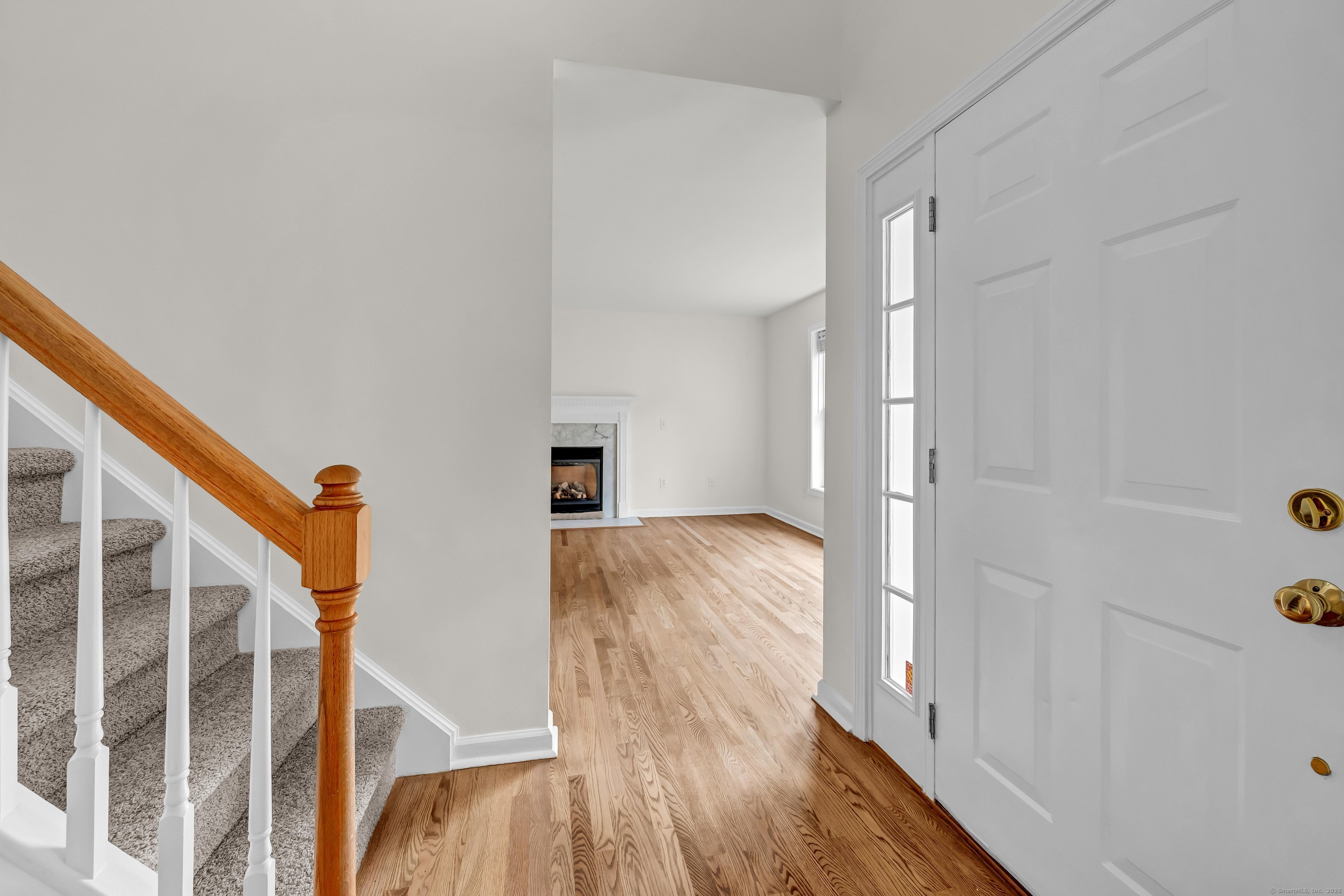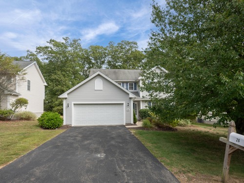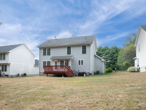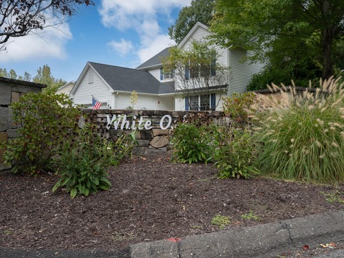 Beautifully updated 3 bedroom, 2.5 bathroom Colonial tucked away at the end of a quiet cul-de-sac. A two story entryway and newly refinished hardwood flooring greet you as you enter this bright and sunny home with new recessed lighting and paint throughout. The formal living room has a gas fireplace for staying cozy on chilly days and the formal dining room leads to the spacious eat-in kitchen with new Quartz counters, new stainless steel appliances, breakfast bar and dining area that walks out to the private back deck and yard. There is also a convenient half bathroom on the main level, plus a mudroom/laundry room leading to the two car garage. Upstairs there are three spacious bedrooms with brand new carpeting, plus two bathrooms, including a primary suite with walk-in closet and large full bath with dual sinks and walk-in shower. The lower level is fully finished with a huge bonus room, ideal as a home theater, office or play space. There are also numerous storage closets and a separate utility/storage room. All set on a perfectly level yard at the end of a cul-de-sac atop a hill, with easy access to the White Oak Estates playground and gazebo, yet located just a few minutes to I-84, Target, Walmart and tons of shops and restaurants. Common charges include exterior maintenance, including lawn care and snow removal, so come enjoy a mow-free summer and snow-free winter!