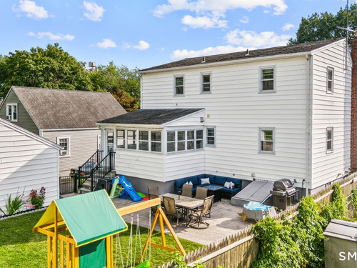 ***Multiple Offers received- Highest & Best offer deadline by tomorrow, Monday, 2/16 at 5:00PM.*** Gorgeous fully dormered Cape, tastefully updated and ideally located in the North End on the Fairfield line. This truly turn-key home features beautifully refinished hardwood floors throughout and an incredible open floor plan with modern, upscale finishes at every turn. The updated kitchen showcases custom details, including granite countertops, stainless steel appliances, and a large center island-perfect for preparing home cooked meals. An expansive dining room flows seamlessly from the kitchen into a welcoming living room highlighted by a stunning stone fireplace. The home offers three generously sized bedrooms, including a convenient first-floor bedroom, along with three fully updated bathrooms-one on each level. Just off the kitchen is a heated sunroom that opens to a new patio and a private backyard, ideal for hosting guests. The fully finished lower level adds approximately 800 square feet of additional living space, complete with a stylish wet bar, large family/recreation room, laundry room, full bathroom, and a flexible room perfect for a home office. Updated mechanicals and a Navien tankless heating and hot water system complete this exceptional home. Nothing to do but move in and enjoy.