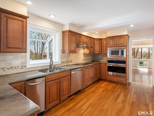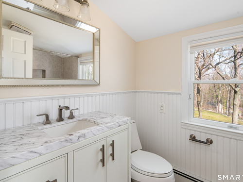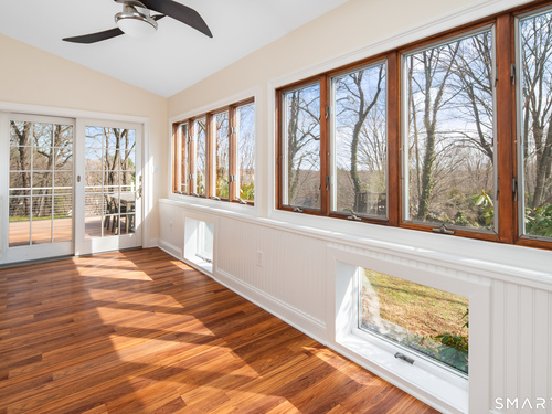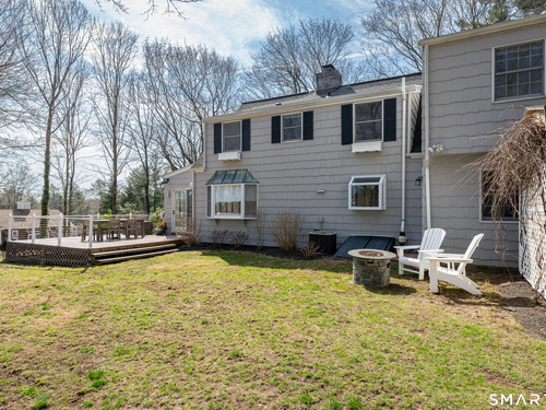 Set well back from the road, this charming 1930's vintage cape offers flexible living and is comfortably perched with glorious east/west exposures that provide naturally bright interiors throughout the day. Fresh paint throughout all interiors, hardwood floors, recessed lighting, multiple bay windows and an oversized kitchen with expansive granite counters and maple cabinets. The two car attached garage leads to a fabulous mud room with tile floor for easy clean up, built in cabinetry, bench seating and rear yard access. The window walled sunroom has sliders out to the maintenance free deck overlooking the private, level rear yard. Nestled in Cranbury on the Westport/Wilton border minutes to Route 15, the 227 acre Cranbury Park and the quaint Cranbury Shopping Center. Flexible living in a most convenient location, not to be missed.
