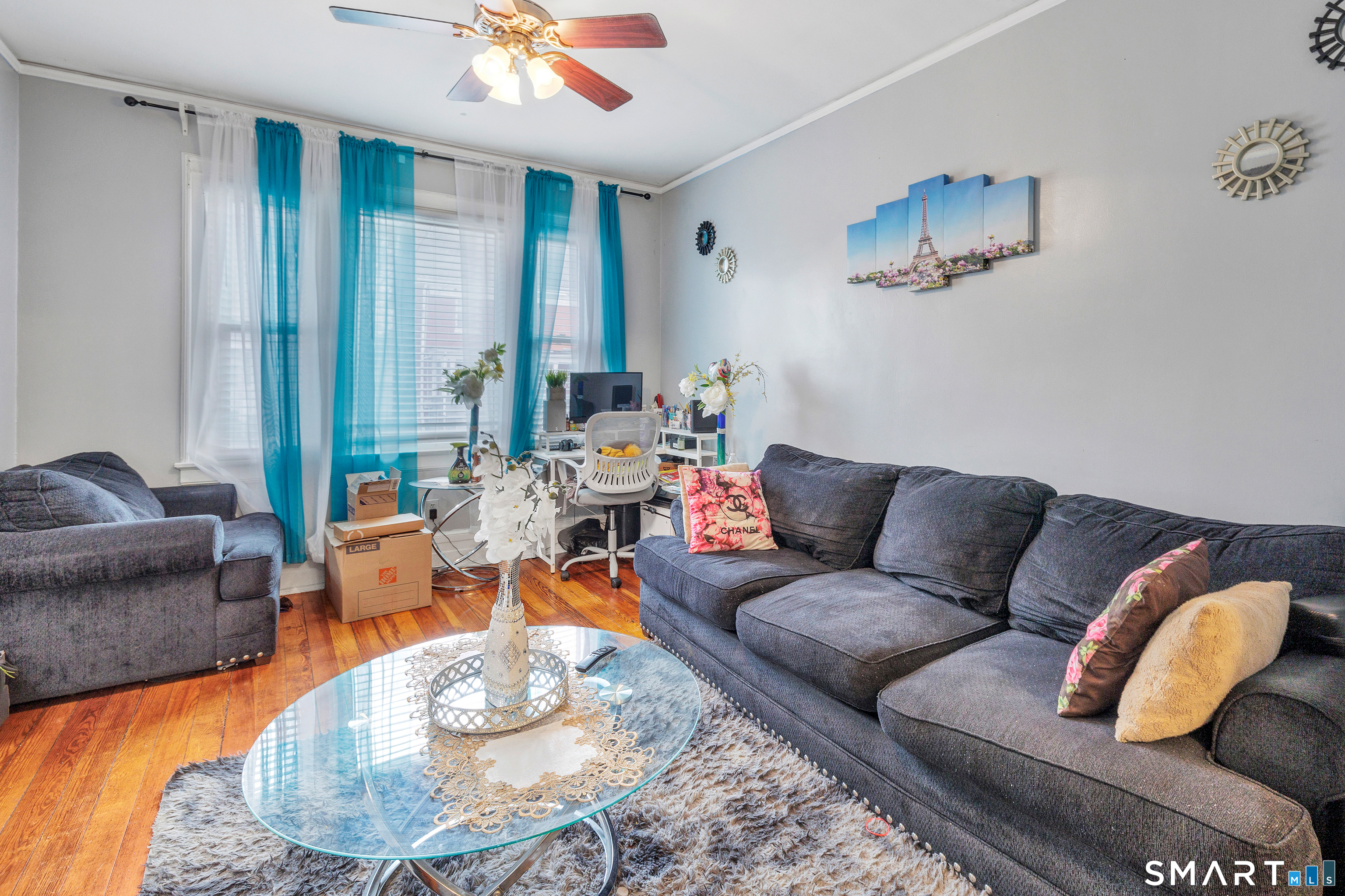 Spacious and inviting half duplex with 3 bedroom and 2 full baths. Ample living room and dining room. Hardwood flooring throughout. Tile flooring and granite countertops in the kitchen, and a full bath on the first floor. 3 bedrooms and another full bath on the second floor. Finished basement with many possibilities. Fenced in back yard with a private patio. Driveway parking for one car at the front of the house. Easily accessible to schools, public transportation, shopping, and all amenities. Minutes from I-95 and Rt 15/8.
