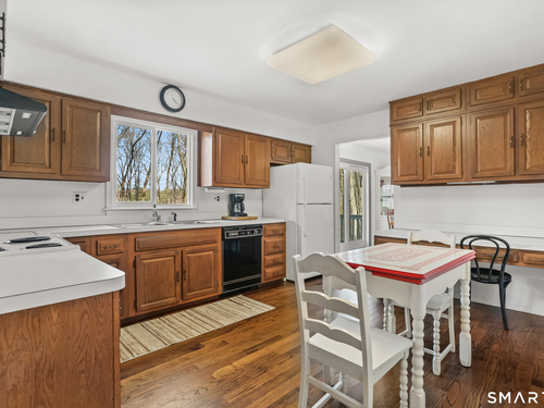 Don't miss the opportunity to live in this special well cared for 8 room Colonial tucked away on 2.93 very private low maintenance acres on sought after Umpawaug Rd, so convenient to Topstone Park, the NY Metro train, walking distance to New Pond Farm, and close to commuting highways and shopping. The welcoming entry hall opens into the inviting light filled living room with a fireplace surrounded with extensive built-in bookcases. Step up to the sunny dining room with built-in corner cabinet, slider to the newer deck and entrance into the eat-in kitchen with ample cabinets and small hallway with access to a powder room and the oversized 2-car garage. Upstairs is the grand primary bedroom with 3 closets and a beautifully remodeled primary bath. There are 3 other bedrooms, all with excellent closets and a hall tub bath. The lower level includes a comfortable family room with a second fireplace and new slider to a patio. The rest of the remodeled walk out basement includes the laundry room, half bath and storage room. Built in 1969, this attractive colonial awaits a few of your personal touches but boasts so many improvements: Enjoy the remodeled family room, new half bath & laundry room in the walk out lower level. There are newer windows throughout, new wood floors on the main level and 2 bedrooms, new hot water heater, and more... A SPECIAL HOME AWAITS!