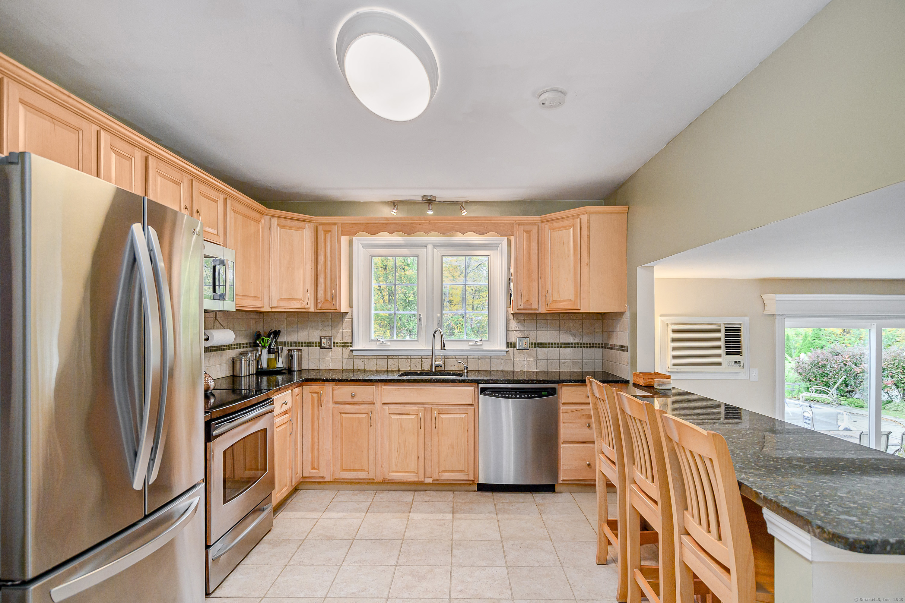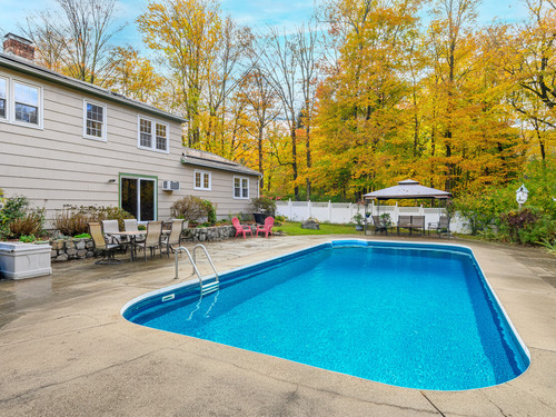 Discover the perfect blend of comfort and convenience in this 4-bedroom, 2.5-bath Colonial Split set on a beautifully level acre in Bethel. Step inside to hardwood floors that flow through most of the home, complemented by new carpeting in the family room and office space. The kitchen's granite countertops, tile flooring and breakfast bar make everyday living a breeze, while the family room-complete with wood-burning fireplace insert and new sliders-invites you outdoors to your private oasis: a sparkling in-ground pool, expansive bluestone patio, and spacious, mature landscaped backyard. Enjoy pool views from the dining room and abundant natural light flowing from the living room's picture window. Upstairs, the primary suite offers a walk-in closet, recently renovated full bath and new carpeting covering the hardwood floors, plus three additional generously sized bedrooms all with hardwood floors. Desirable features include a 2-car attached garage with pull down attic stairs for storage space, new roof, newer stainless steel chimney liner and solar panels for energy efficiency. Newer pool liner and cover, city water and sewer. The property even includes a chicken coop if you'd like to embrace a bit of country living. All just moments from charming downtown Bethel-home to delicious and eclectic restaurants, the popular movie house, the beloved Dr. Mike's Ice Cream, and the fabulous Bethel Library.