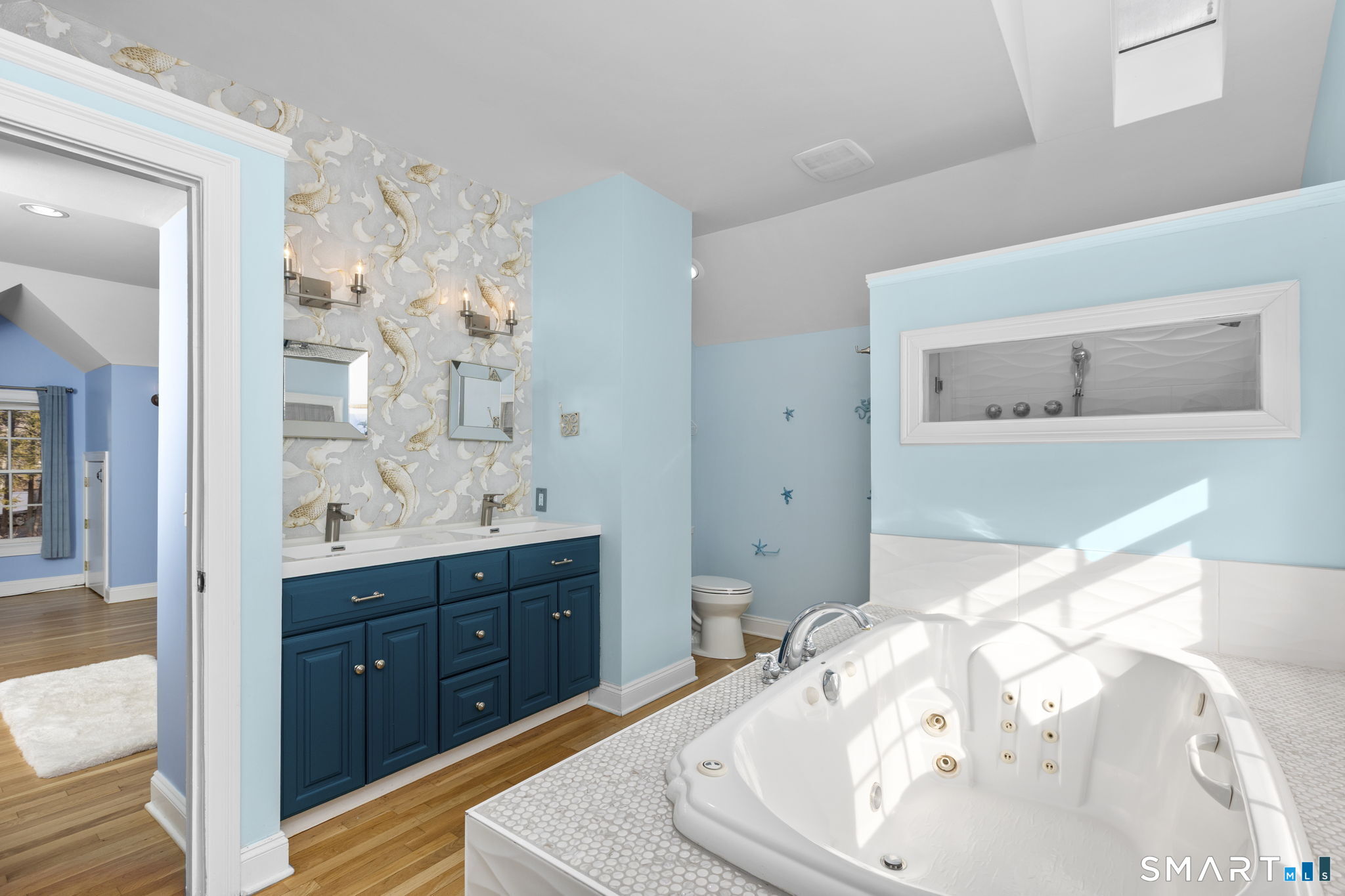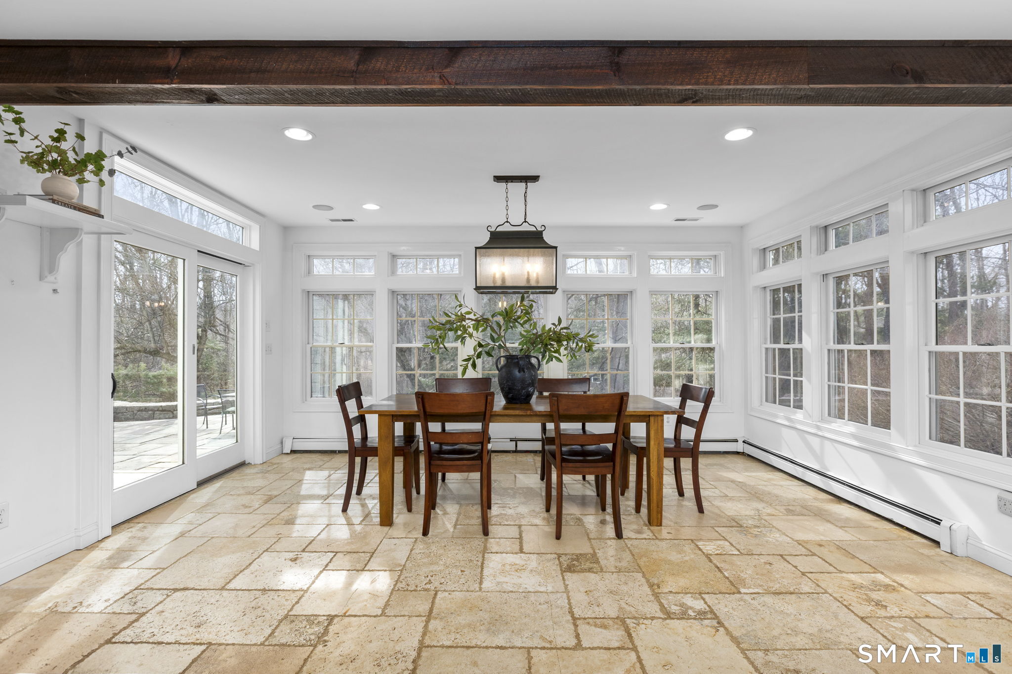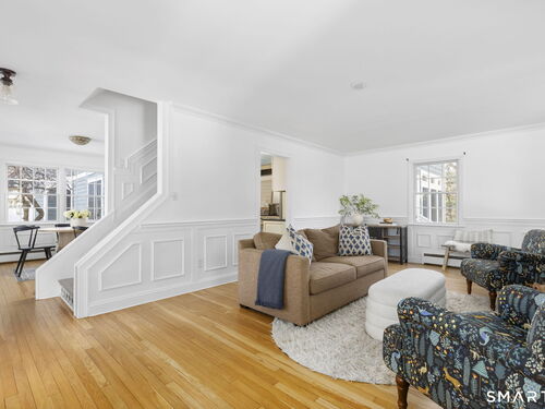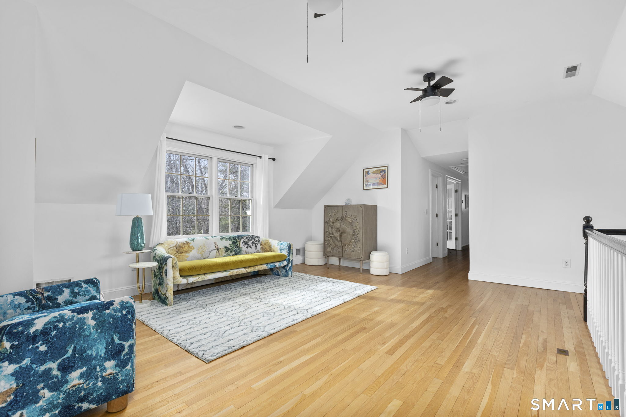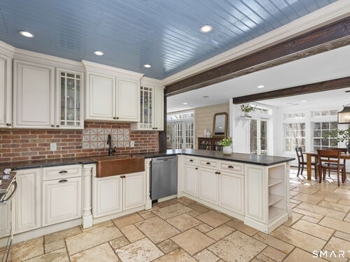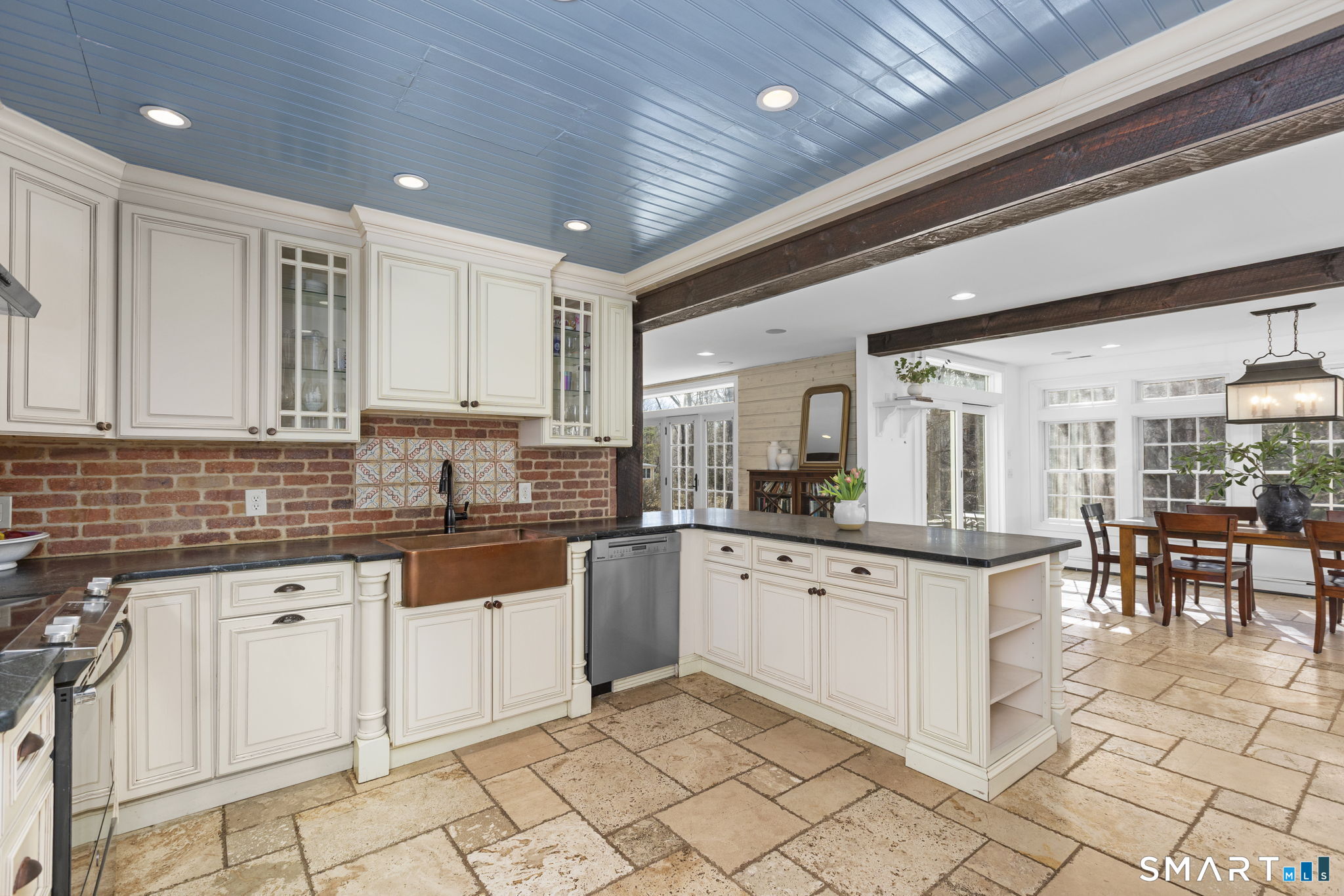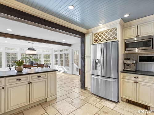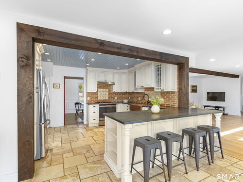 Enjoy the best of Ridgefield living in this beautifully designed Colonial Farmhouse set on over an acre just minutes from town. With over 4,000 square feet, this home offers timeless charm and exceptional space for everyday living and entertaining. The sun-filled kitchen features soapstone countertops, a farmhouse sink, and a dining area surrounded by expansive windows. The main level also includes a spacious family room, formal living and dining rooms, a powder room, and a mudroom with laundry just off the oversized two-car garage. Upstairs, dual staircases lead to a versatile loft ideal for a family room, office, or lounge. The primary suite offers a spa-like bath with soaking tub and dual walk-in closets. Three additional bedrooms, two full baths, and a flexible room that can serve as a fifth bedroom, playroom or office complete the second floor. The partially finished lower level adds valuable flex space. Outdoor living shines with a classic front porch, expansive deck, and stone patio perfect for entertaining or relaxing. Located just a short drive to Ridgefield's historic downtown, consistently ranked by CT Magazine as one of the Best Places to Live, with award-winning schools and convenient access to I-684, 70-minute NYC commute.