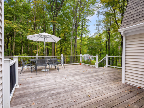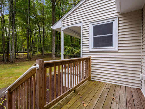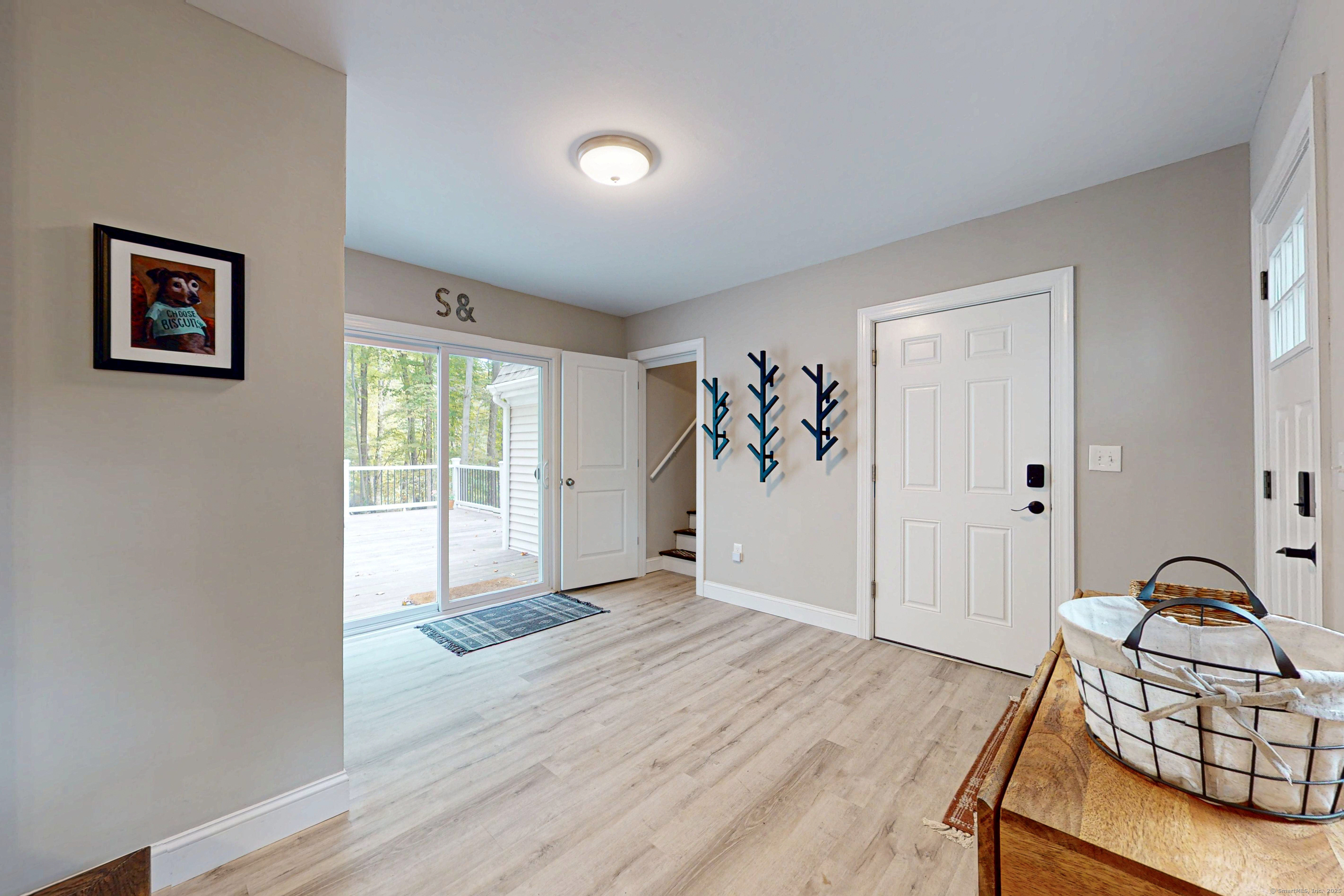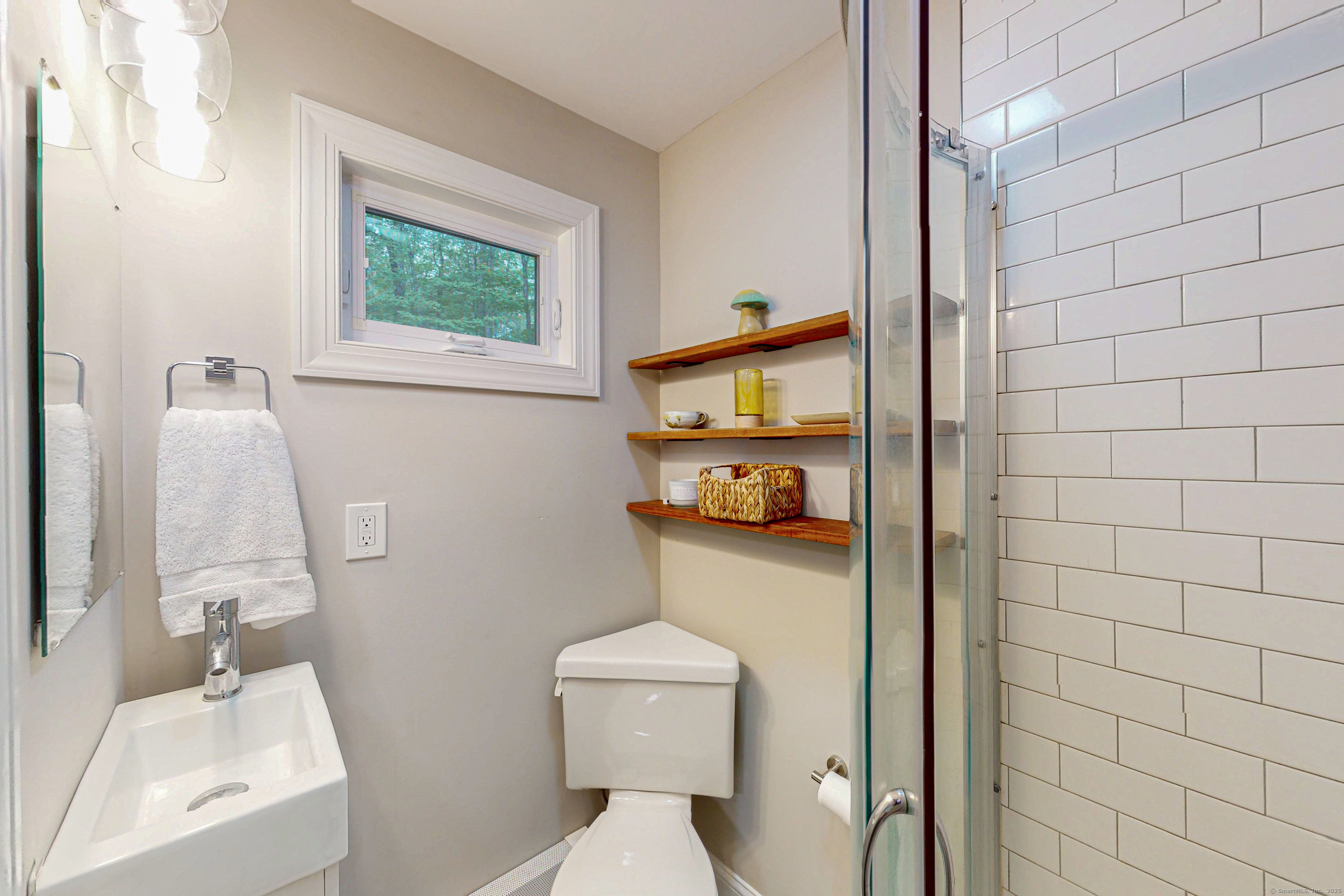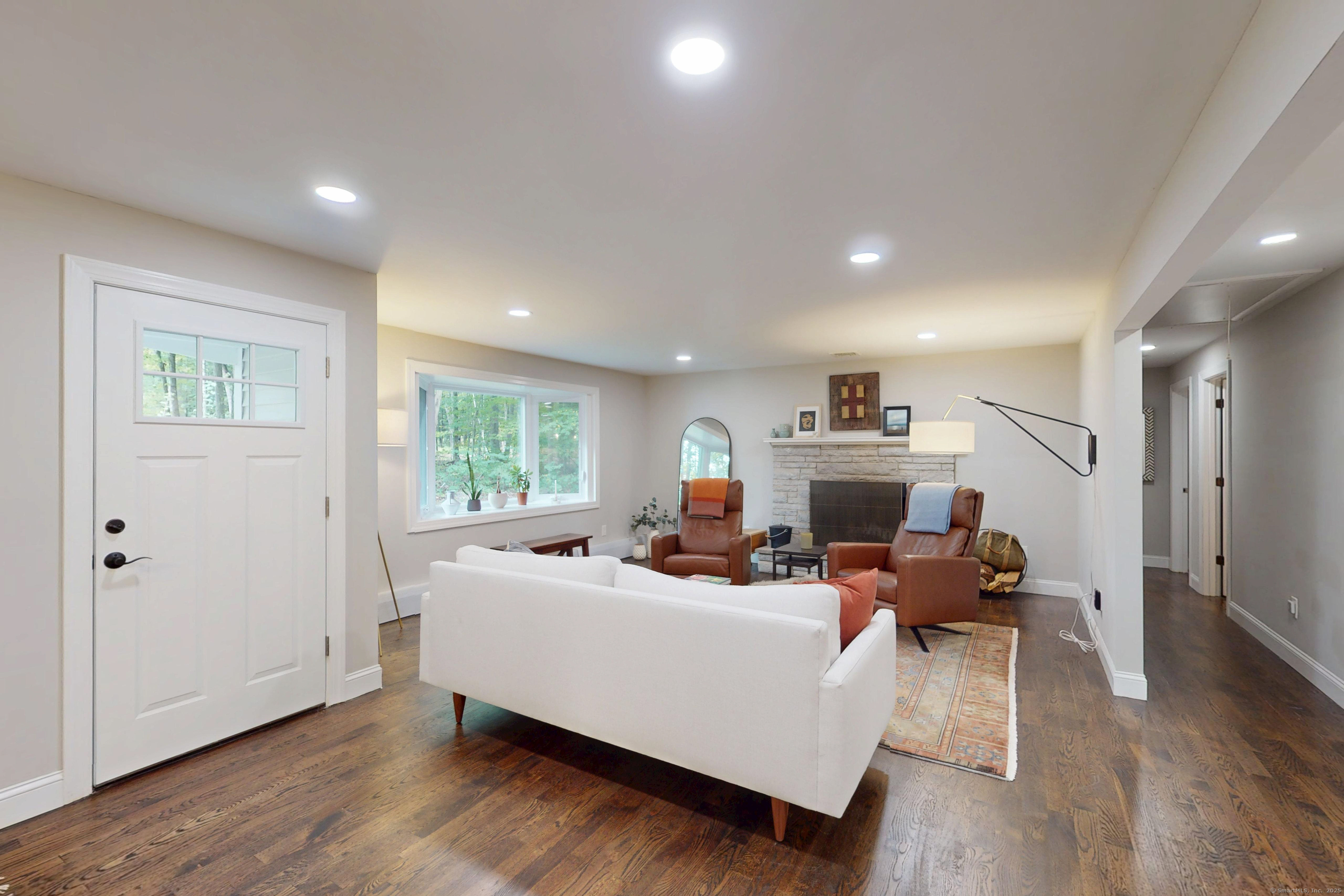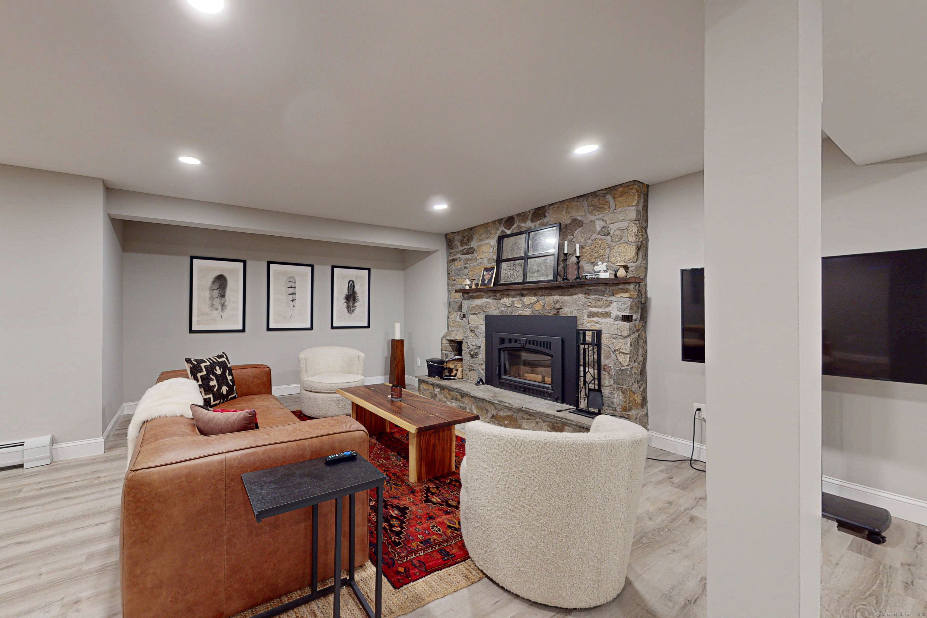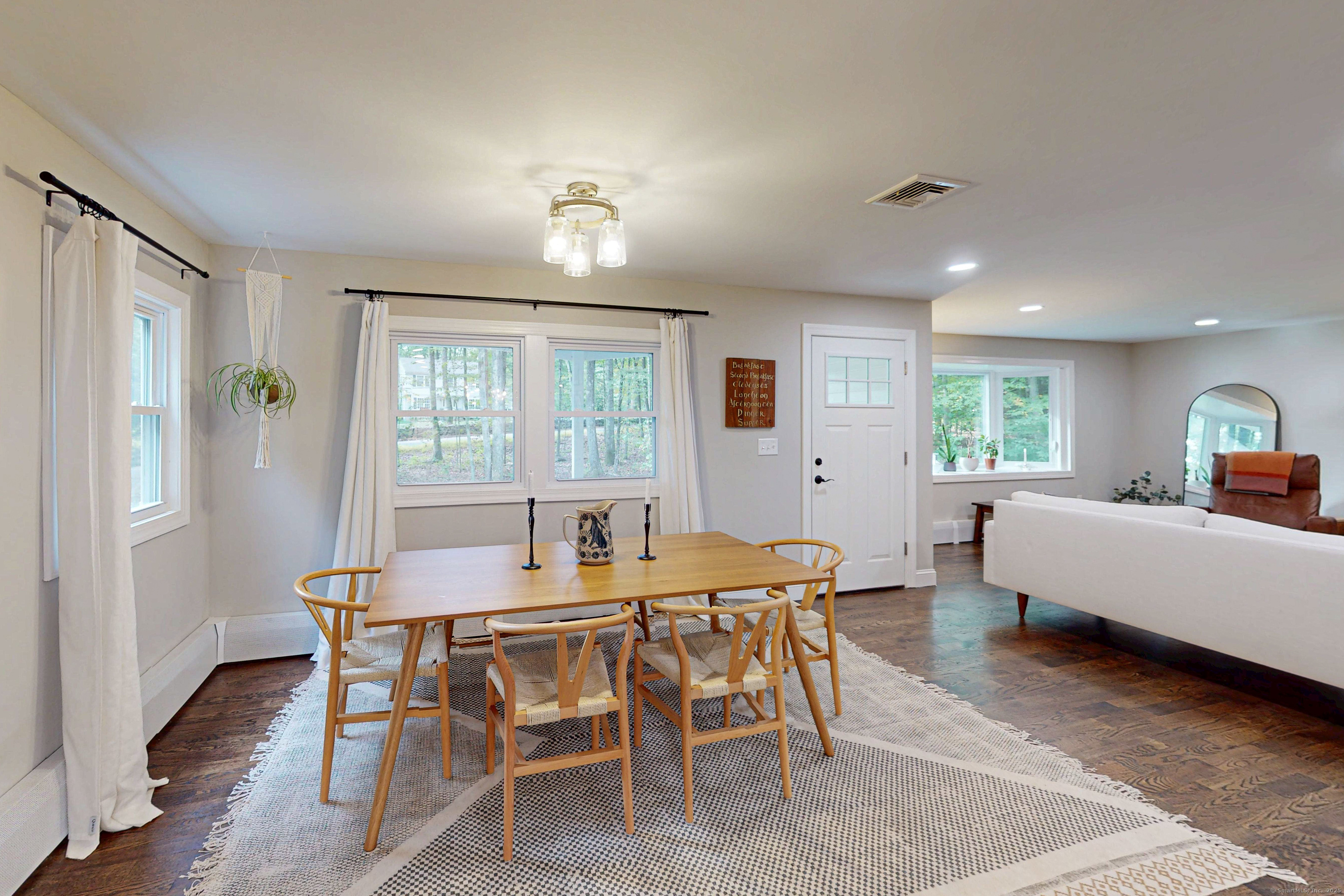 Beautifully updated, this ranch offers an open, airy layout with natural light and clean finishes that create a comfortable, modern feel. Set on over seven private acres, the home also includes an accessory apartment, providing flexibility for a variety of living arrangements. With custom soft-close cabinetry, granite countertops, and a center island, the kitchen transitions to the dining and living areas, providing a natural hub for everyday living and entertaining. The living room is highlighted by a bay window and a beautiful stone fireplace that adds warmth and character. The main level also includes a primary suite with full bath, two additional bedrooms, one with custom closet organizers, a hall bath, and an office. A newly expanded deck extends the living space and overlooks the private yard, which includes a fenced area ideal for play or pets, along with woods to explore. The finished lower level provides additional living space with a second stone fireplace, now outfitted with a new wood stove insert, perfect recreation or media room. The one-bedroom accessory apartment features its own new mini-split system, making it a great option for extended family, in-law set up or income potential. Modern systems include propane heating, central air, and thoughtful updates throughout. A convenient, large attached two-car garage. Located just minutes to Routes 84 and 34, this offering combines privacy, space, and accessibility with all the amenities of the Newtown community.
