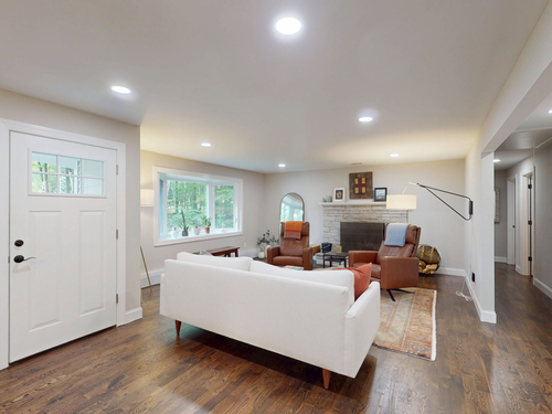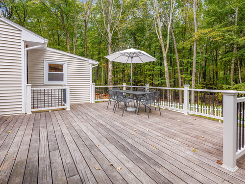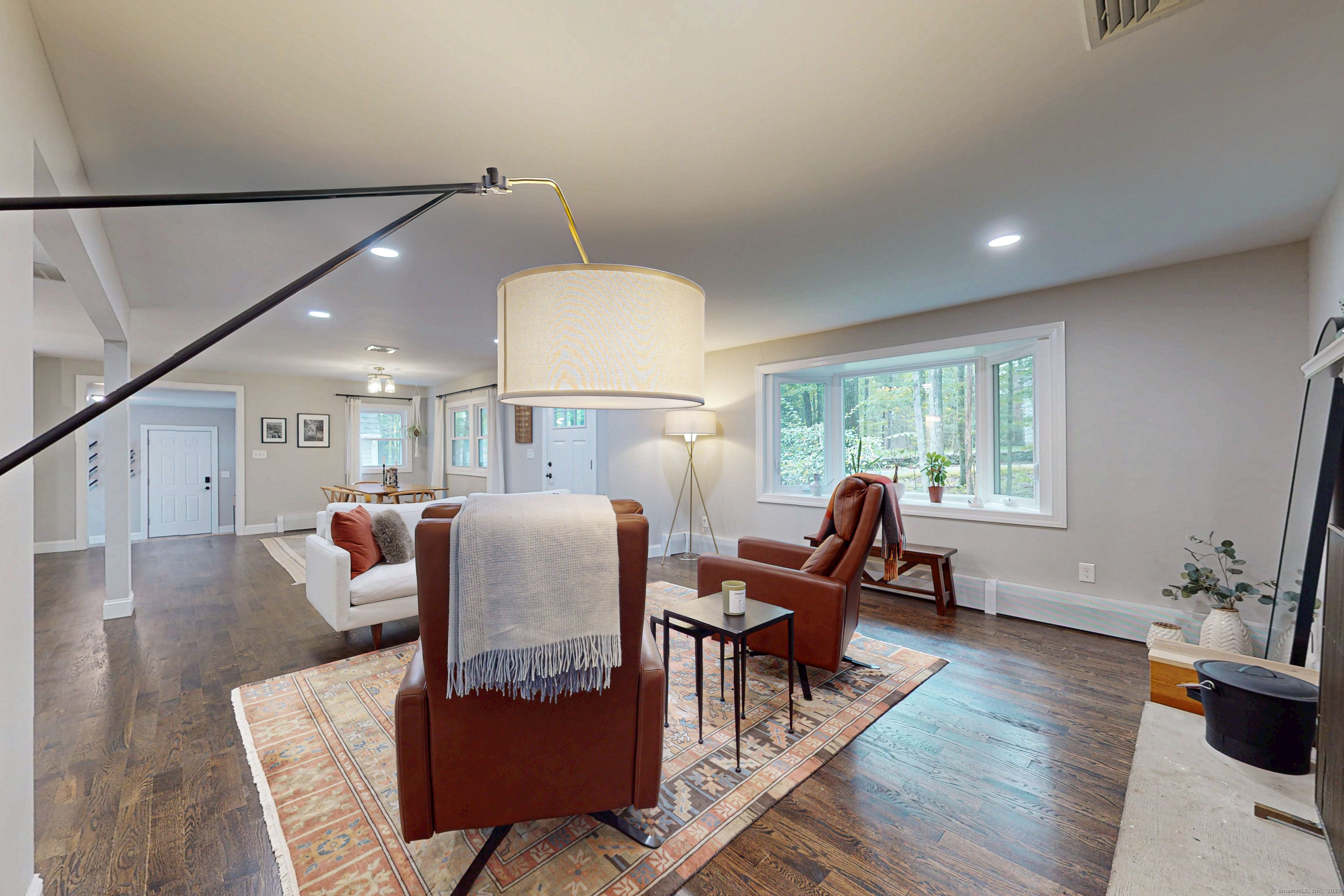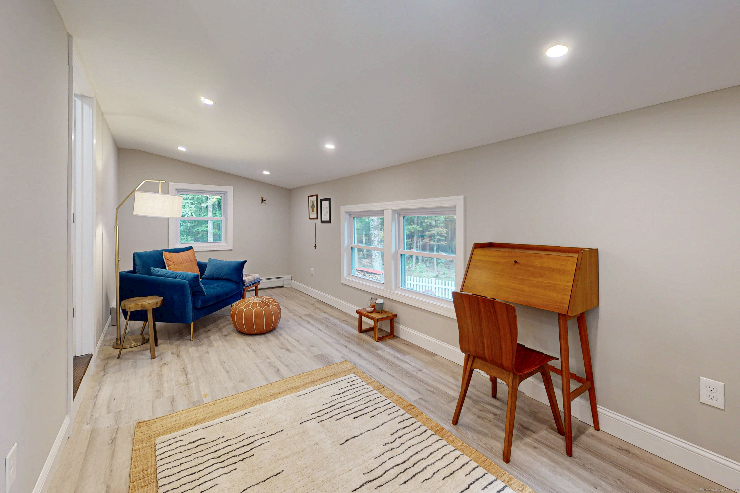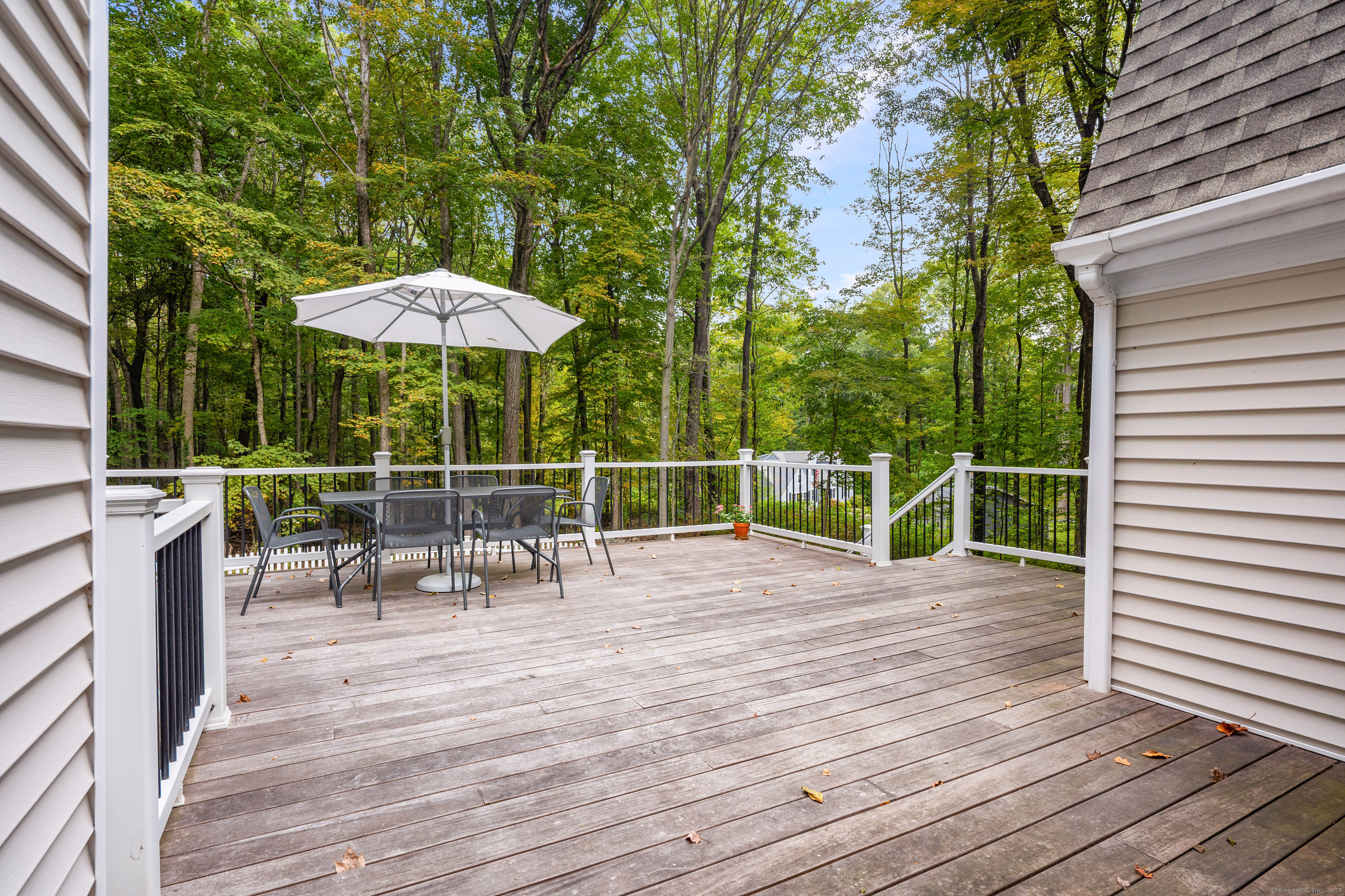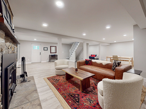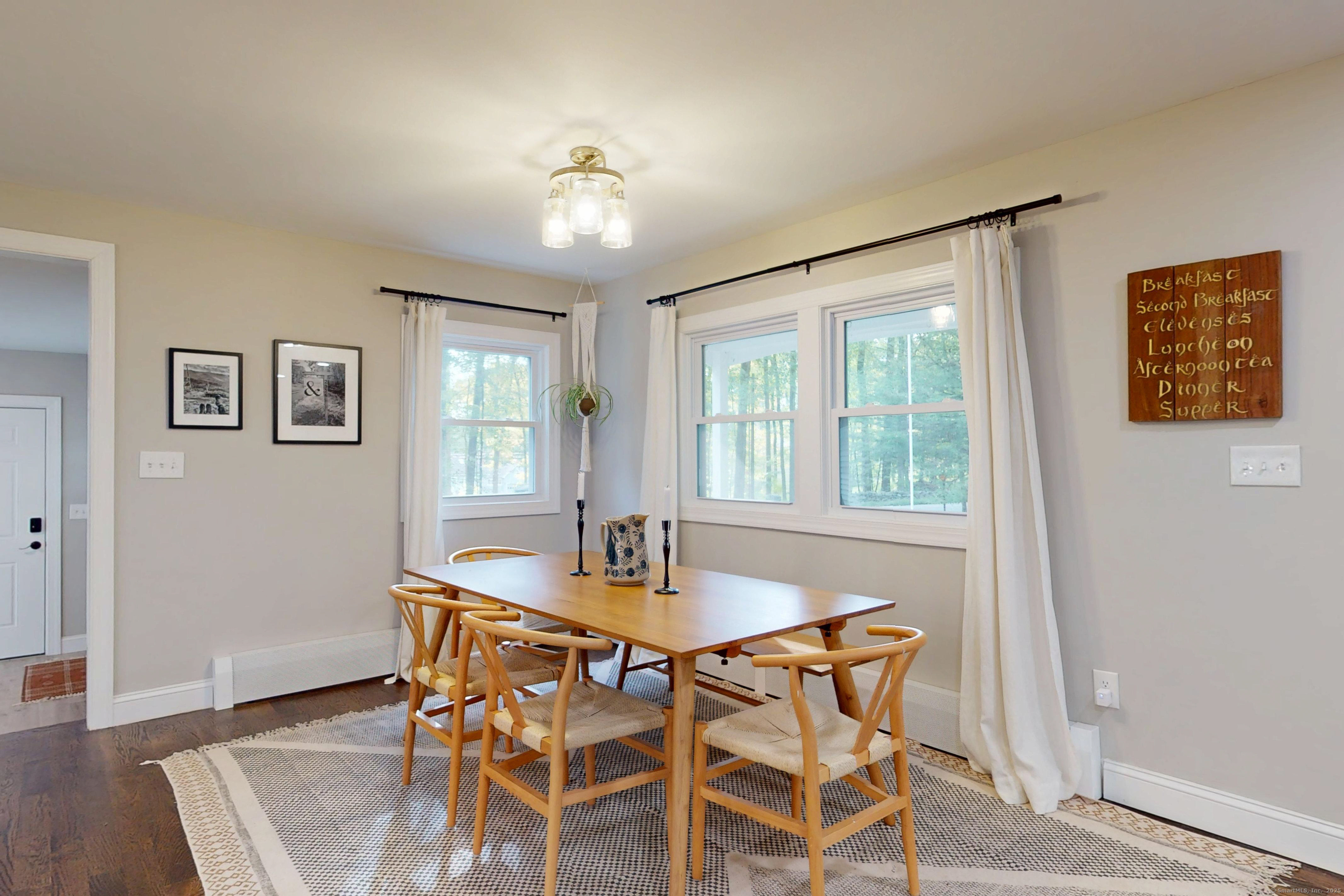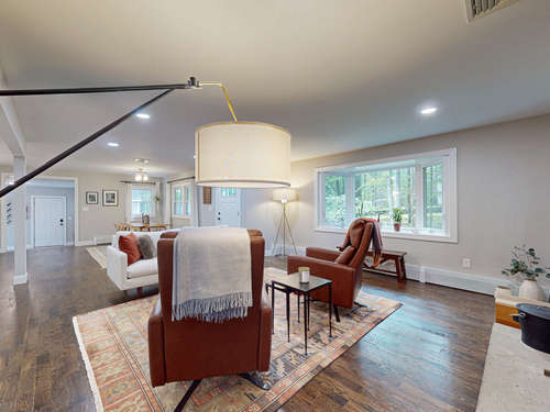 Beautifully updated, this ranch offers an open, airy layout with natural light and clean finishes that create a comfortable, modern feel. Set on over seven private acres, the home also includes an accessory apartment, providing flexibility for a variety of living arrangements. With custom soft-close cabinetry, granite countertops, and a center island, the kitchen transitions to the dining and living areas, providing a natural hub for everyday living and entertaining. The living room is highlighted by a bay window and a beautiful stone fireplace that adds warmth and character. The main level also includes a primary suite with full bath, two additional bedrooms, one with custom closet organizers, a hall bath, and an office. A newly expanded deck extends the living space and overlooks the private yard, which includes a fenced area ideal for play or pets, along with woods to explore. The finished lower level provides additional living space with a second stone fireplace, now outfitted with a new wood stove insert, perfect recreation or media room. The one-bedroom accessory apartment features its own new mini-split system, making it a great option for extended family, in-law set up or income potential. Modern systems include propane heating, central air, and thoughtful updates throughout. A convenient, large attached two-car garage. Located just minutes to Routes 84 and 34, this offering combines privacy, space, and accessibility with all the amenities of the Newtown community.