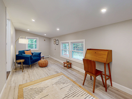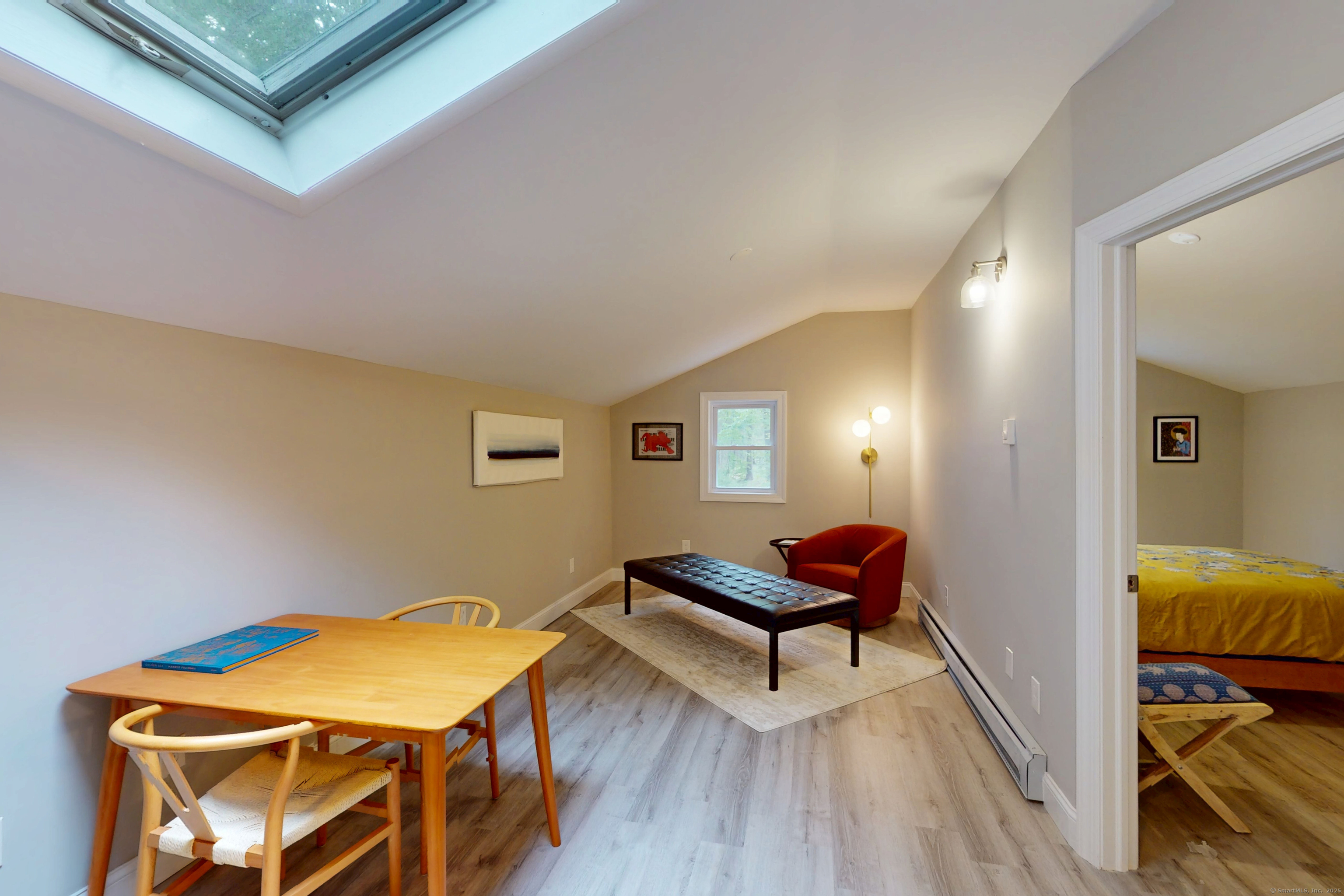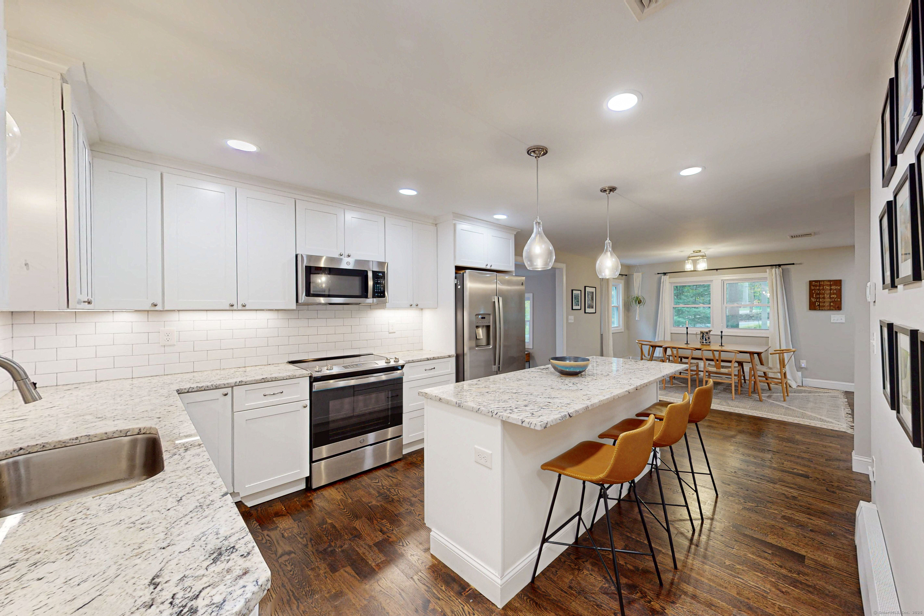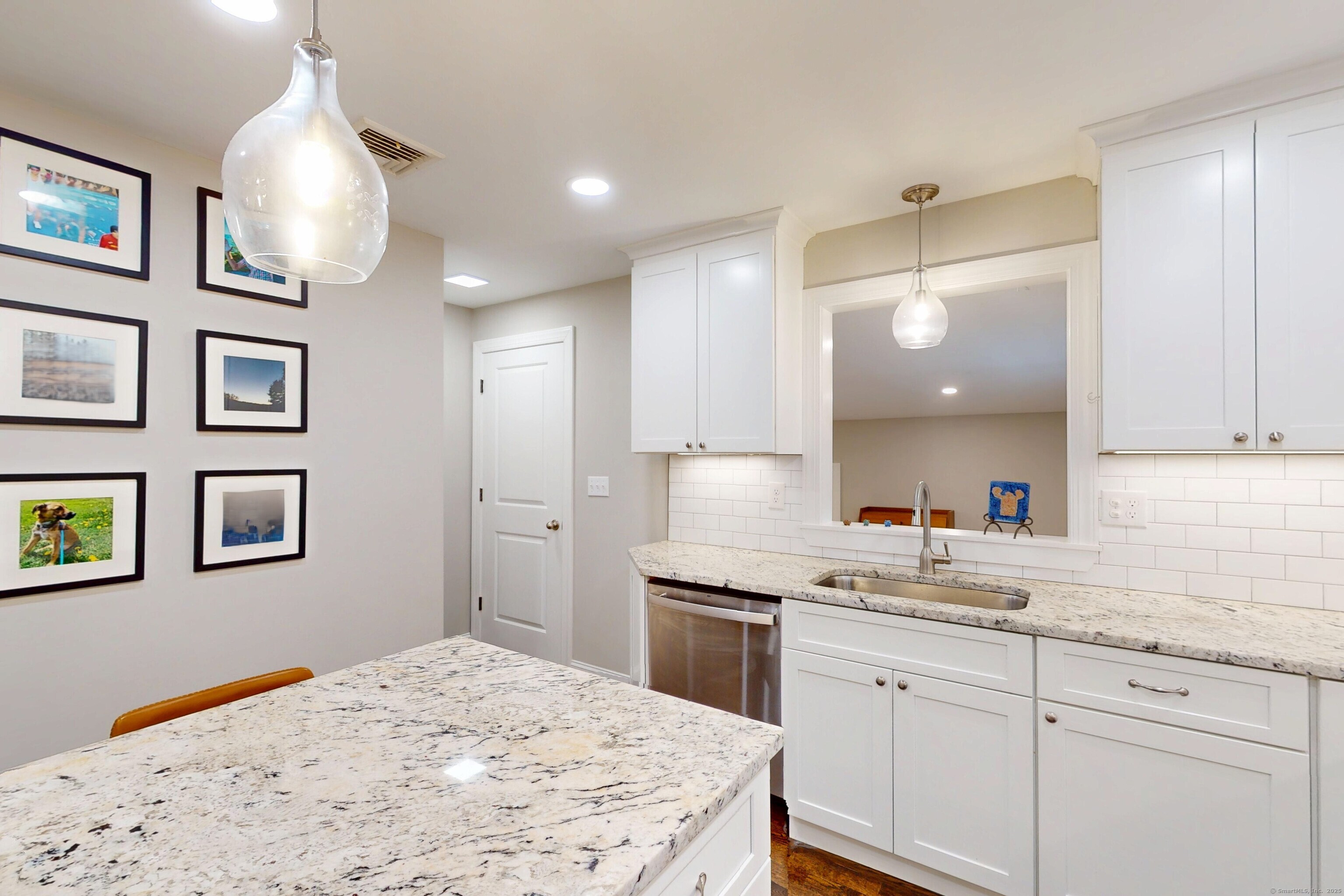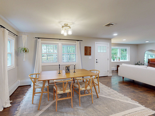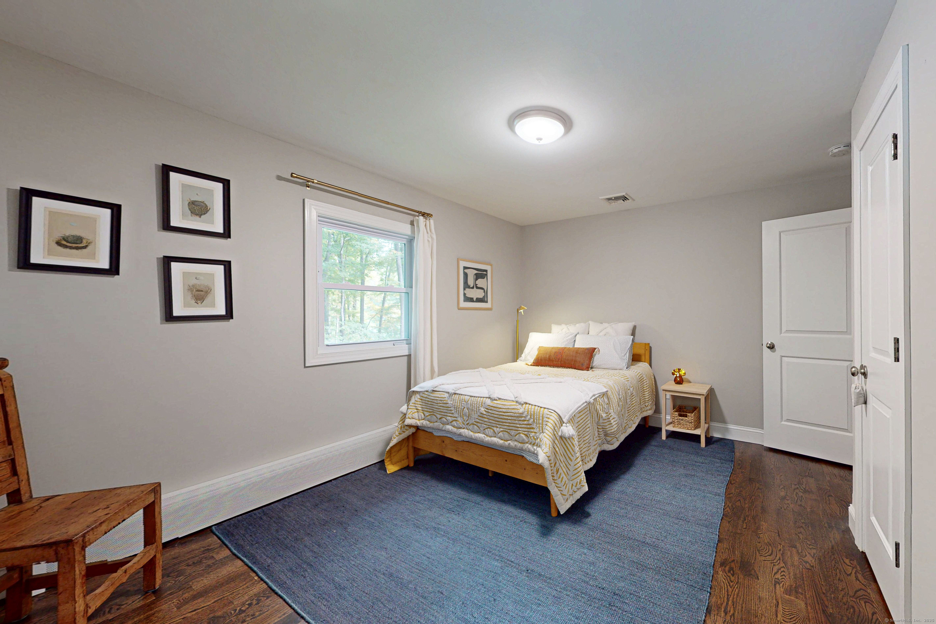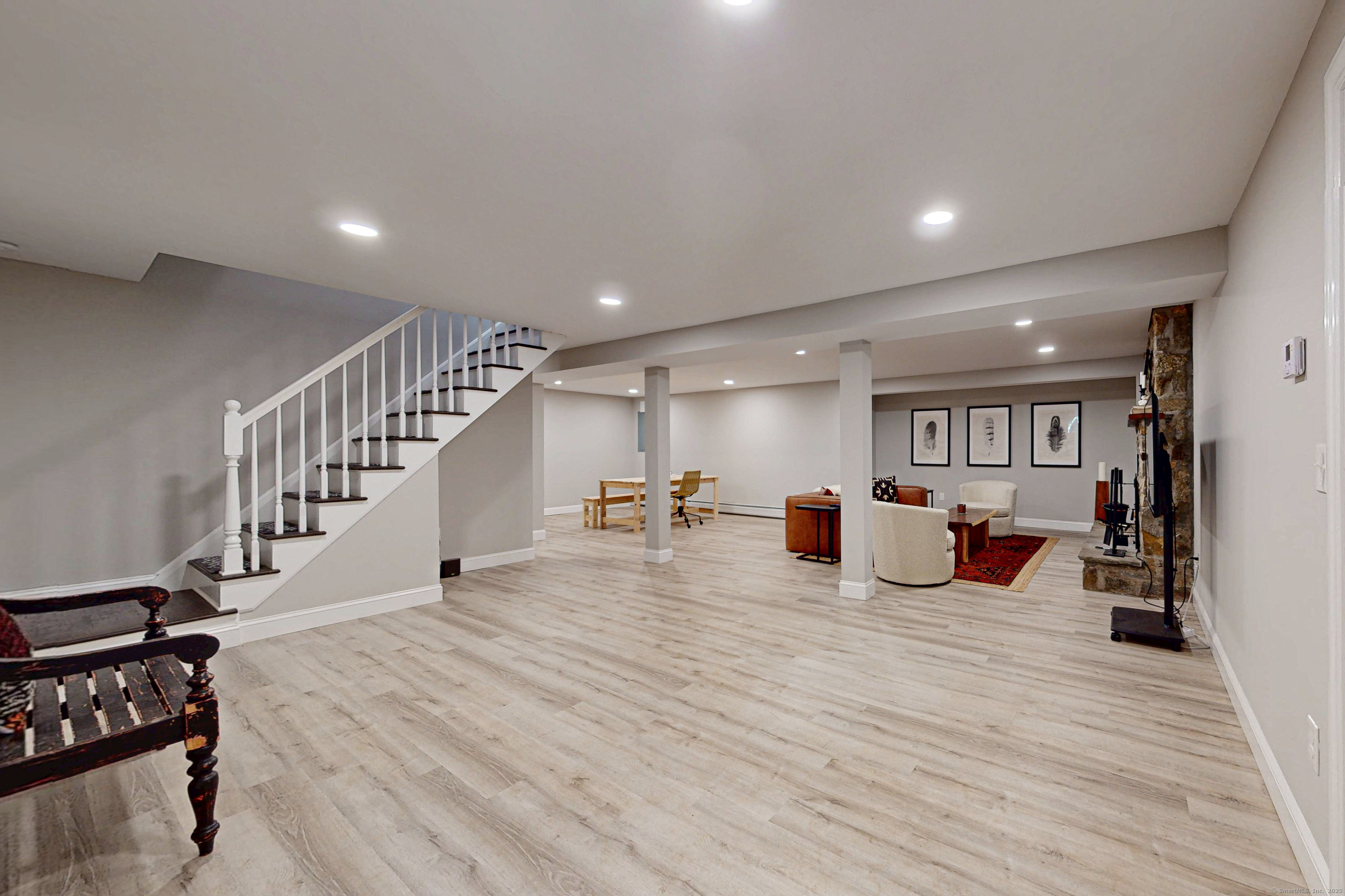 Beautifully updated, this ranch offers an open, airy layout with natural light and clean finishes that create a comfortable, modern feel. Set on over seven private acres, the home also includes an accessory apartment, providing flexibility for a variety of living arrangements. With custom soft-close cabinetry, granite countertops, and a center island, the kitchen transitions to the dining and living areas, providing a natural hub for everyday living and entertaining. The living room is highlighted by a bay window and a beautiful stone fireplace that adds warmth and character. The main level also includes a primary suite with full bath, two additional bedrooms, one with custom closet organizers, a hall bath, and an office. A newly expanded deck extends the living space and overlooks the private yard, which includes a fenced area ideal for play or pets, along with woods to explore. The finished lower level provides additional living space with a second stone fireplace, now outfitted with a new wood stove insert, perfect recreation or media room. The one-bedroom accessory apartment features its own new mini-split system, making it a great option for extended family, in-law set up or income potential. Modern systems include propane heating, central air, and thoughtful updates throughout. A convenient, large attached two-car garage. Located just minutes to Routes 84 and 34, this offering combines privacy, space, and accessibility with all the amenities of the Newtown community.