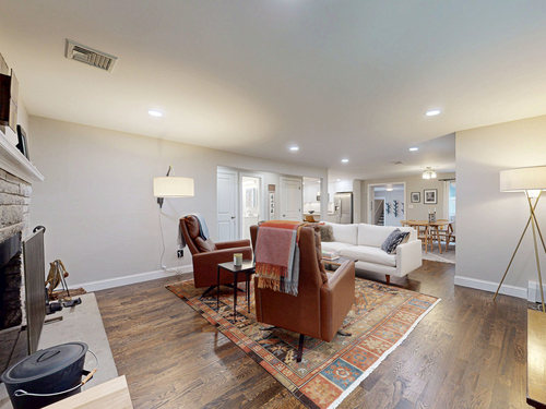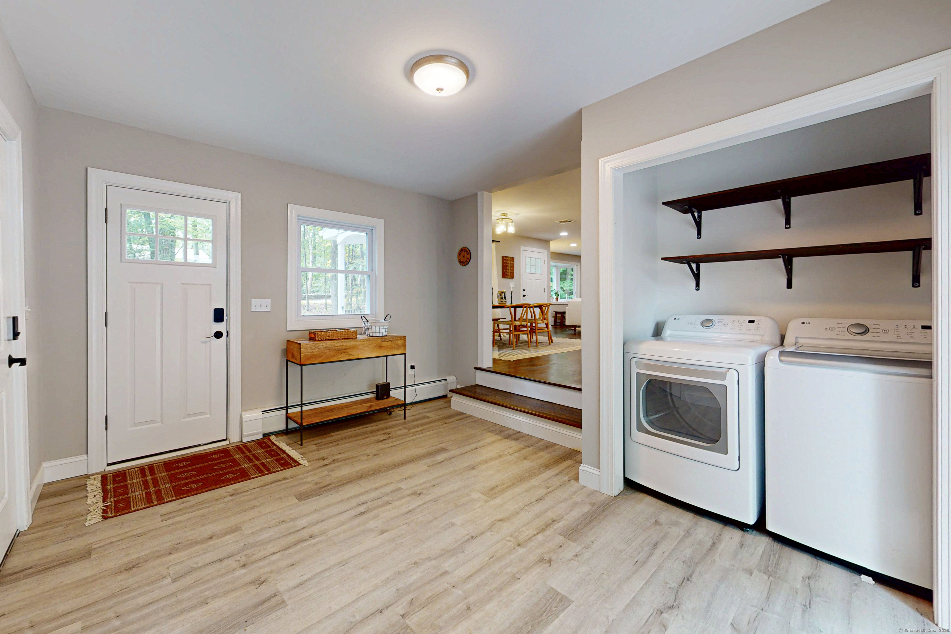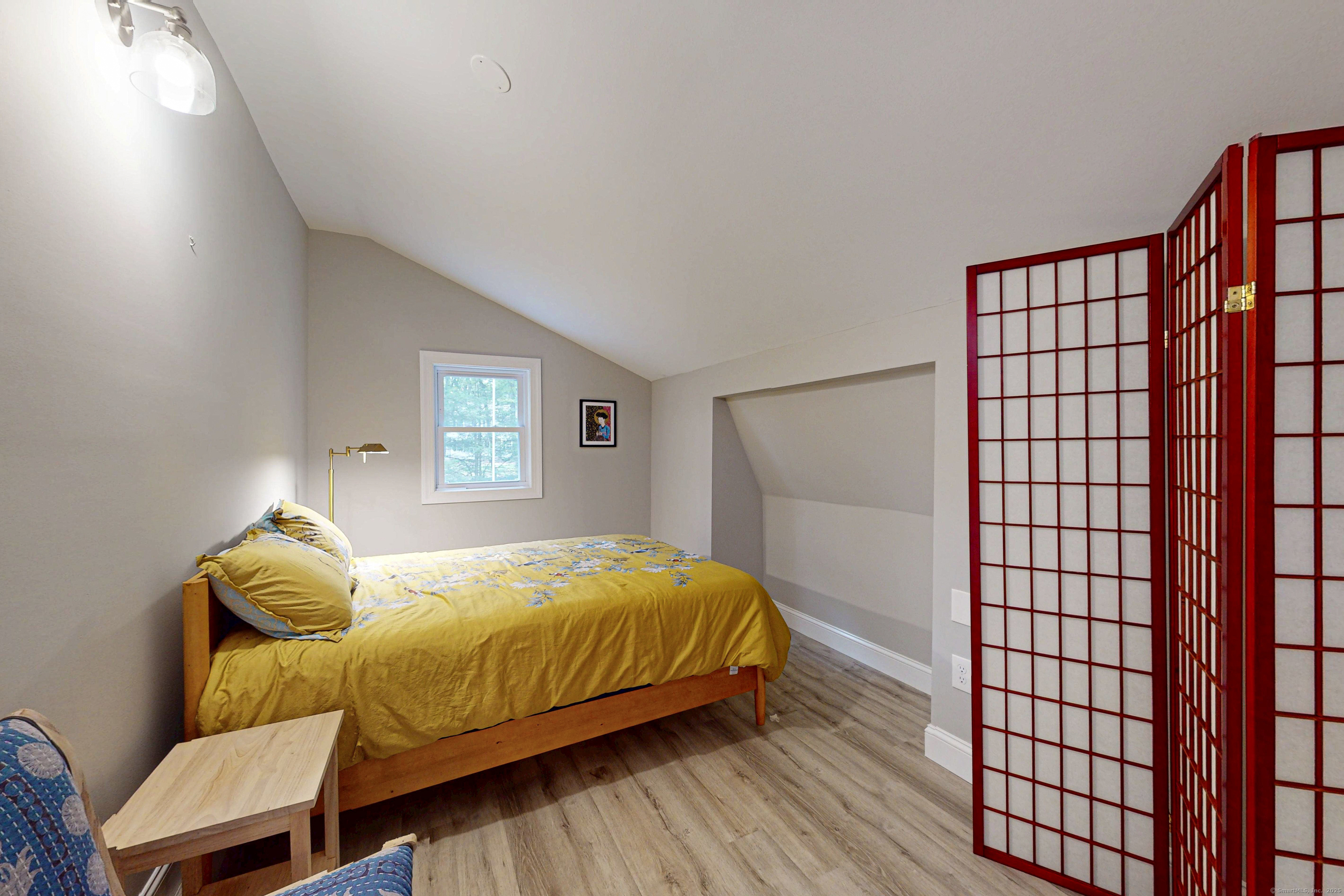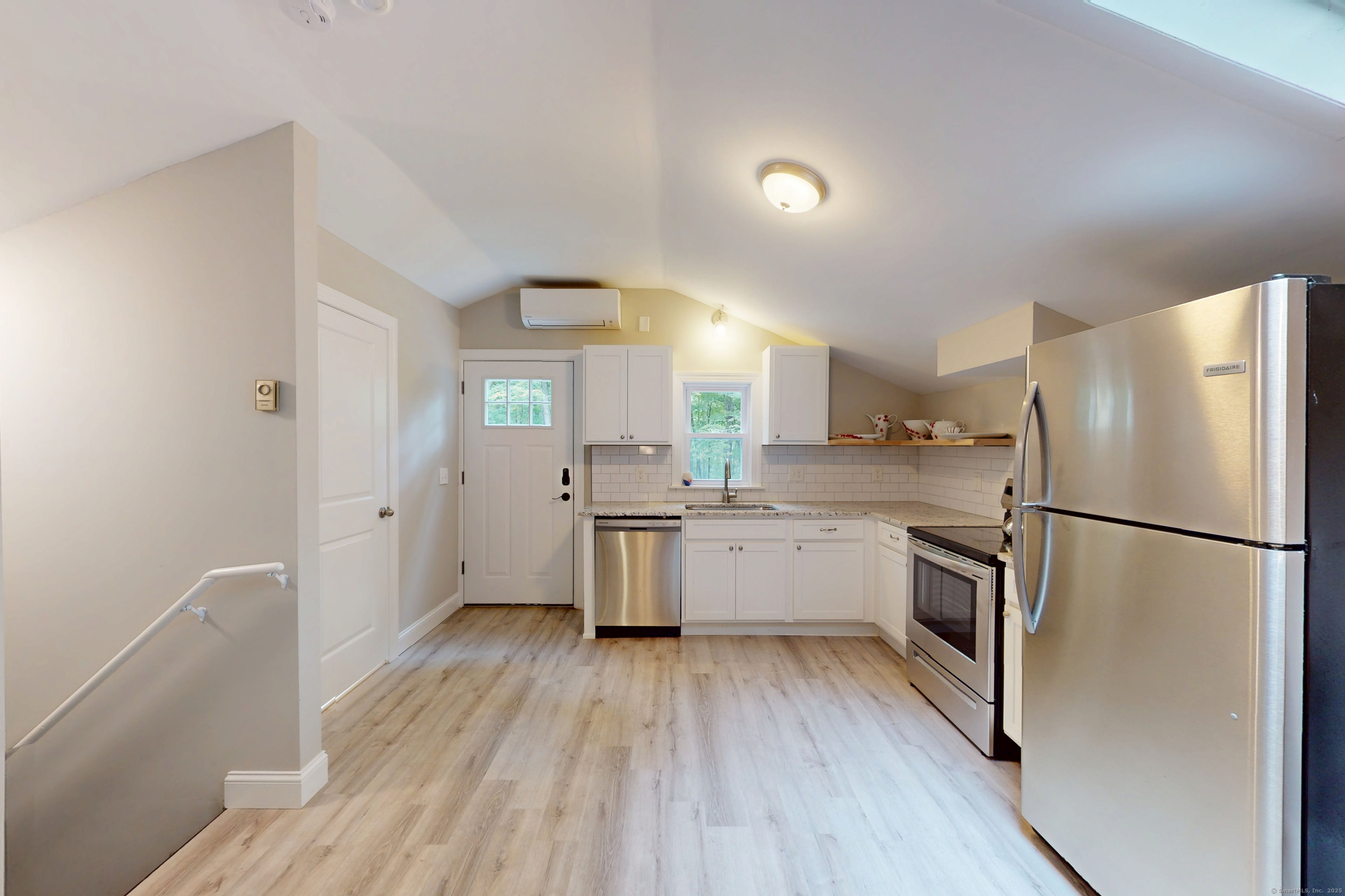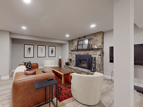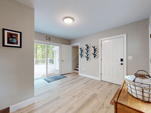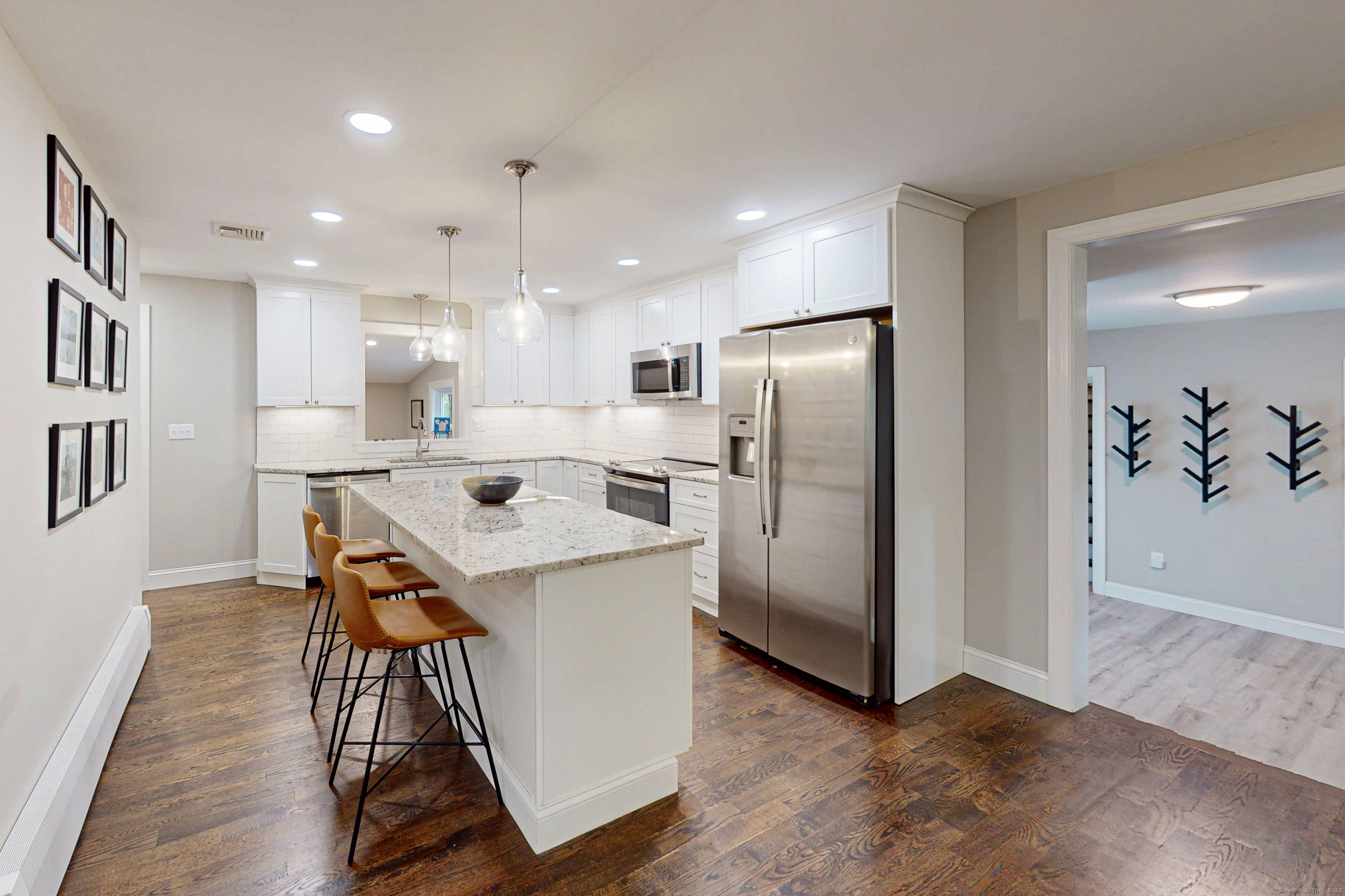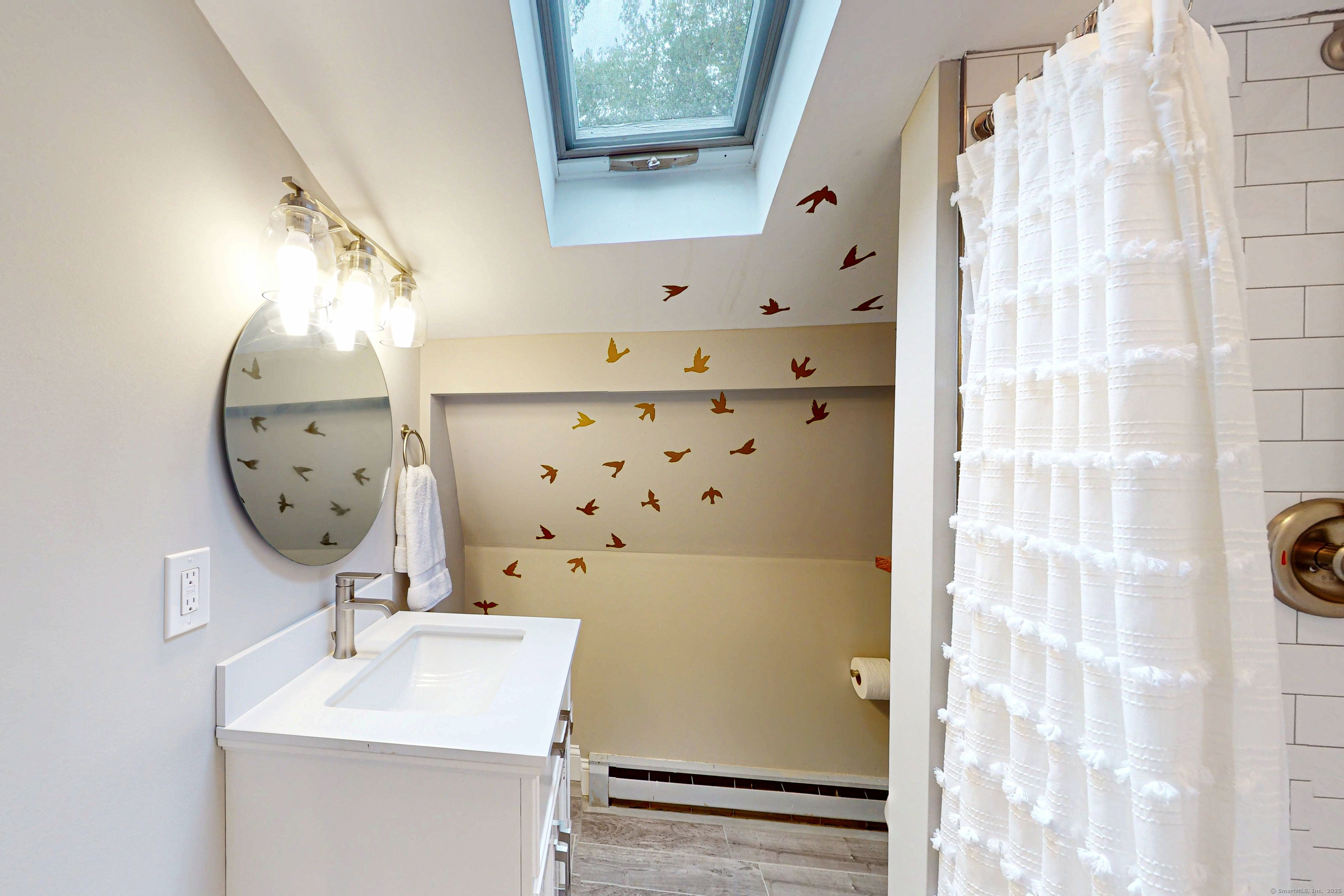 Beautifully updated, this ranch offers an open, airy layout with natural light and clean finishes that create a comfortable, modern feel. Set on over seven private acres, the home also includes an accessory apartment, providing flexibility for a variety of living arrangements. With custom soft-close cabinetry, granite countertops, and a center island, the kitchen transitions to the dining and living areas, providing a natural hub for everyday living and entertaining. The living room is highlighted by a bay window and a beautiful stone fireplace that adds warmth and character. The main level also includes a primary suite with full bath, two additional bedrooms, one with custom closet organizers, a hall bath, and an office. A newly expanded deck extends the living space and overlooks the private yard, which includes a fenced area ideal for play or pets, along with woods to explore. The finished lower level provides additional living space with a second stone fireplace, now outfitted with a new wood stove insert, perfect recreation or media room. The one-bedroom accessory apartment features its own new mini-split system, making it a great option for extended family, in-law set up or income potential. Modern systems include propane heating, central air, and thoughtful updates throughout. A convenient, large attached two-car garage. Located just minutes to Routes 84 and 34, this offering combines privacy, space, and accessibility with all the amenities of the Newtown community.