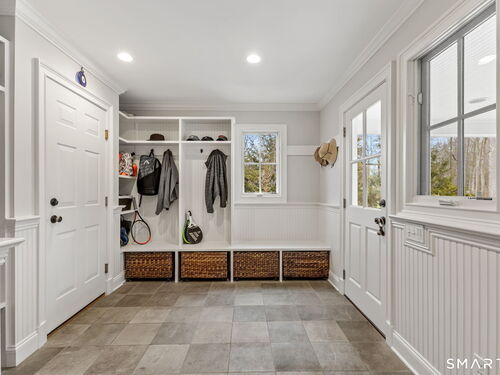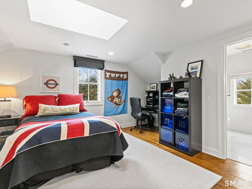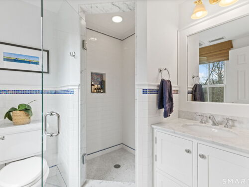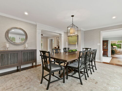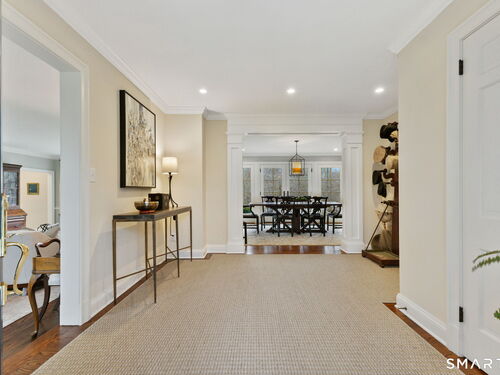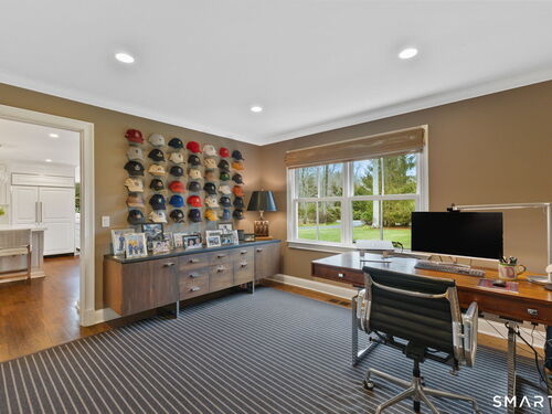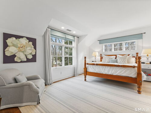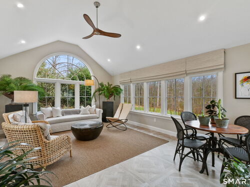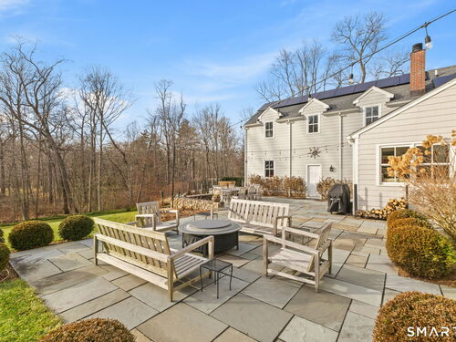 Welcome to 28 Crooked Mile Road! Privately sited at the end of a quiet cul-de-sac in North Darien on a private road in the Ox Ridge school district, this handsome cedar shingle-clad colonial sits on two beautifully manicured acres with mature trees and planting beds. The property offers wonderful western and southern exposure, the house is truly flooded with sunshine throughout the day. The home underwent a major renovation in 2007 and more recently, in 2020, the kitchen and bar area had a fabulous redo!. The classic shaker style kitchen shares an adjacent family room with a fireplace and access to the patio beyond. Formal living and dining rooms and an office anchor the first floor, along with a magazine worthy, newly renovated sunroom (complete with wet bar)! The second floor holds 5 bedrooms. Four are en-suite and positioned along the south side of the house, while a 5th (and potential 6th) bedroom sit on the North side - well suited for guests, older children or an au pair. Also, up the back stairs, is a generous bonus room, perfect for any number of activities! In 2025 the entire roof was replaced, and an array of solar panels were installed on the rear of the home. An electric car charger in the 3-car garage and generator complete this very well-equipped house. Don't miss the chance to make this well maintained and beautifully updated colonial your forever home!