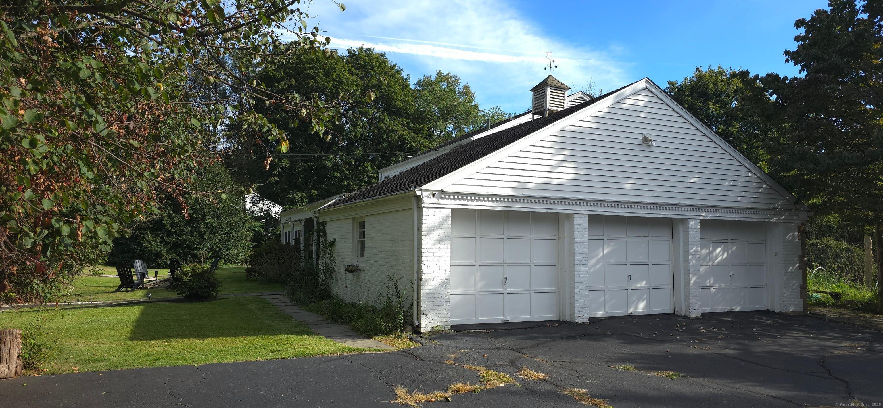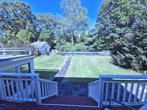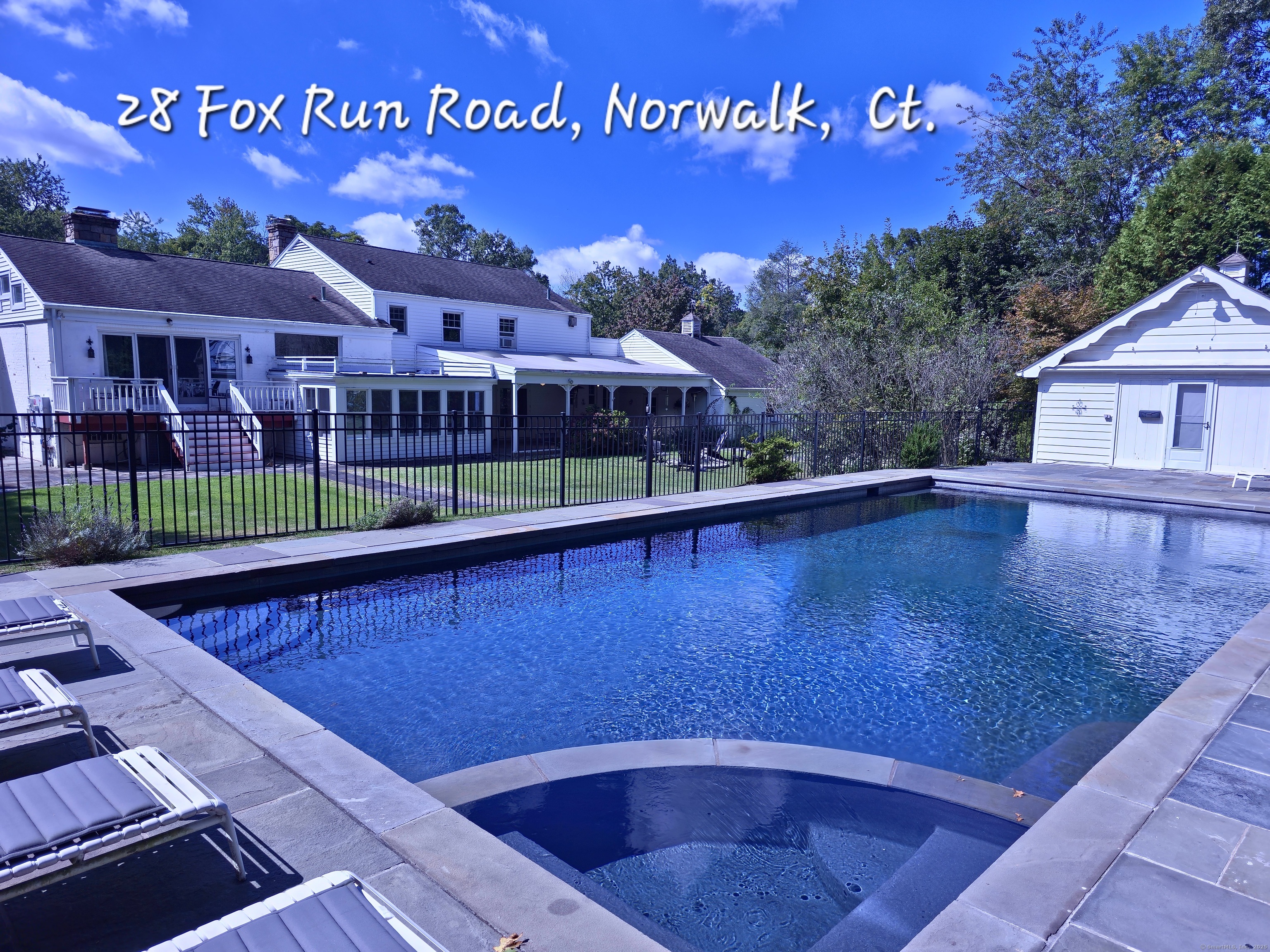 Private oasis on 2.08ac. Estate with matured trees, 3,887sq.ft 11 Rm, 4Br. 3Full Ba. & 2 Half Ba. of living space & 3 car. gar. Minutes to major highways, shops, entertainment and Golf Course. Inground gunite heated pool and guest house 1Br. Kit. 1Ba. Wide stone wall entry leads to the circular driveway and three car garage with parking for over ten cars. Sprinkler system and invisable fence. Hardwood floor through out. Cathedrial ceiling Autrum invites to spacious living rm. with fireplace and direct access to the back yard. Hallway leads to sun filled Play Rm. wrapped with windows, Dining Rm. with mirrored side walls, den with fireplace and to the generous size Chefs kitchen approx. 430sq.ft with marbled floor, pantry, Corian island, two separate sinks, sub zero frig & double wall ovens. Off the kitchen direct entry to up stairs-possible Au pair quarters, entry to front of the house, huge slate covered patio with sky lights, garage & half bath. Possible land subdivision buyer must do their own research in that regard. Vaulted ceiling Master Bedroom Suite, Granite Master Bath with make-up area, bidet and jacuzzi. Two other Bd. Rm on their own wing of the house sharing full bath. Pathway behind the pool leads to Coachmens Ct. cul-de-sac. City side walk and bike lane at the end of the driveway leads to Conn. Ave. Solar pannel contract. 400amp service, genarator ready. If you seek privacy this is it. As is condition. Located between Darien and New Cannan.