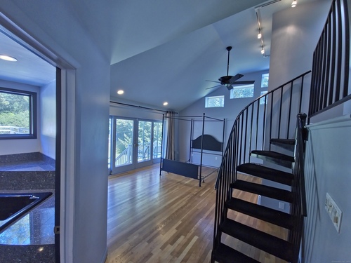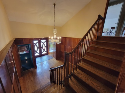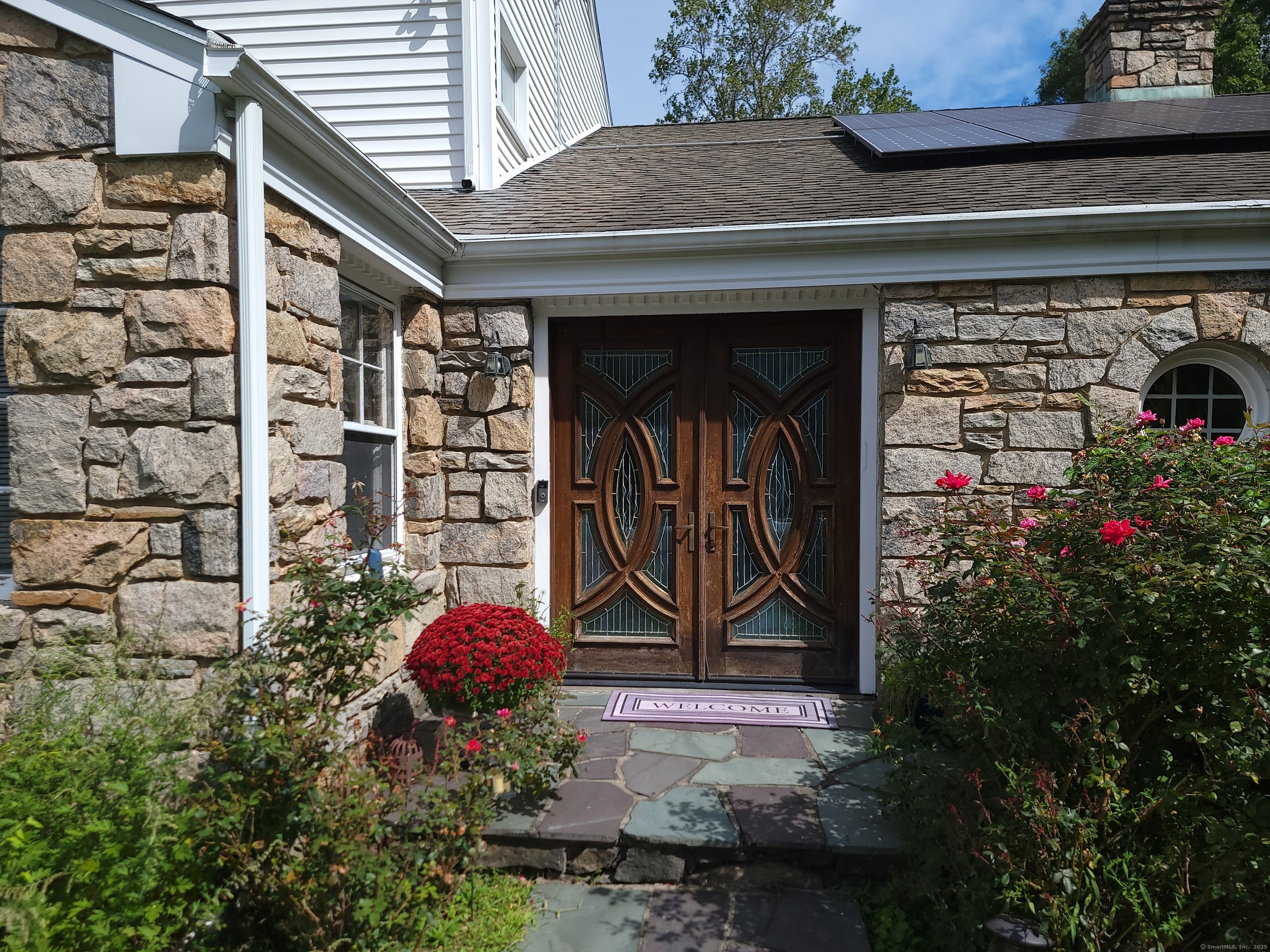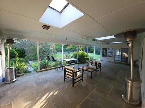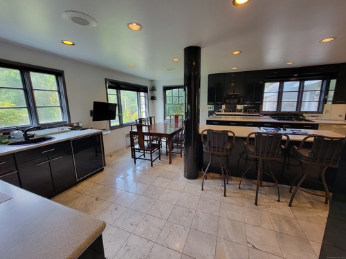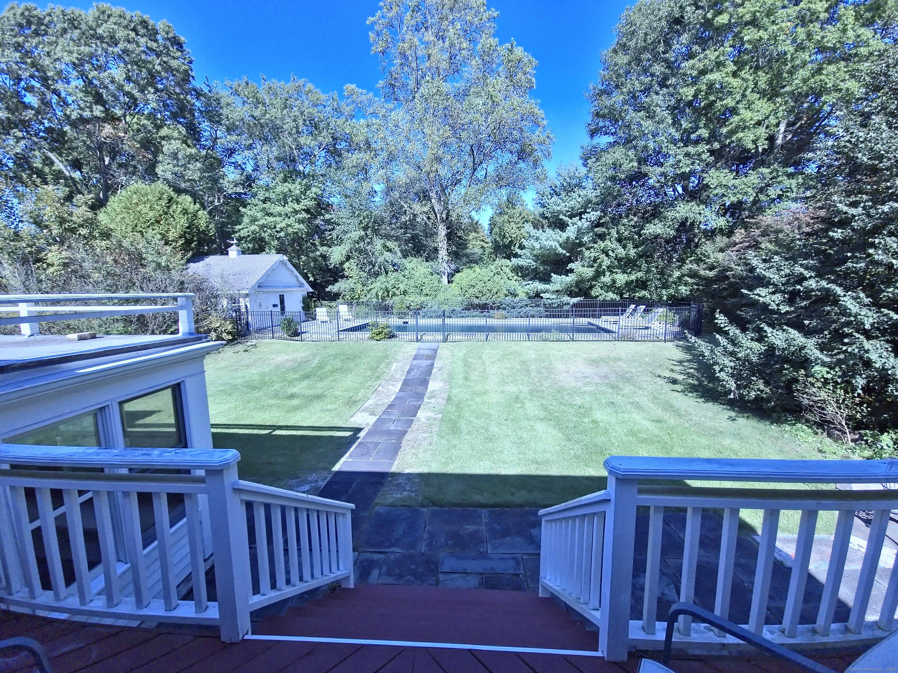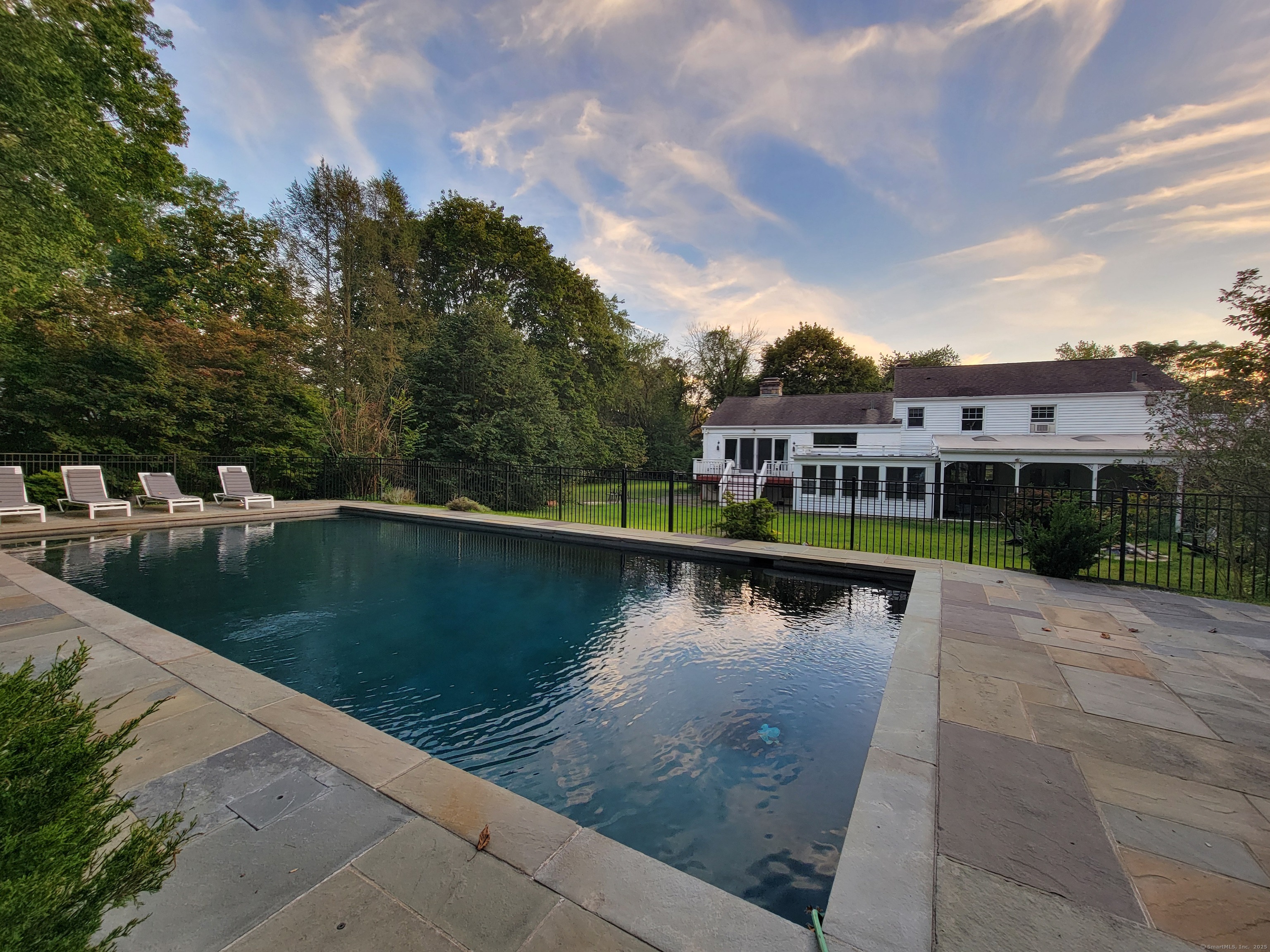 Private oasis on 2.08ac. Mini Estate with matured trees, 3,887sq.ft 11 Rm, 4Br. 3Full Ba. & 2 Half Ba. of living space & 3 car. gar. Minutes to major highways, shops, entertainment and Golf Course. Inground gunite heated pool and guest house 1Br. Kit. 1Ba. Wide stone wall entry leads to the circular driveway and three car garage with parking for over ten cars. Sprinkler system and invisable fence. Hardwood floor through out. Cathedrial ceiling Autrum invites to spacious living rm. with fireplace and direct access to the back yard. Hallway leads to sun filled Play Rm. wrapped with windows, Dining Rm. with mirrored side walls, den with fireplace and to the generous size Chefs kitchen approx. 430sq.ft with marbled floor, pantry, Corian island, two separate sinks, sub zero frig & double wall ovens. Off the kitchen direct entry to up stairs-possible Au pair quarters, entry to front of the house, huge slate covered patio with sky lights, garage & half bath. Possible land subdivision buyer must do their own research in that regard. Vaulted ceiling Master Bedroom Suite, Granite Master Bath with make-up area, bidet and jacuzzi. Two other Bd. Rm on their own wing of the house sharing full bath. Pathway behind the pool leads to Coachmens Ct. cul-de-sac. City side walk and bike lane at the end of the driveway leads to Conn. Ave. Solar pannel contract. 400amp service, genarator ready. If you seek privacy this is it. As is condition. Located between Darien and New Cannan.